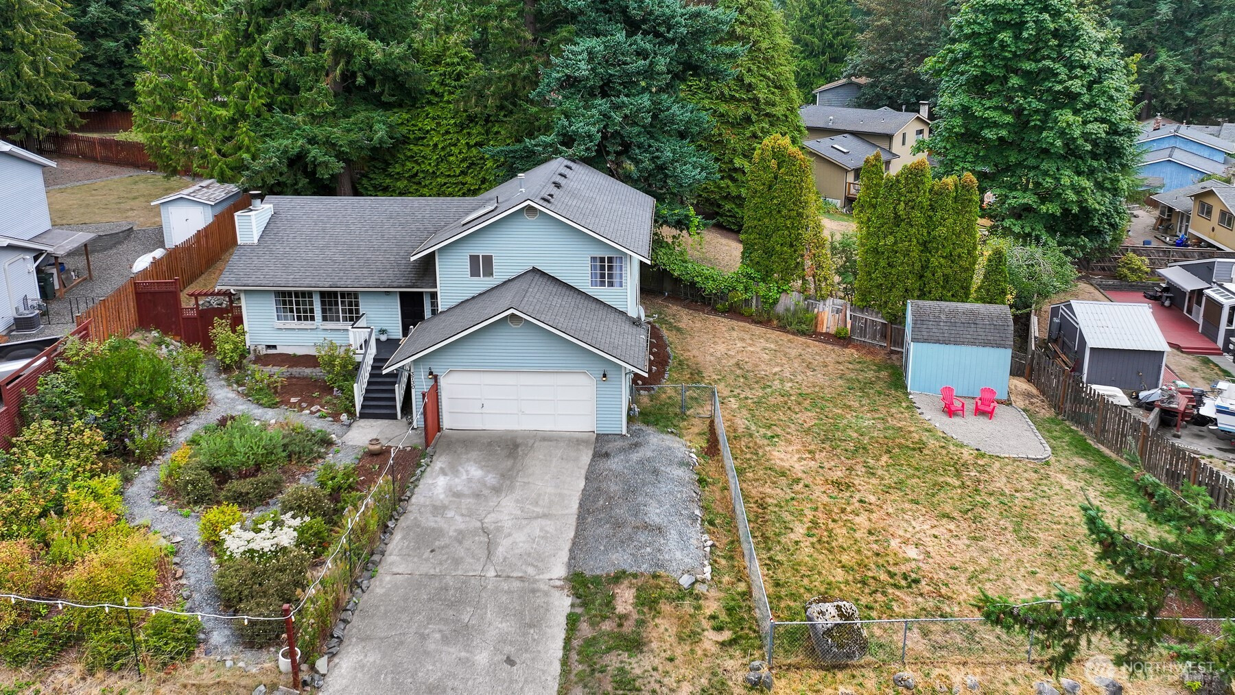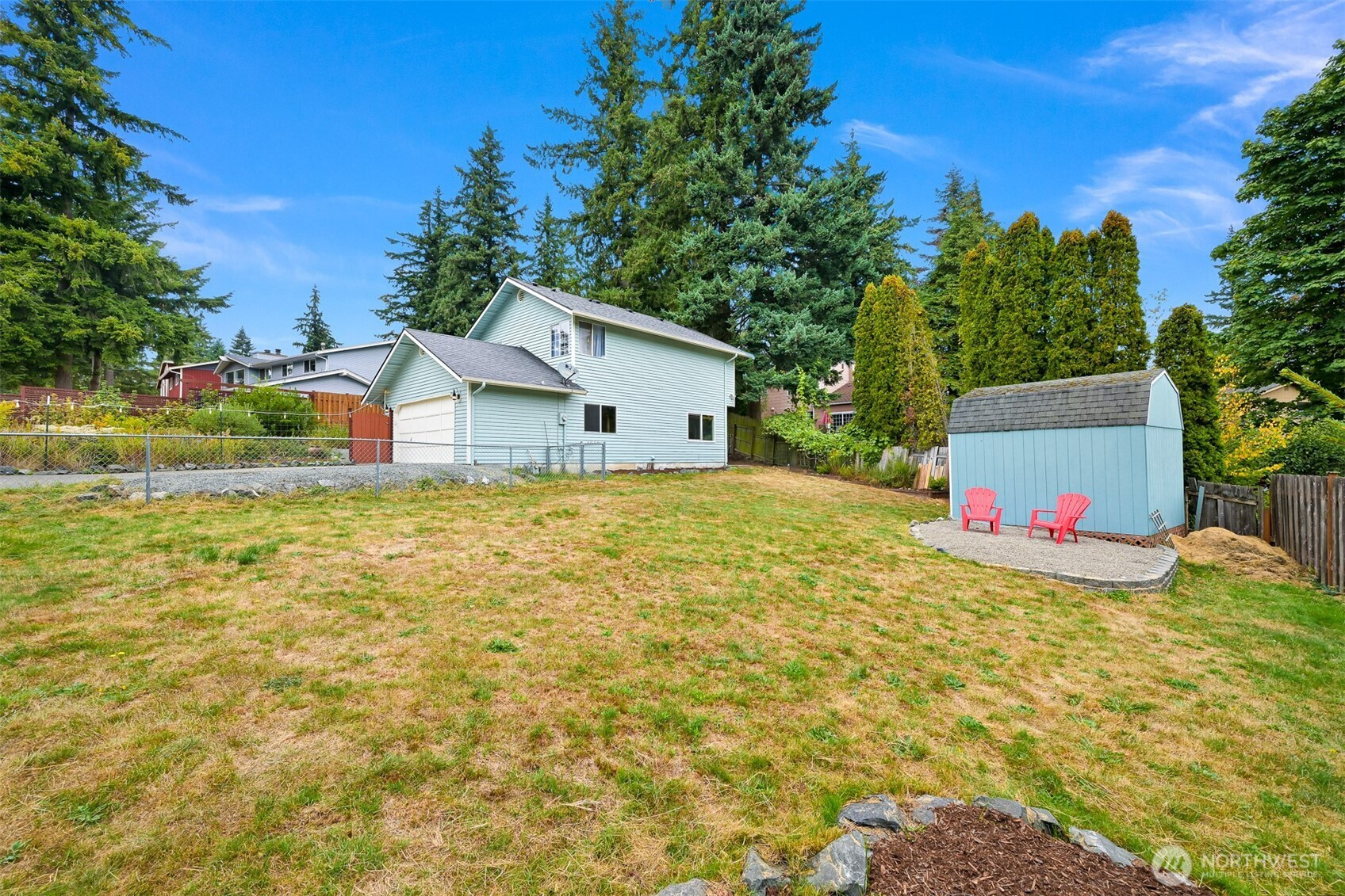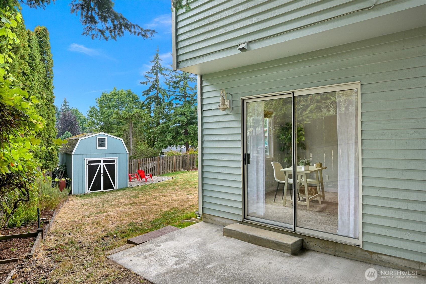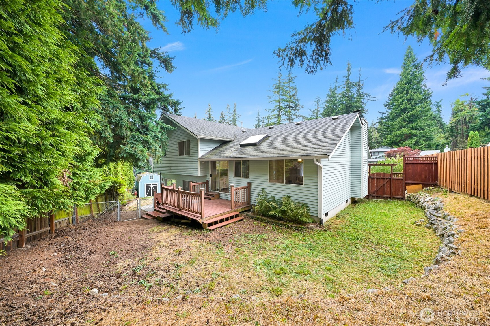 Welcome to this beautifully laid out home in the sought after Tweed Twenty neighborhood. The updated open kitchen features quartz countertops and vaulted ceilings, flowing into a bright dining and living area filled with natural light. Upstairs, the spacious primary suite includes a full bath, with two additional generous bedrooms nearby. The lower level offers a versatile family room or home office with slider access to the fully fenced yard. Recent updates include a brand new hot water tank for added peace of mind. Enjoy a sunny patio, deck off the kitchen, large shed, and gorgeous low maintenance native garden. With plenty of parking plus trails and parks close by, this home has it all.
