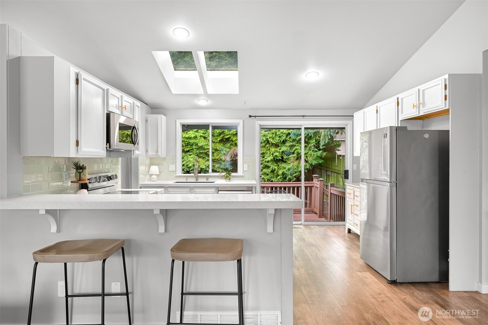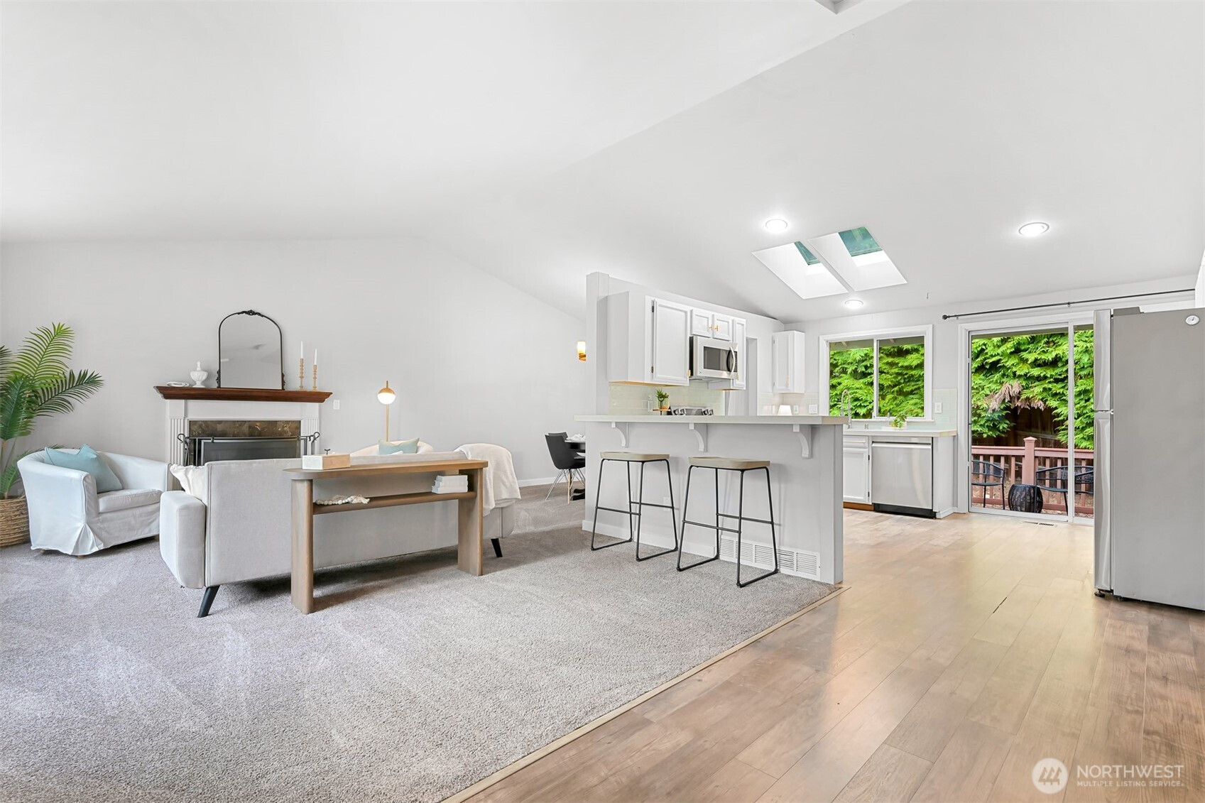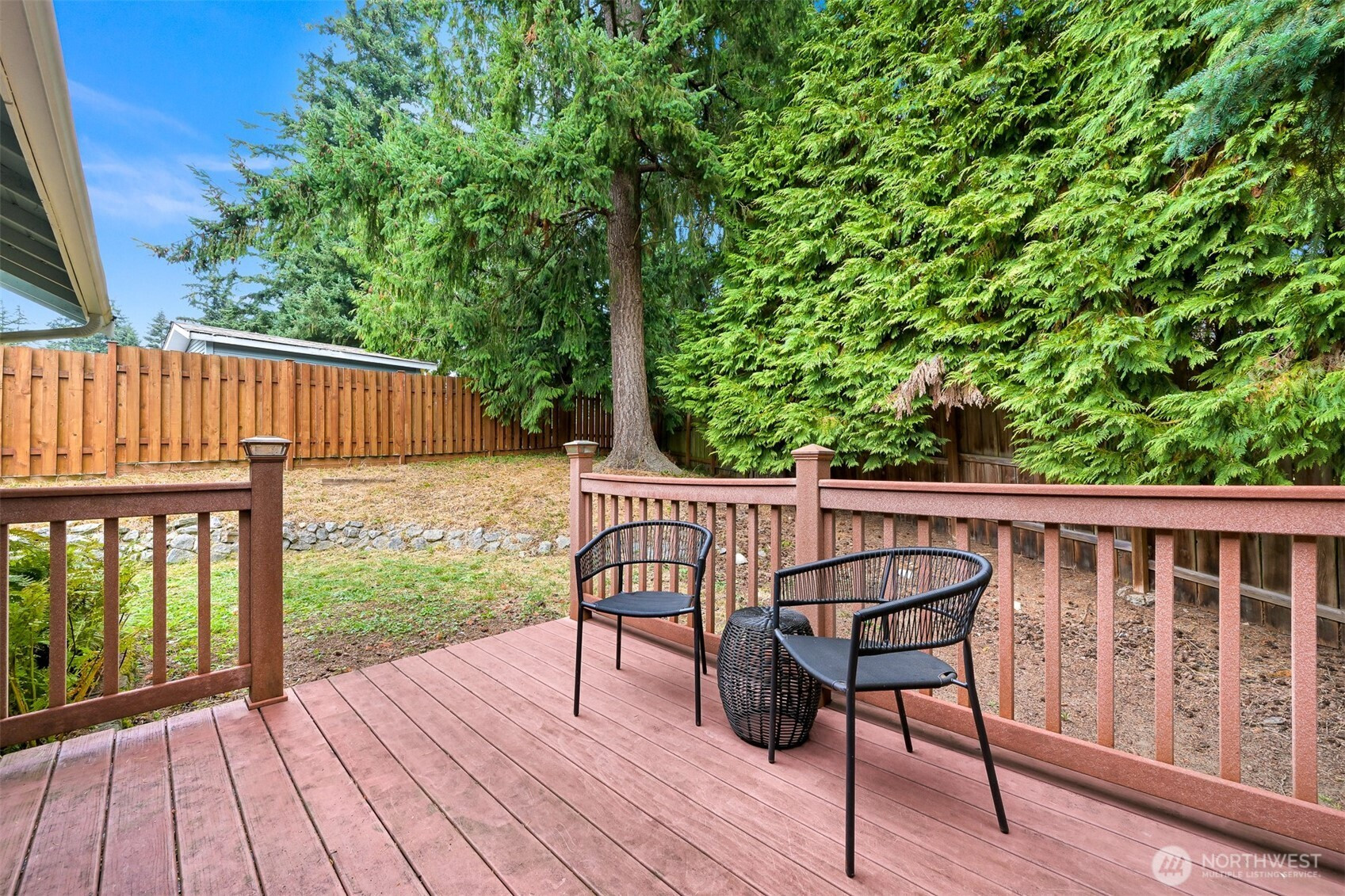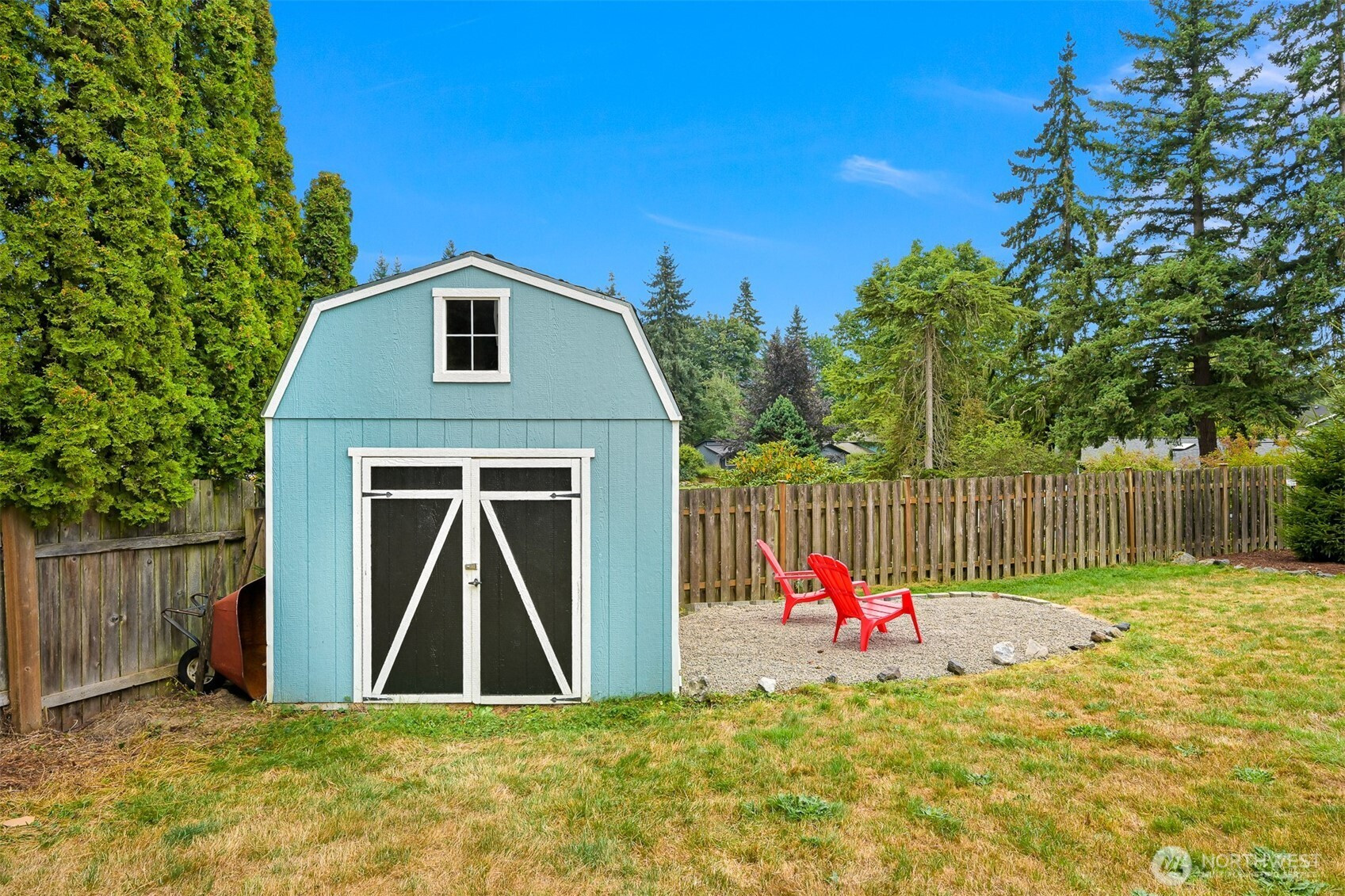 Welcome to this beautifully laid out home in the sought after Tweed Twenty neighborhood. The updated open kitchen features quartz countertops and vaulted ceilings, flowing into a bright dining and living area filled with natural light. Upstairs, the spacious primary suite includes a full bath, with two additional generous bedrooms nearby. The lower level offers a versatile family room or home office with slider access to the fully fenced yard. Recent updates include a brand new hot water tank for added peace of mind. Enjoy a sunny patio, deck off the kitchen, large shed, and gorgeous low maintenance native garden. With plenty of parking plus trails and parks close by, this home has it all.