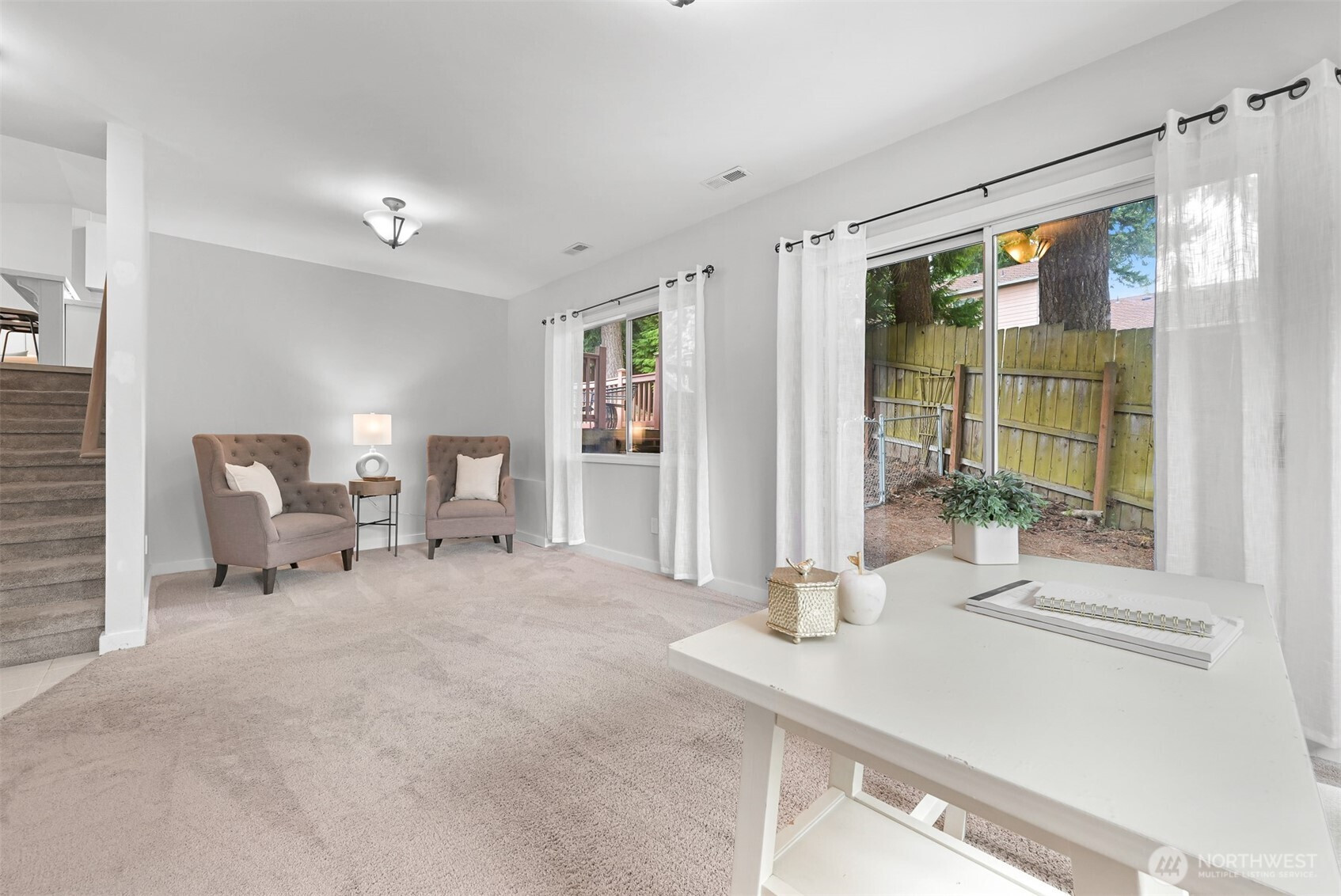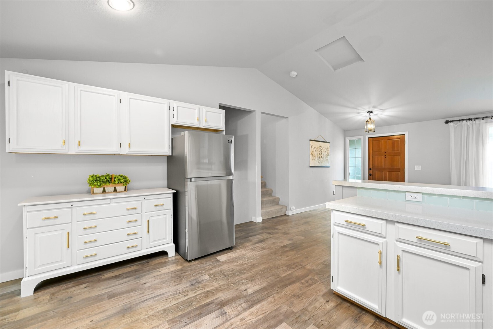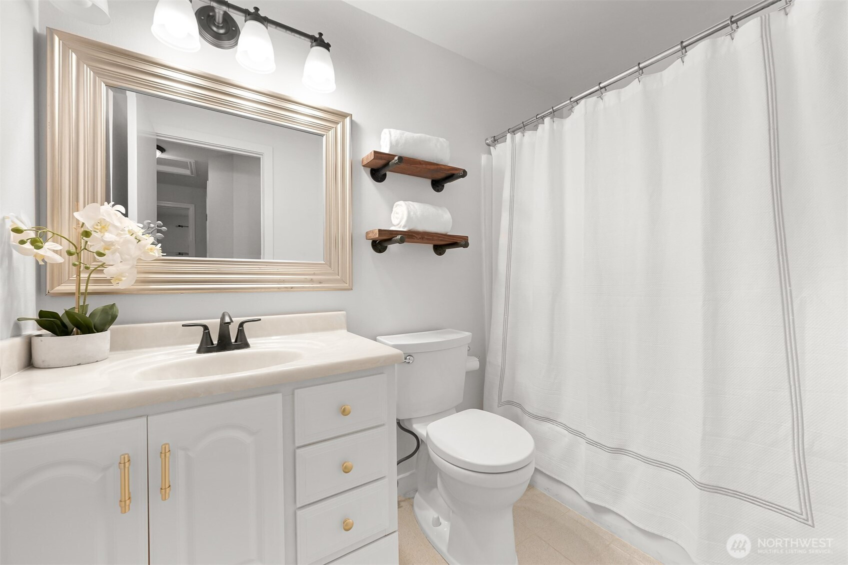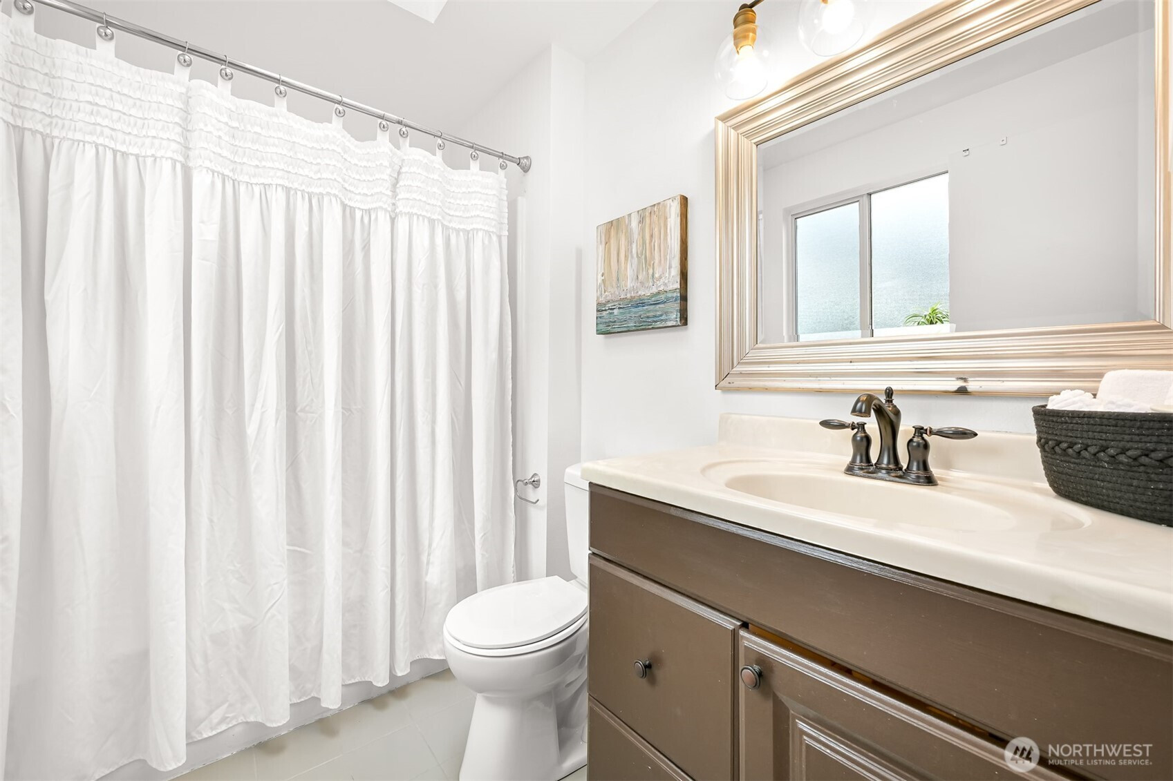 Welcome to this beautifully laid out home in the sought after Tweed Twenty neighborhood. The updated open kitchen features quartz countertops and vaulted ceilings, flowing into a bright dining and living area filled with natural light. Upstairs, the spacious primary suite includes a full bath, with two additional generous bedrooms nearby. The lower level offers a versatile family room or home office with slider access to the fully fenced yard. Recent updates include a brand new hot water tank for added peace of mind. Enjoy a sunny patio, deck off the kitchen, large shed, and gorgeous low maintenance native garden. With plenty of parking plus trails and parks close by, this home has it all.