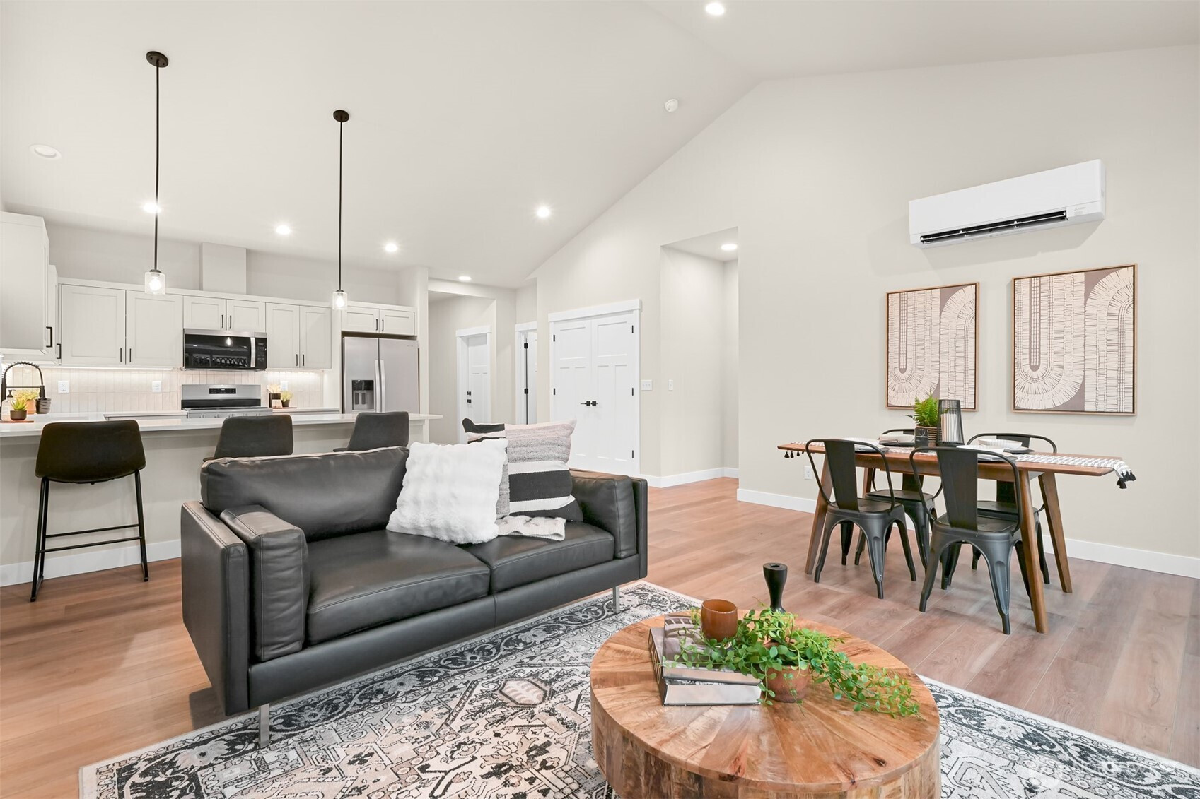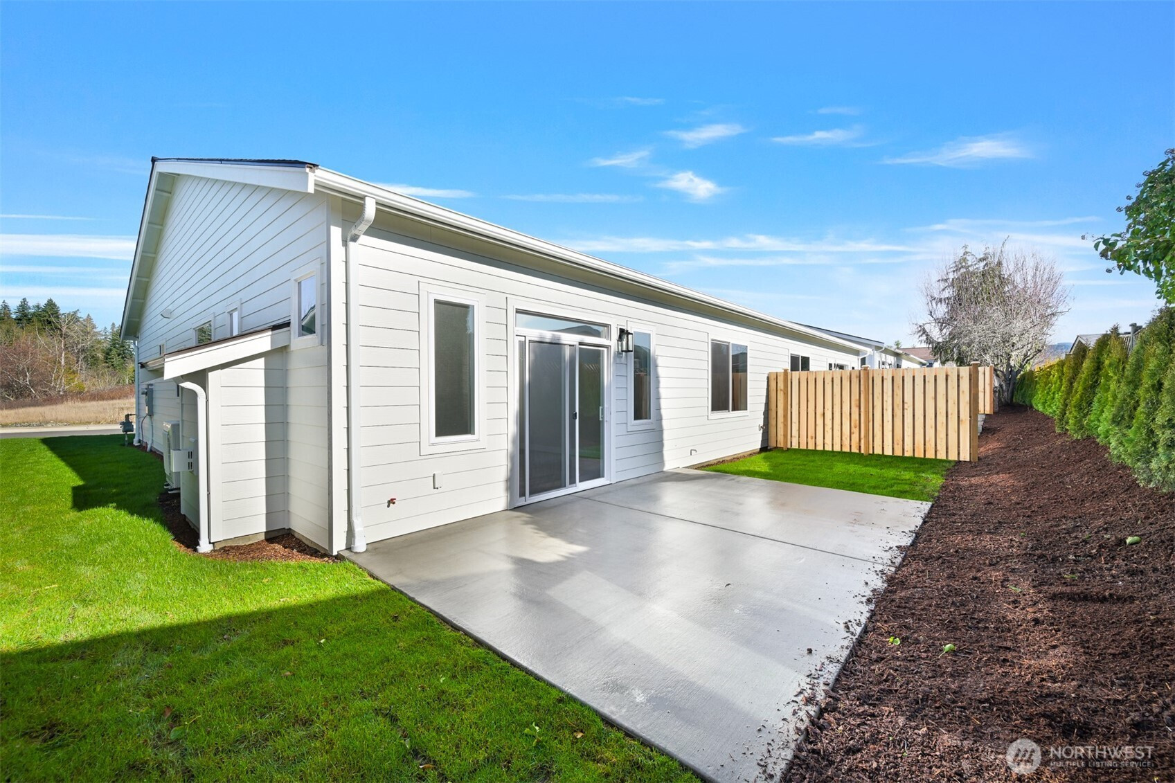 Single-level spacious luxury with absolutely ZERO steps. Brand New 55+ living situated at the end of a dead-end street in a gated community. Enclave of six new residences. Intelligent design captures the essence of true Northwest architecture with a modern flair. Generously sized windows & vaulted great room ceilings create a light & airy atmosphere. Magnificent chef's kitchen fully loaded with quartz counter tops, stainless appliances, soft close drawers & under cabinet lighting. Spacious vaulted primary bedroom & a spa-like ensuite. Enjoy your own super private backyard with a patio, plus the convenience of an attached garage—all in a serene, quiet location. Efficient heating & A/C. Oversized 1 car garage with a lot of storage capacity & pre-wired for EV charger.