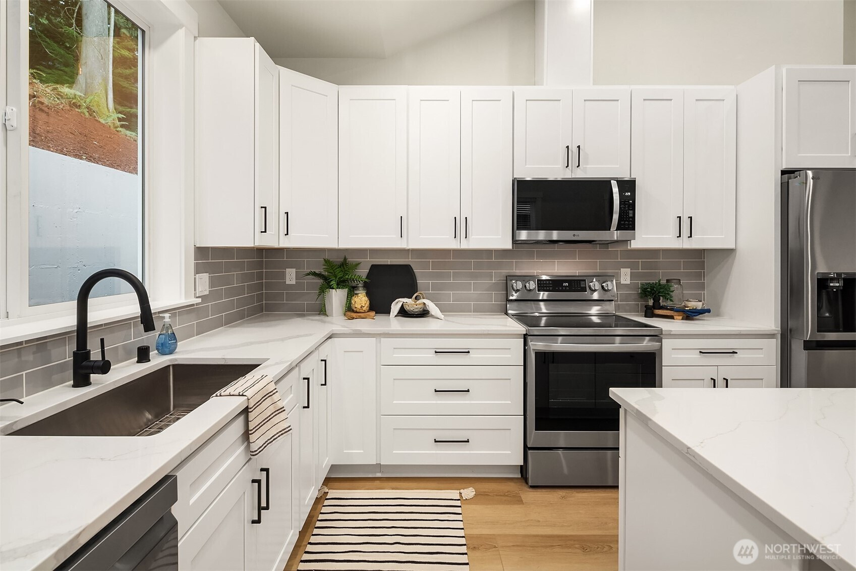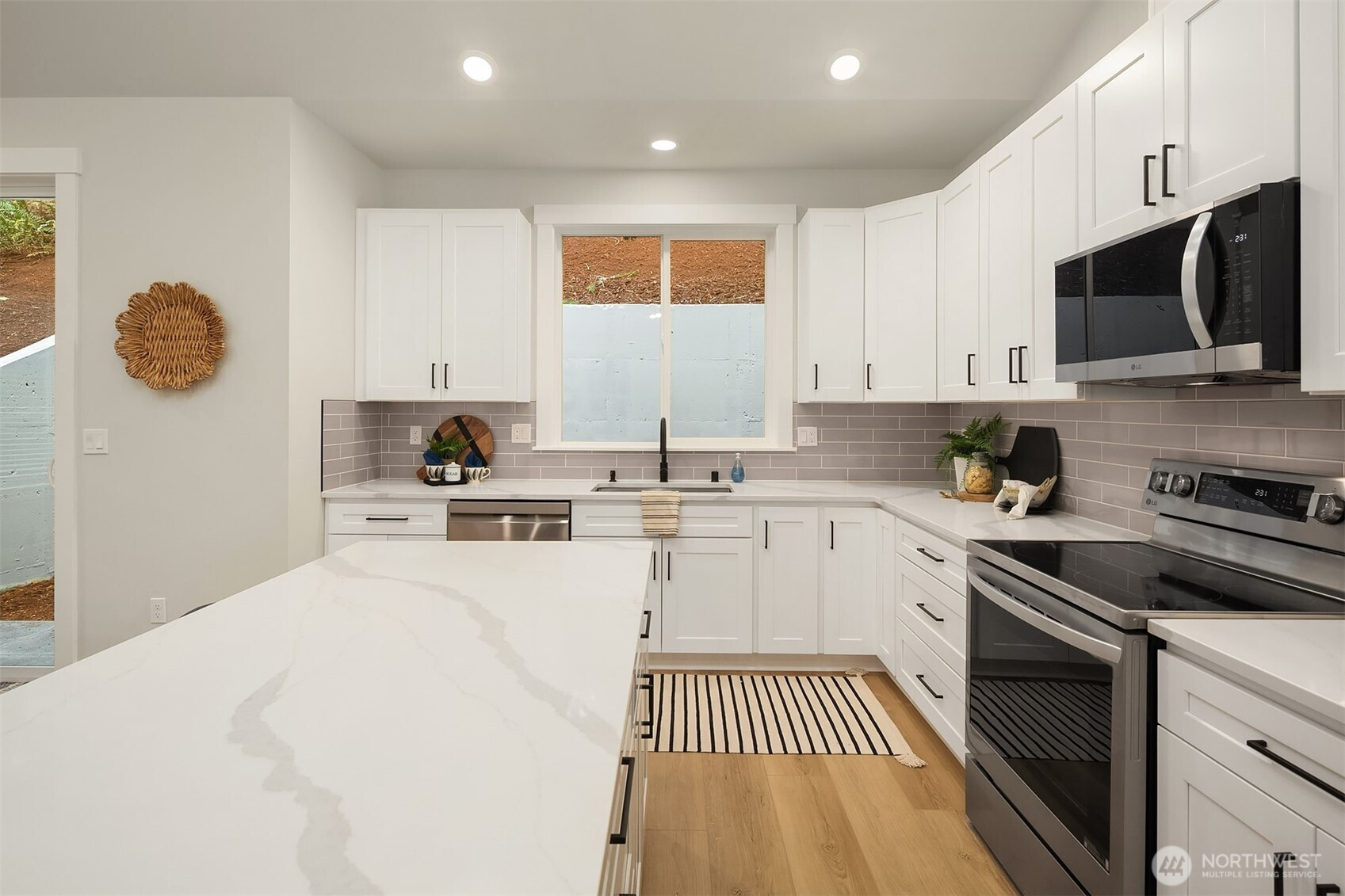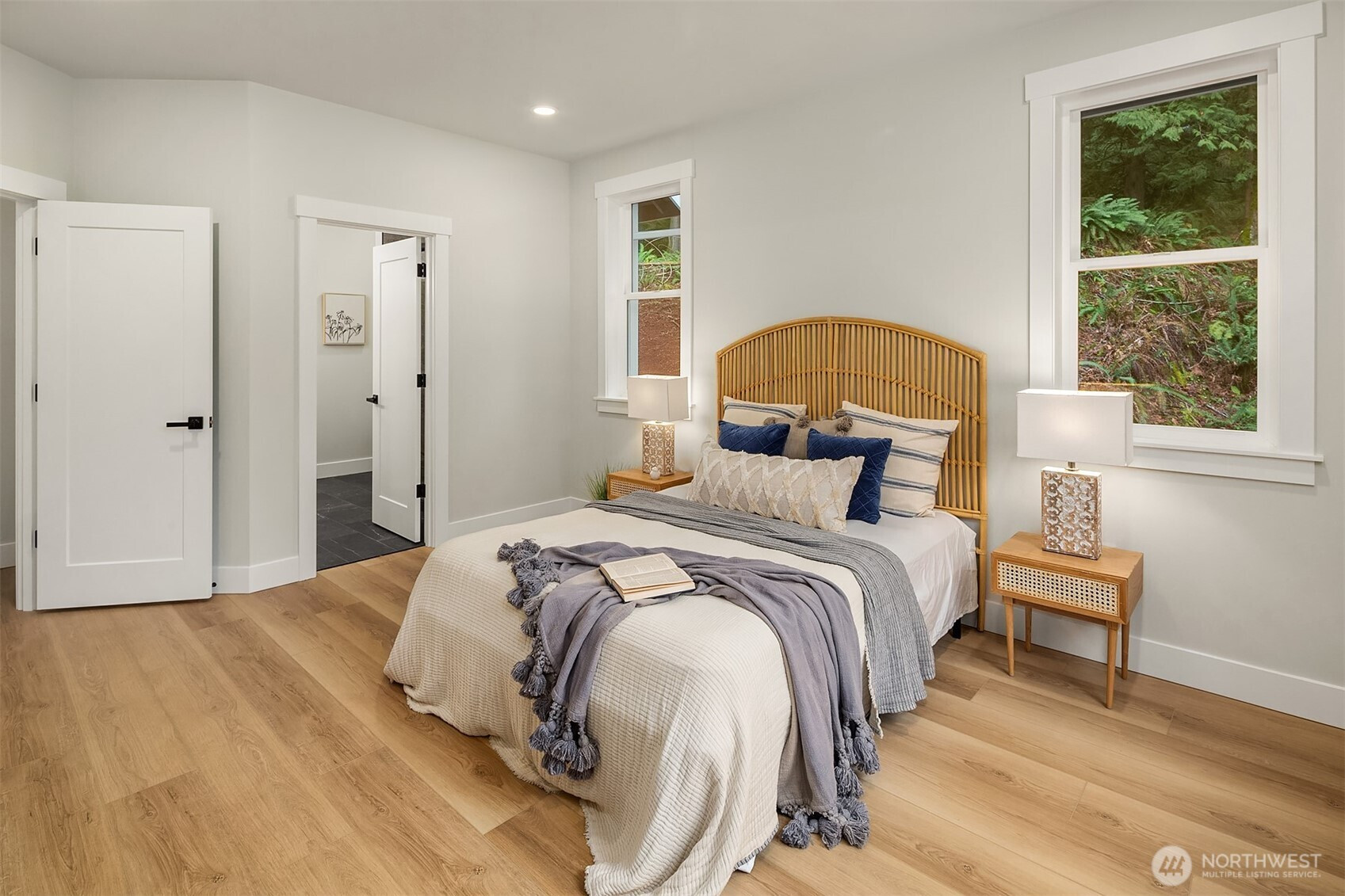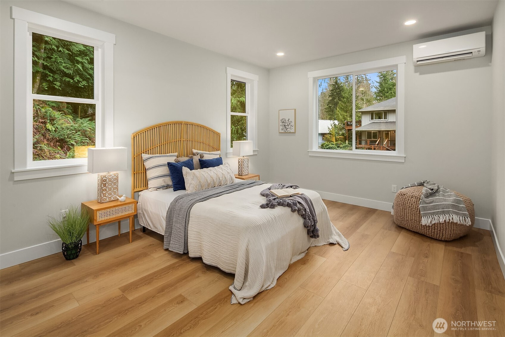 Incredible value on this gorgeous new construction home in sought-after Sudden Valley Community. Open concept with soaring ceilings and your dream white chef’s kitchen featuring Quartz counters, stainless appliances, and subway tile backsplash. Additional features include hardwoods throughout, modern fireplace, great natural light and A/C for those warm summer days. Primary bedroom on main level with stunning ensuite, large walk-in shower, walk-in closet and double vanity. Thoughtfully designed with laundry on the main level, and mud room area off garage enterance. Low maintenance lot, close to lake and golf!