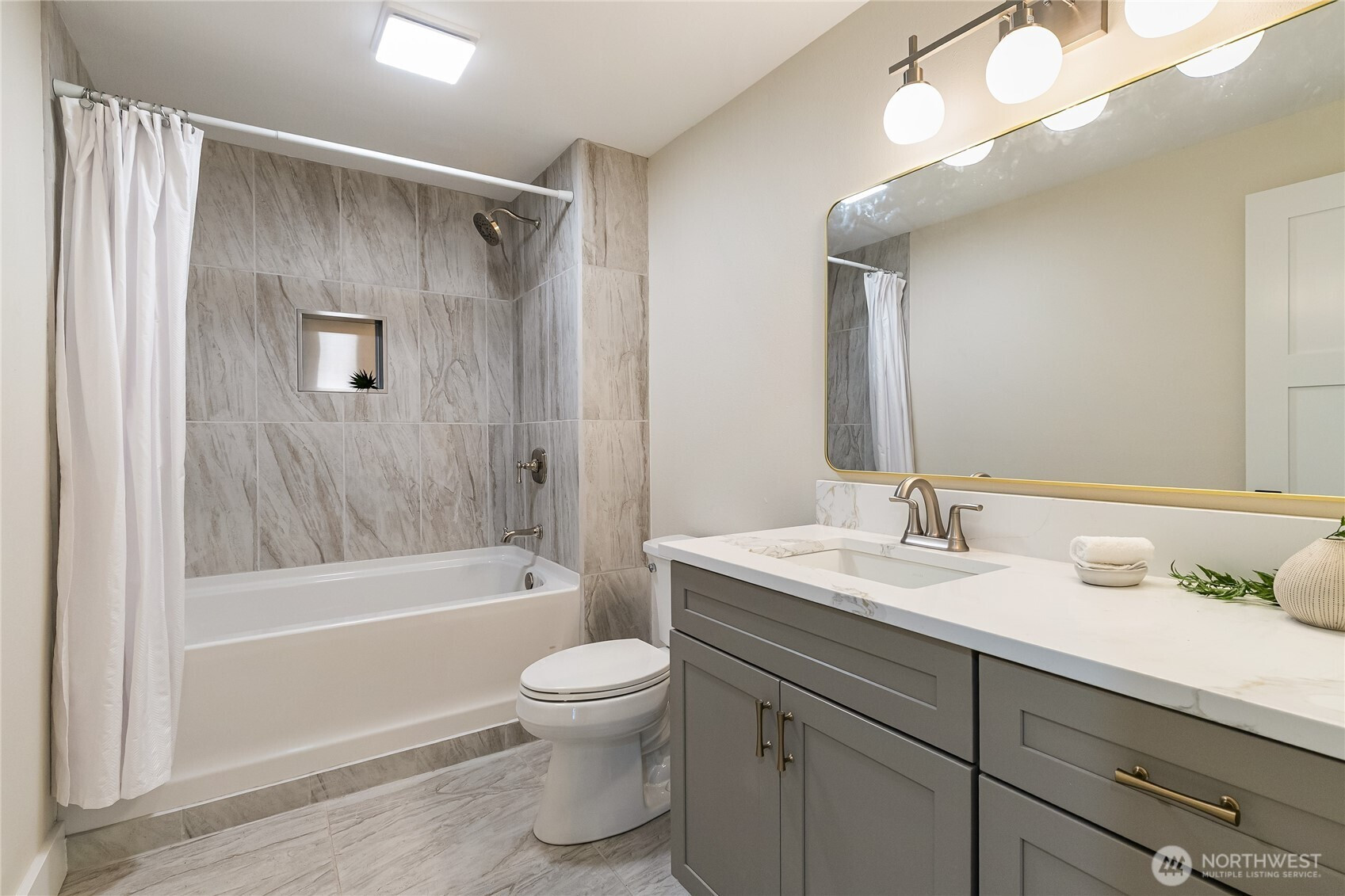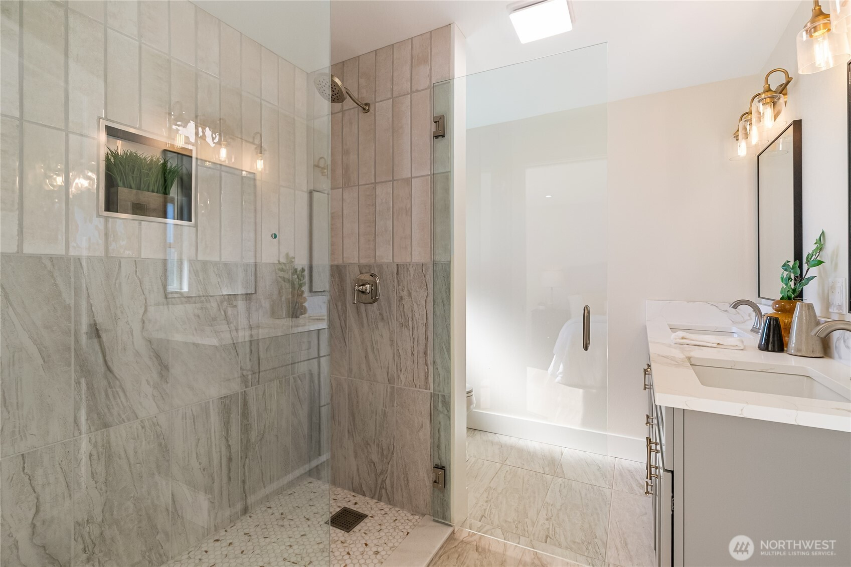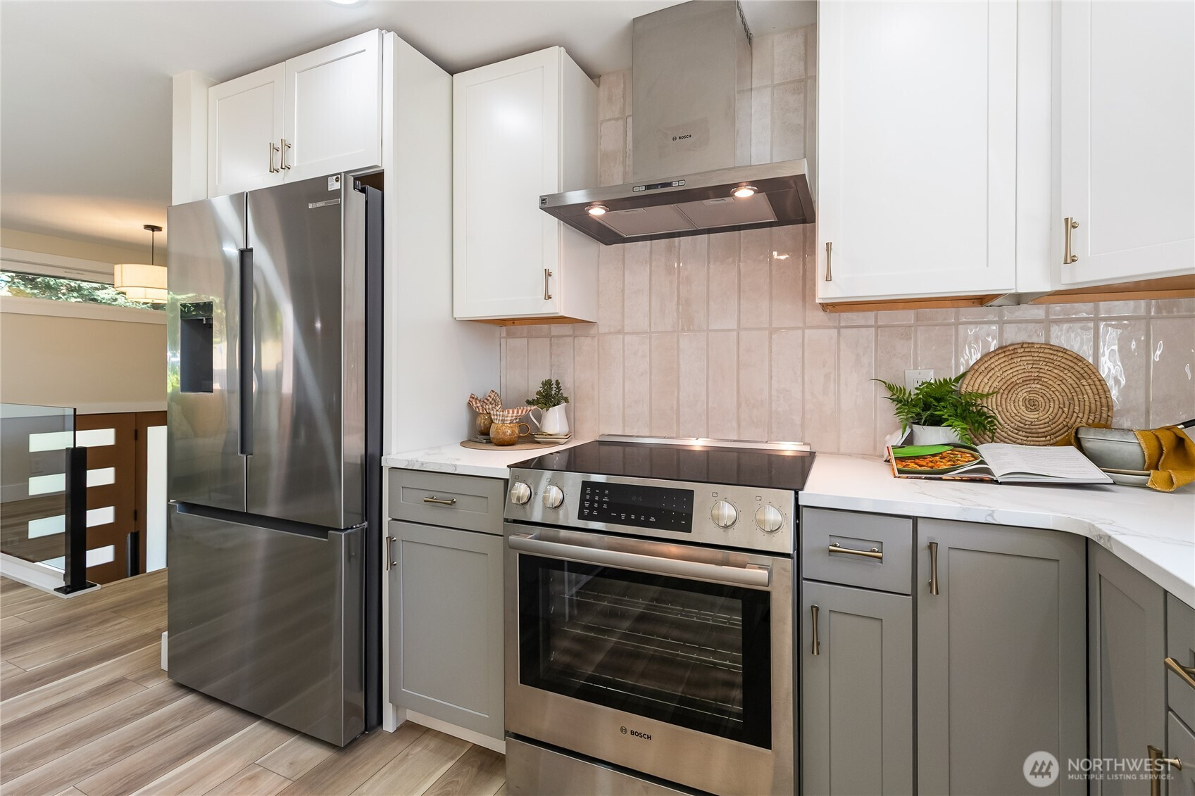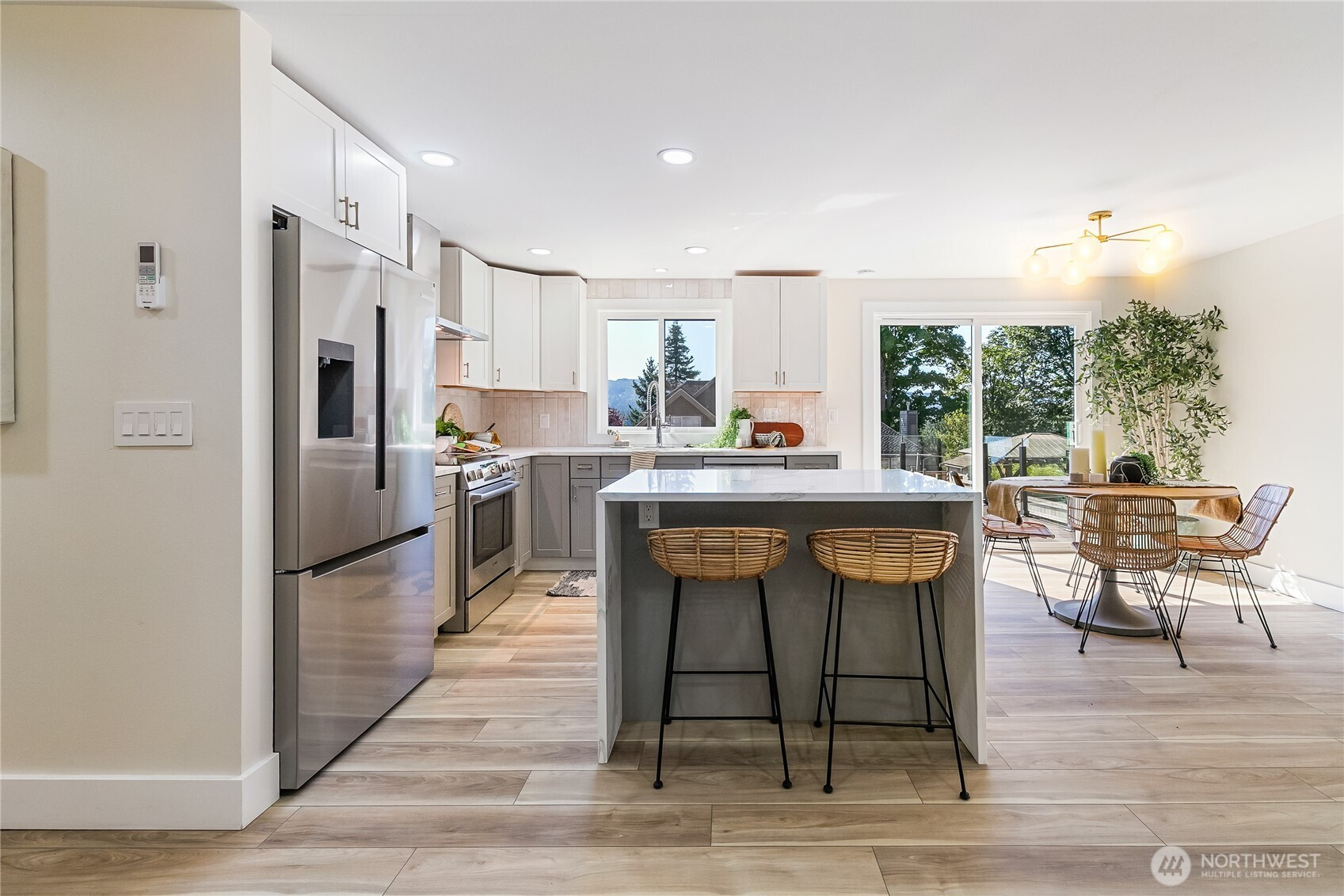 Now priced under $950K – Silver Beach lake-view remodel! Enjoy stunning Lake Whatcom views from this beautifully updated 4-bed, 2.25-bath home on a quiet street. Fully renovated in 2025, it feels brand new with designer finishes, new windows, and a spacious entertaining deck. The open kitchen, living, and dining areas—and the primary suite with private balcony—showcase breathtaking water views. With 2,234 SF, quartz counters, all-electric appliances, and fireplaces on both levels, comfort and style abound. Peaceful 0.27-acre lot with mature landscaping, ample parking, and prime access to the lake, trails, and top-rated schools.