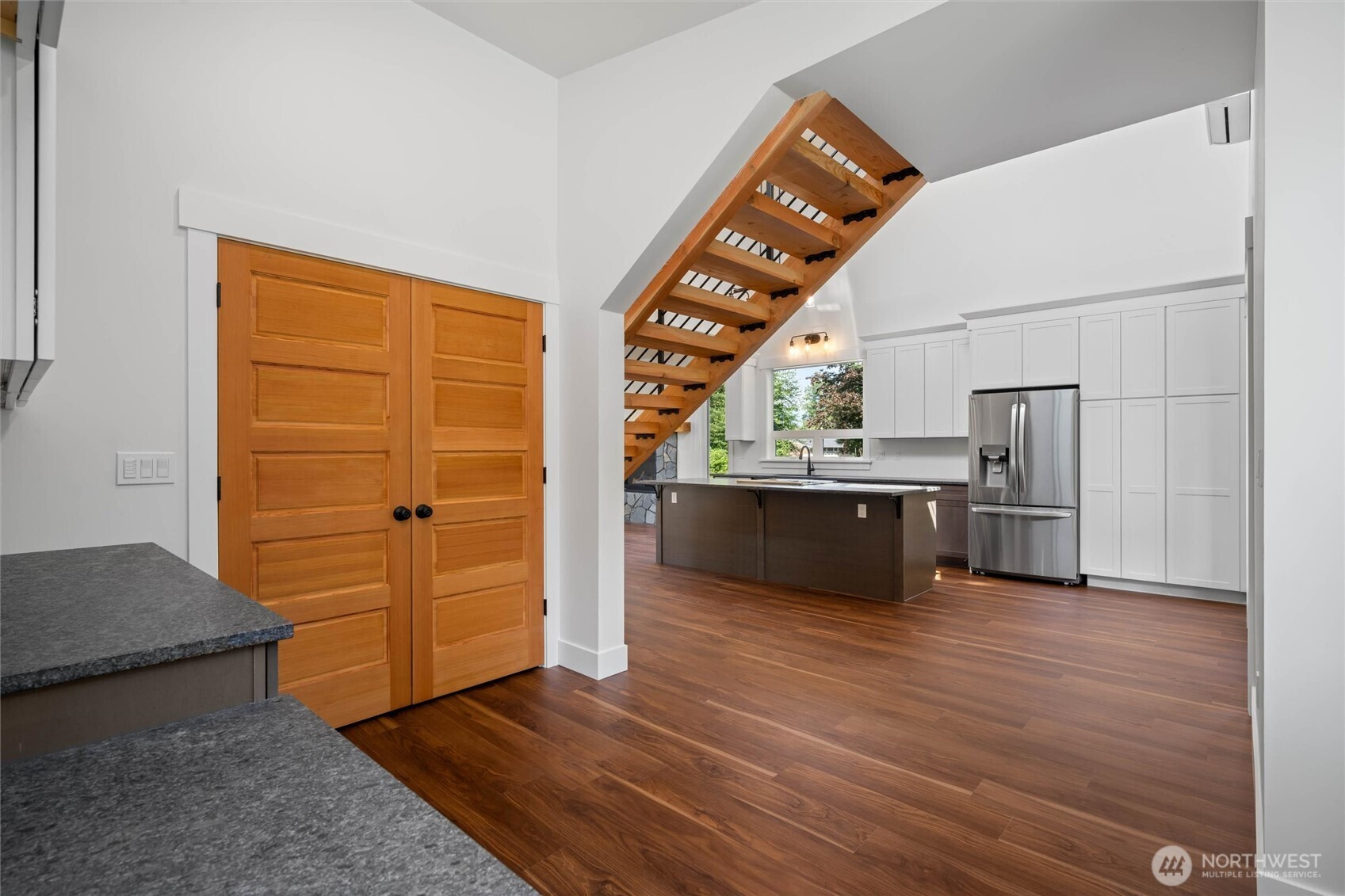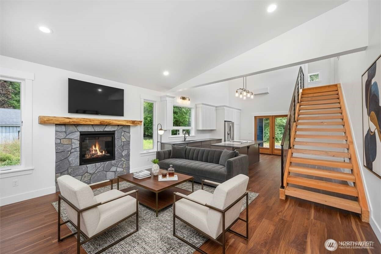 Exceptional new construction on an acre in the beautiful South Fork Valley. Enjoy a blend of modern upscale living in rural tranquility with easy access to premier outdoor recreation, Bellingham and the Mount Baker Ski Area. The home feels open and spacious with soaring vaulted ceilings and high-end finishes throughout, like Gaia luxury vinyl floors, upscale kitchen with high craftsmanship cabinetry with pullouts, heated bathroom floors, a ductless mini-split in each room, custom trim and a striking open staircase. Step outside to a stamped concrete covered patio and large finished shop with office and 3 storage lofts. Fish, swim or float the Nooksack River and hike the many nearby trails. A great place to live in quiet farm community.