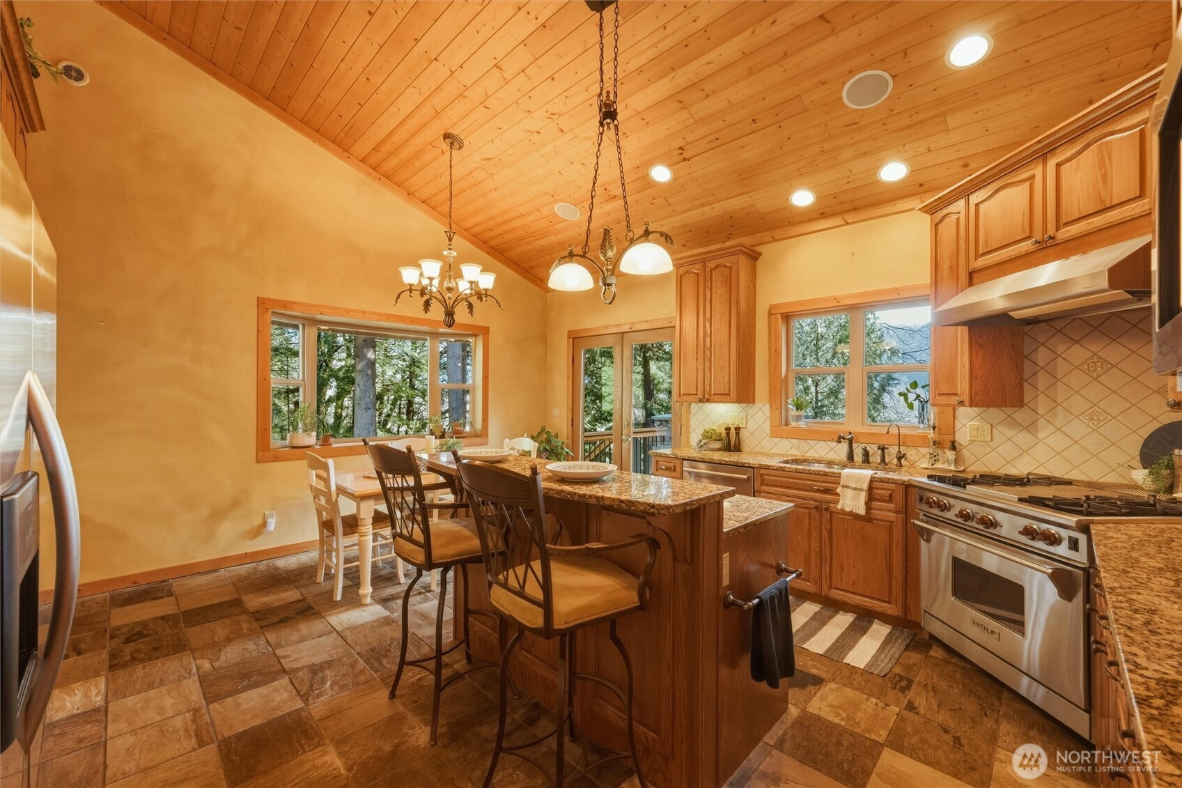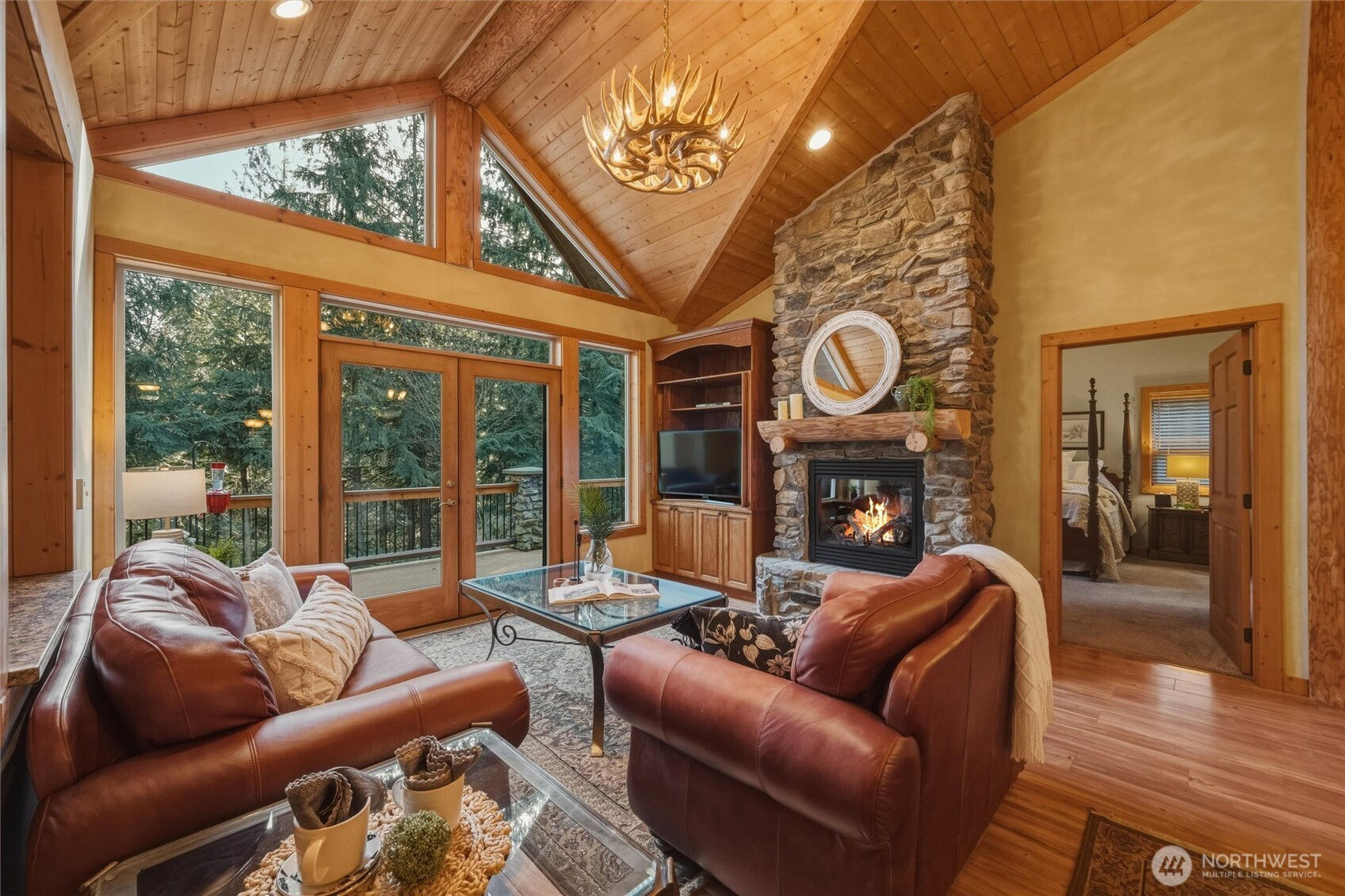 Welcome to 4126 Caron Rd — a 5-acre private estate in Deming where custom craftsmanship meets refined mountain living. Surrounded by evergreens and custom walking trails throughout the property, the setting feels like your own private forest - yet remains close to town and minutes from the scenic Mount Baker Highway and year-round recreation at Mount Baker Ski Area. Built with enduring stone and timber construction, this custom residence blends rustic elegance with thoughtful design. A hand-honed log staircase anchors the interior, while four stone fireplaces and custom built-ins add warmth and character. Radiant heat provides year-round comfort. The chef’s kitchen features Wolf stove, honey oak cabinetry and granite countertops that extend into the bathrooms for cohesive finishes. With 3 bedrooms and 4 bathrooms, including a private lower-level ensuite ideal for guests, the layout offers exceptional flexibility. The lower level is designed for entertaining, featuring a wet bar with wine closet and private guest retreat. Above the attached 2-car garage, a spacious loft offers an ideal media room, recreation space, or studio. A detached shop with upper loft expands possibilities for hobbies or workspace. This is more than a home - it’s a private Pacific Northwest retreat defined by craftsmanship, seclusion, and lifestyle.