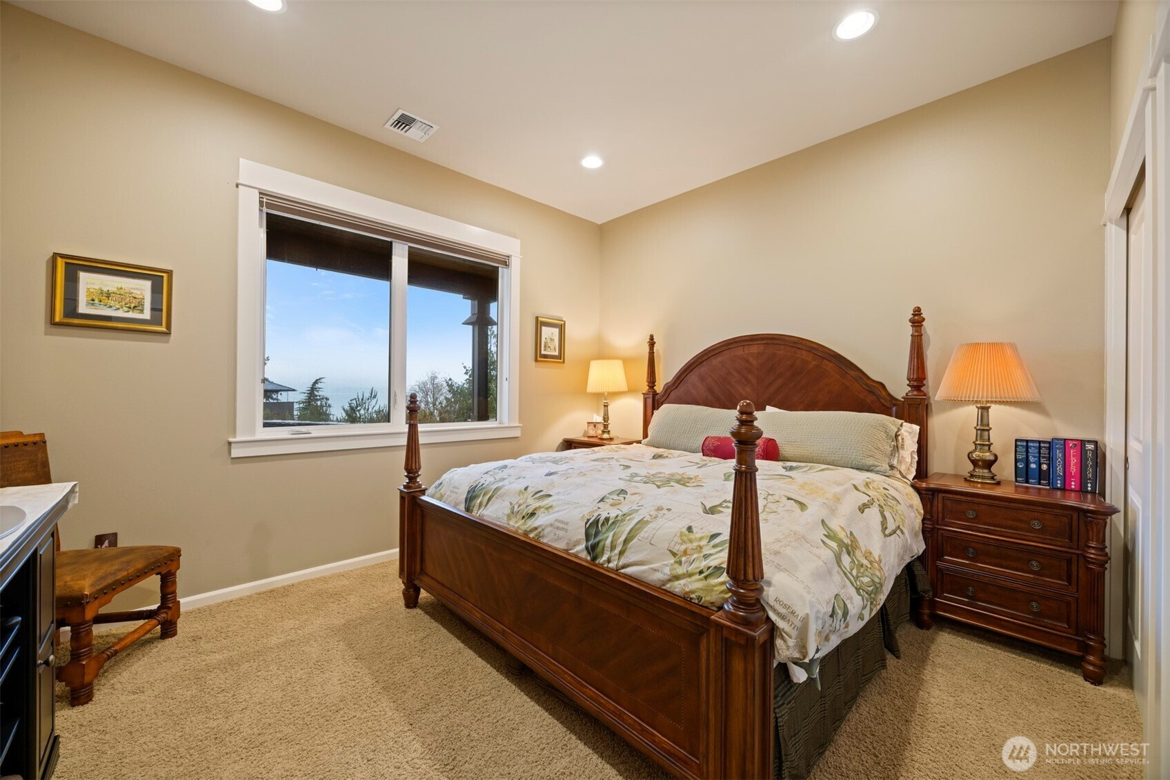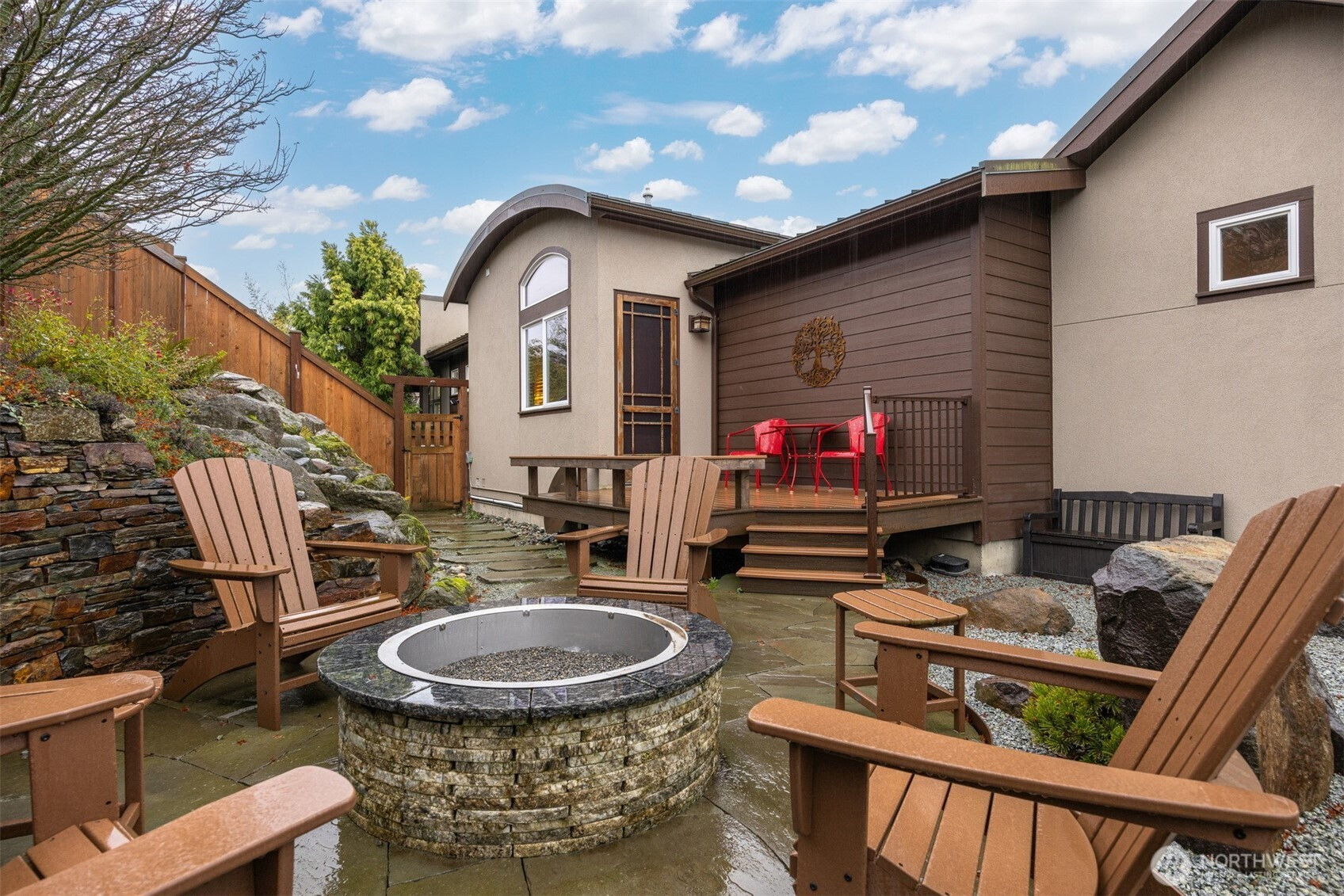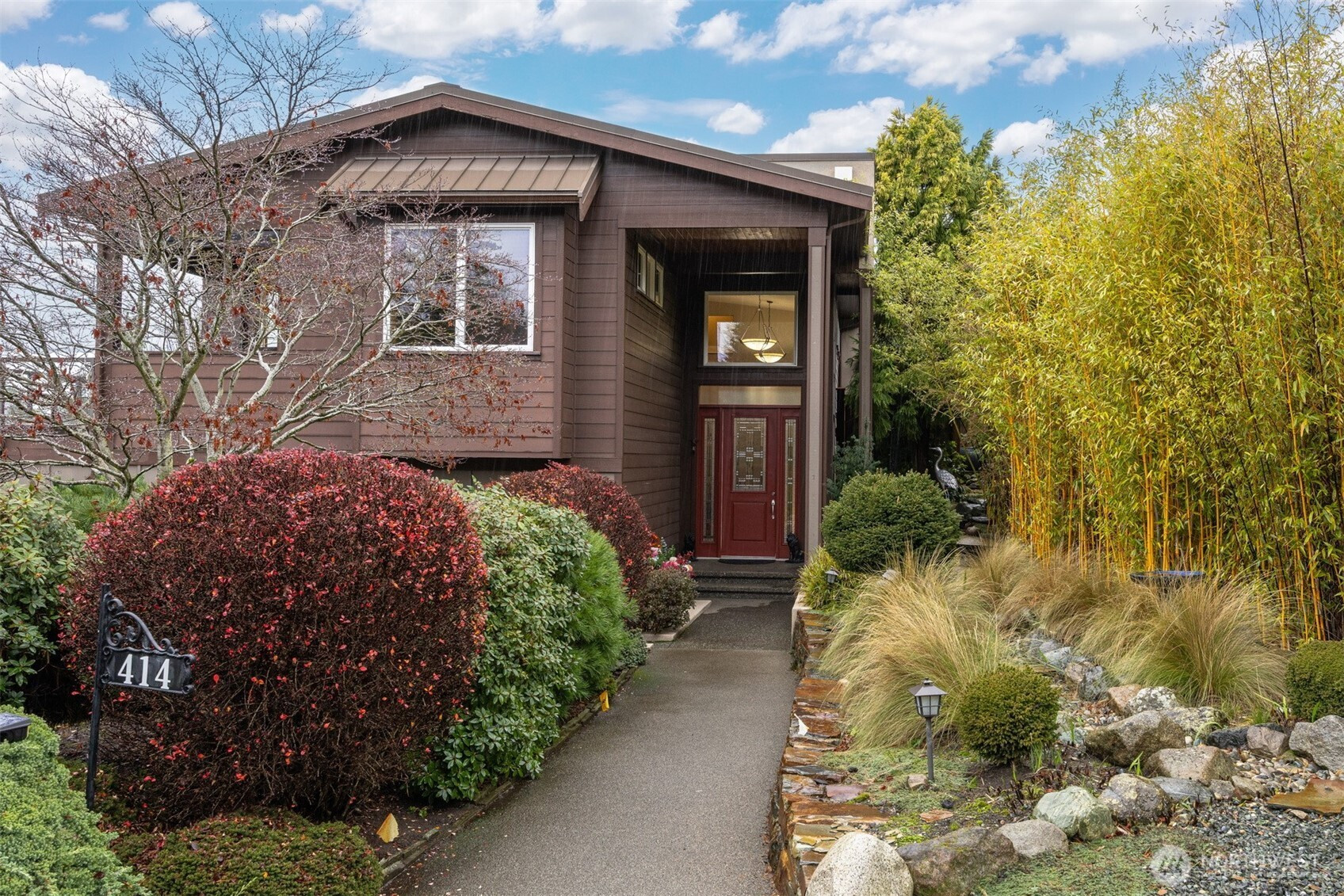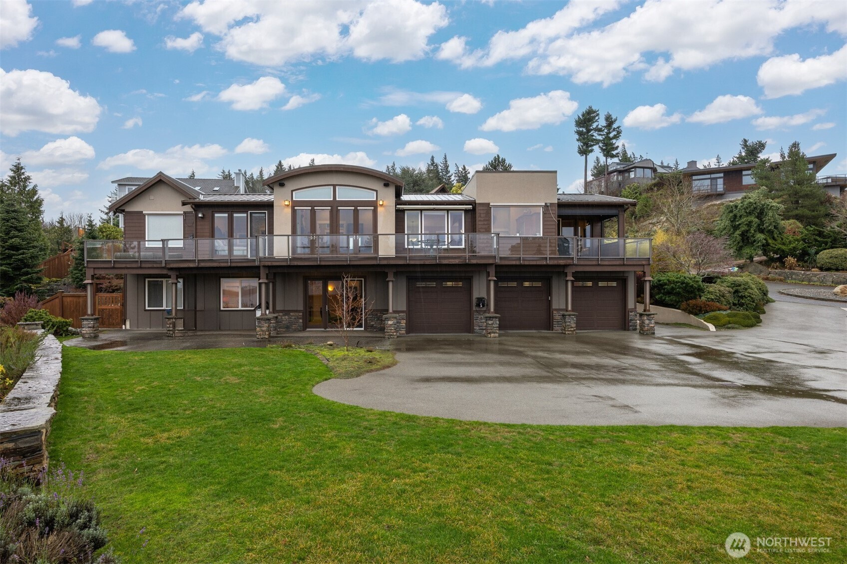 Set discreetly in Bellingham’s Edgemoor neighborhood, this architect-designed home offers absolute privacy, timeless architecture, and elegance amid lush, sculpted gardens, a sculptural fire feature and a waterfall with a bridge. Sunlight pours through expansive windows, illuminating soaring ceilings, custom millwork, and gallery-style walls. The open kitchen and living areas flow to a wraparound deck framing panoramic bay and San Juan Island views. The main floor features a spa-like primary suite with a walk-in wardrobe, automated blinds, and a luminous library. The lower level includes a large family room with a built-in bar that opens to a covered patio with views. Just minutes from Fairhaven, this is refined coastal living at its best.