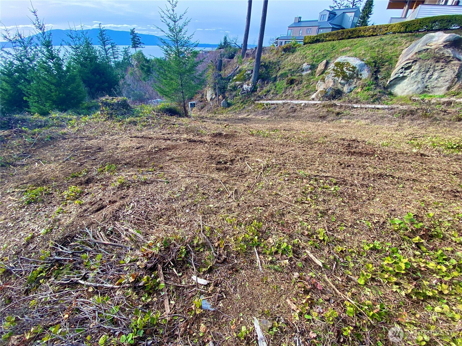 One of Edgemoor's rare and most beautiful lots, with spectacular views of the Chuckanut Bay, Bellingham Bay, the Olympics and the islands. If you are looking to build a home on a perfect hilltop site, at the end of a private drive which backs up to acres of thick forest, this 1.3 acre parcel is ideal for your dream home. The commanding views include island sunsets in the west, and the tranquil waters of Chuckanut Bay to the south. The road to the property is heated to keep it clear on those snow days. Stunning contemporary house plans have been designed specifically to accommodate this building site and to take advantage of the amazing water and mountain scenery.