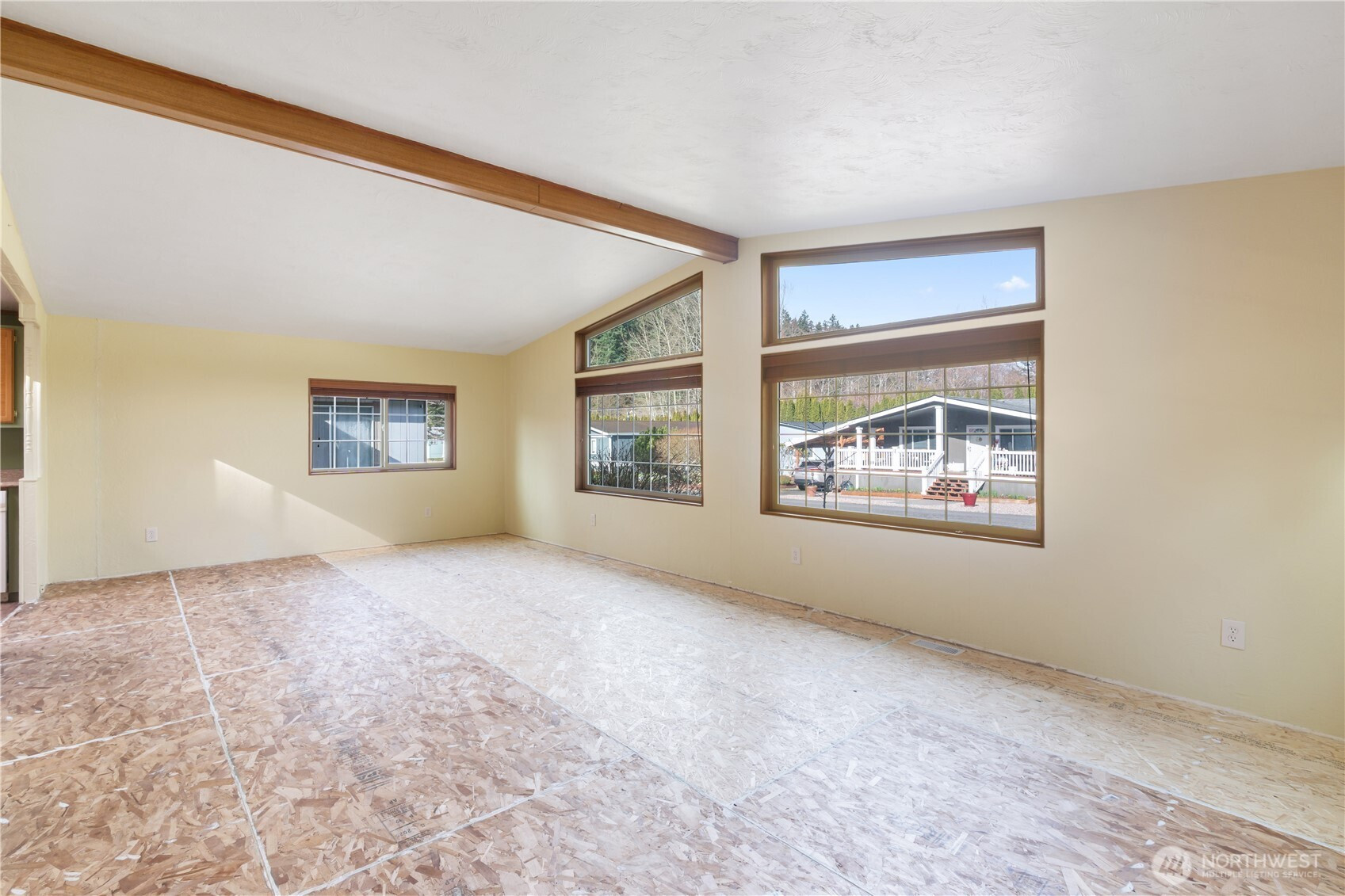 Welcome to Robin Lane Park, a quiet 55+ community minutes from historic Fairhaven's shops, restaurants, trails, and waterfront. This home has been meticulously upgraded with improvements. Subfloors were replaced with upgraded 3/4" OSB where accessible, floor framing reinforced and leveled, and floor joists filled with R22 insulation for superior comfort and energy efficiency. The foundation was repaired, all water intake plumbing replaced and insulated, and new underlayment installed. This home is ready for your choice of finish flooring. Enjoy year round comfort with a 2021 heat pump, triple pane windows, and an expansive covered porch with skylight that floods the space with natural light. The property also includes powered storage, a partially screened sitting area perfect for morning coffee, and a gated garden space........don’t miss your opportunity to make it yours!
