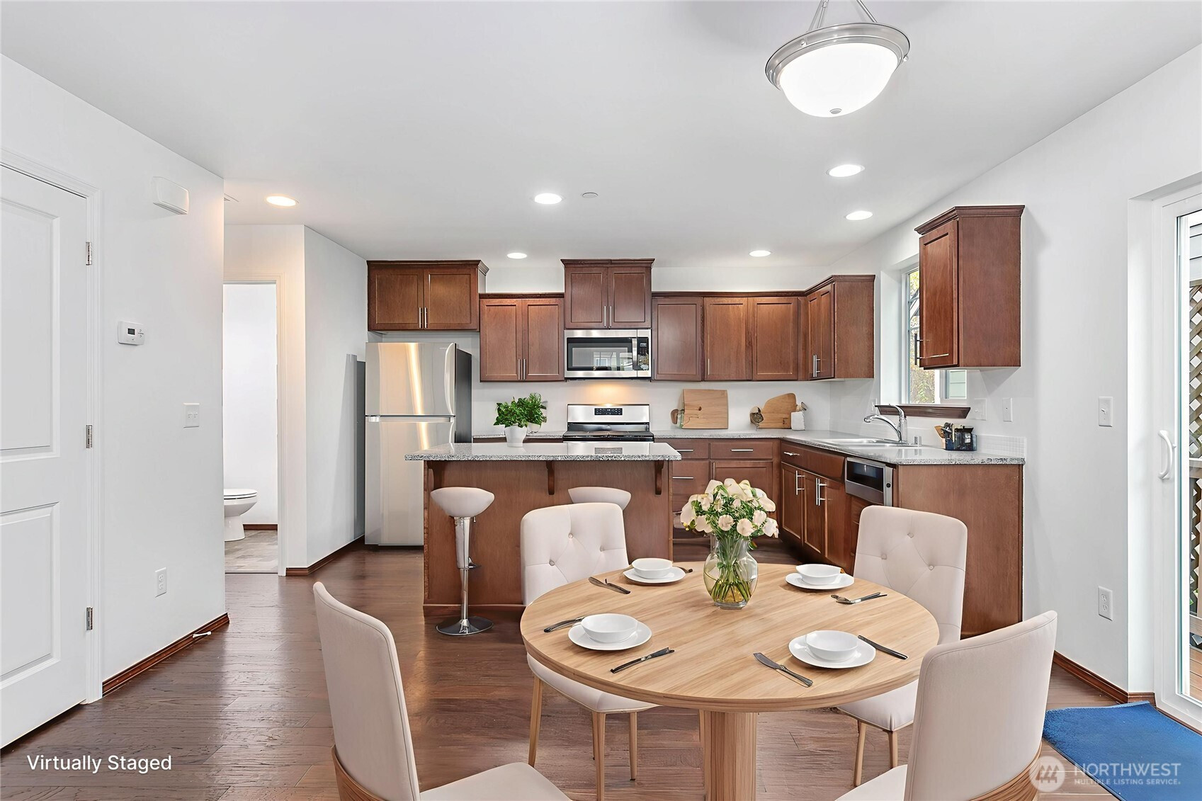 Immaculate 3 bedroom, 2.25 bathroom condo in the popular Cordata Neighborhood. Sip coffee on your private back deck overlooking a lush greenspace, or walk to nearby Cordata Park. Minutes from schools, shopping, dining, and healthcare facilities. This gem is in the absolute perfect location! Enjoy entertaining in the spacious main level great room, with cozy gas fireplace, kitchen dining space, and well-appointed kitchen. Upstairs you'll find two guest bedrooms, a full bathroom, plus a primary bedroom with en suite bathroom and walk-in closet. Fresh interior paint and recently cleaned carpets inside. Exterior power washing and new deck railing paint outside. Low-maintenance yard, too. This home is turnkey, move-in ready, and waiting for you!