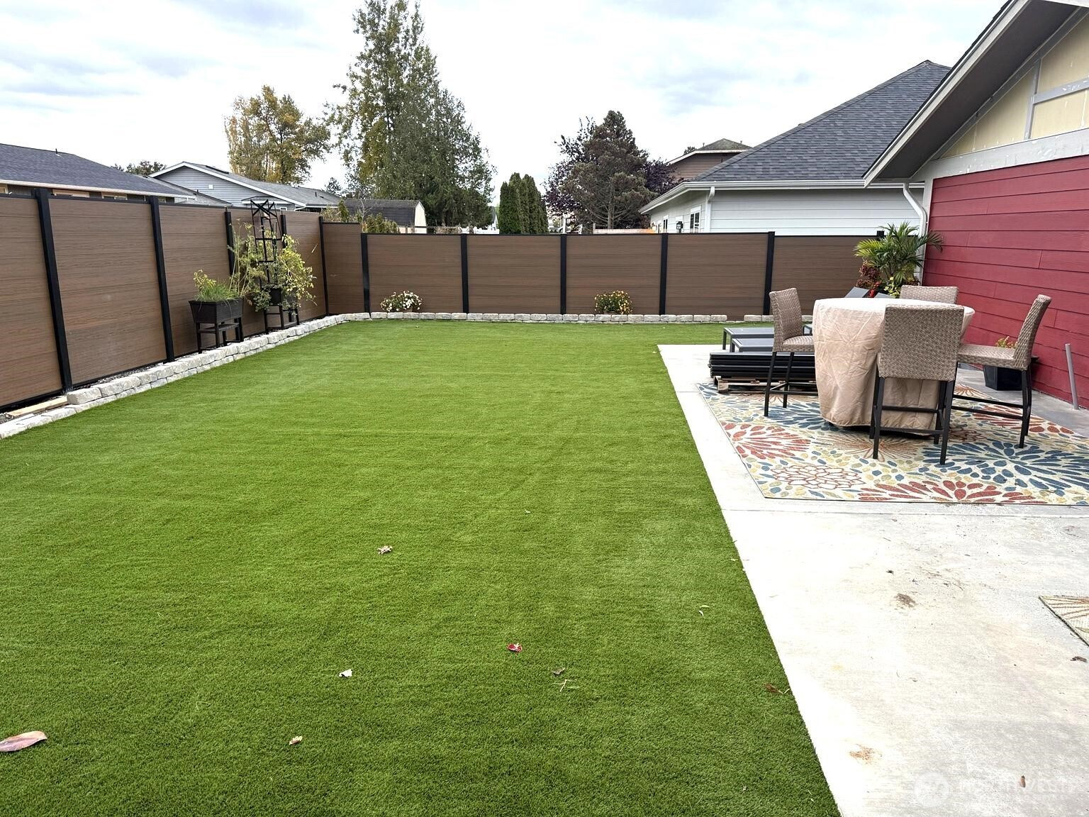 True one-level living with absolutely no stairs. Convenient alley access allows you to park and walk directly into the home with zero-step entry. Features include double doors, expansive outdoor patio spaces, a covered storage area, front covered porch, fenced backyard, and easy-maintenance turf lawn. The alley provides additional parking, plus a side yard with gated parking behind the fence. Beautifully remodeled throughout, the home offers a spacious primary suite with a luxurious walk-in shower featuring multiple shower heads, body sprays, and a rain head, along with a large soaking tub, double vanity and walk-in closet. Two additional bedrooms and a generously sized guest bathroom provide comfortable and flexible living space. This layout is ideal for accessibility, multigenerational living, or anyone seeking true single-level convenience. Additional features include dog shower, huge laundry room with extra storage, wired for generator, heat pump and newer roof.