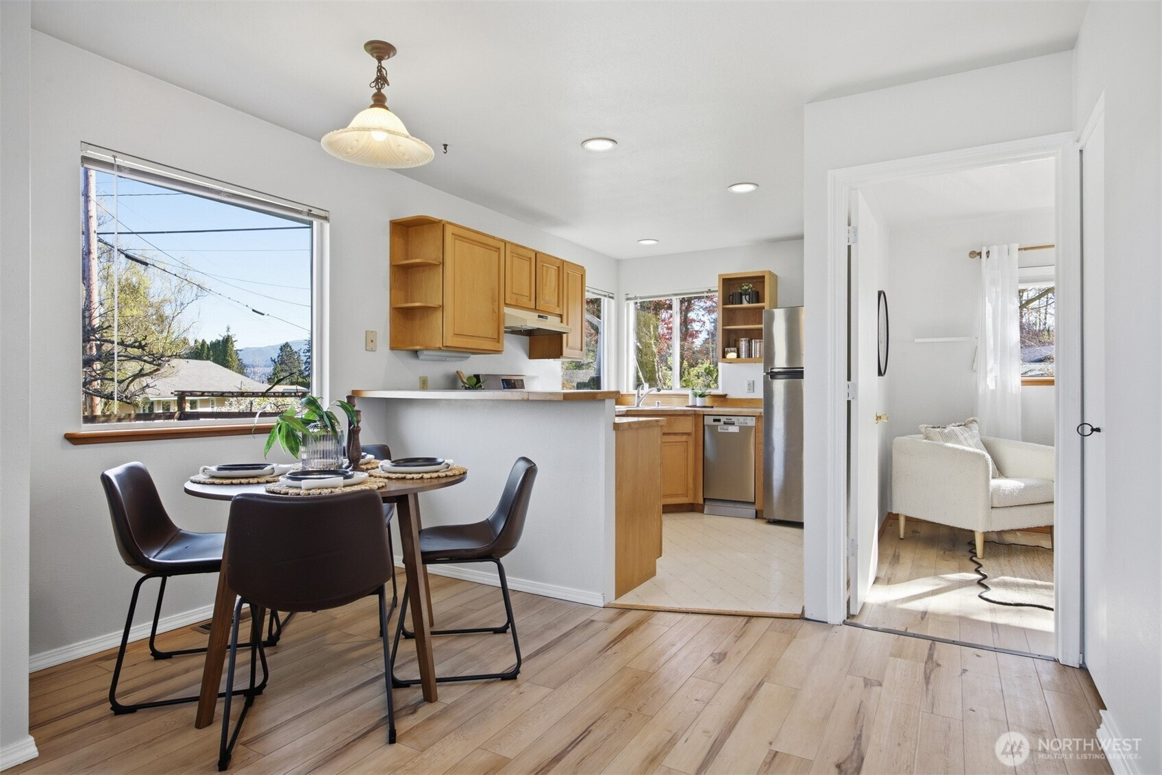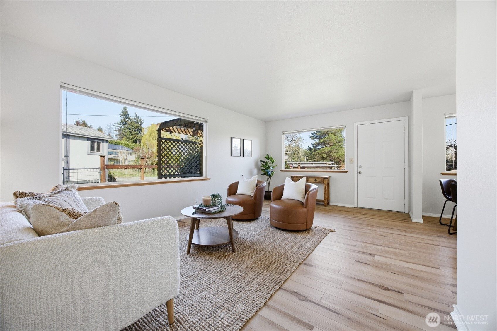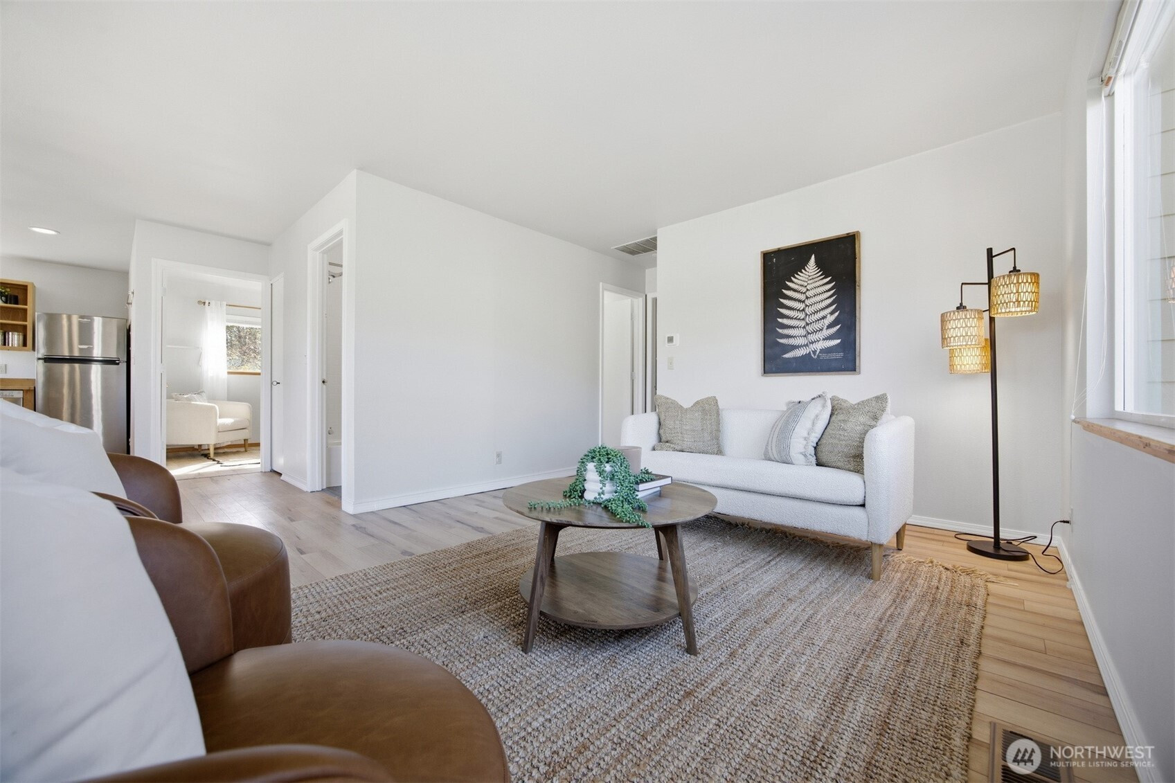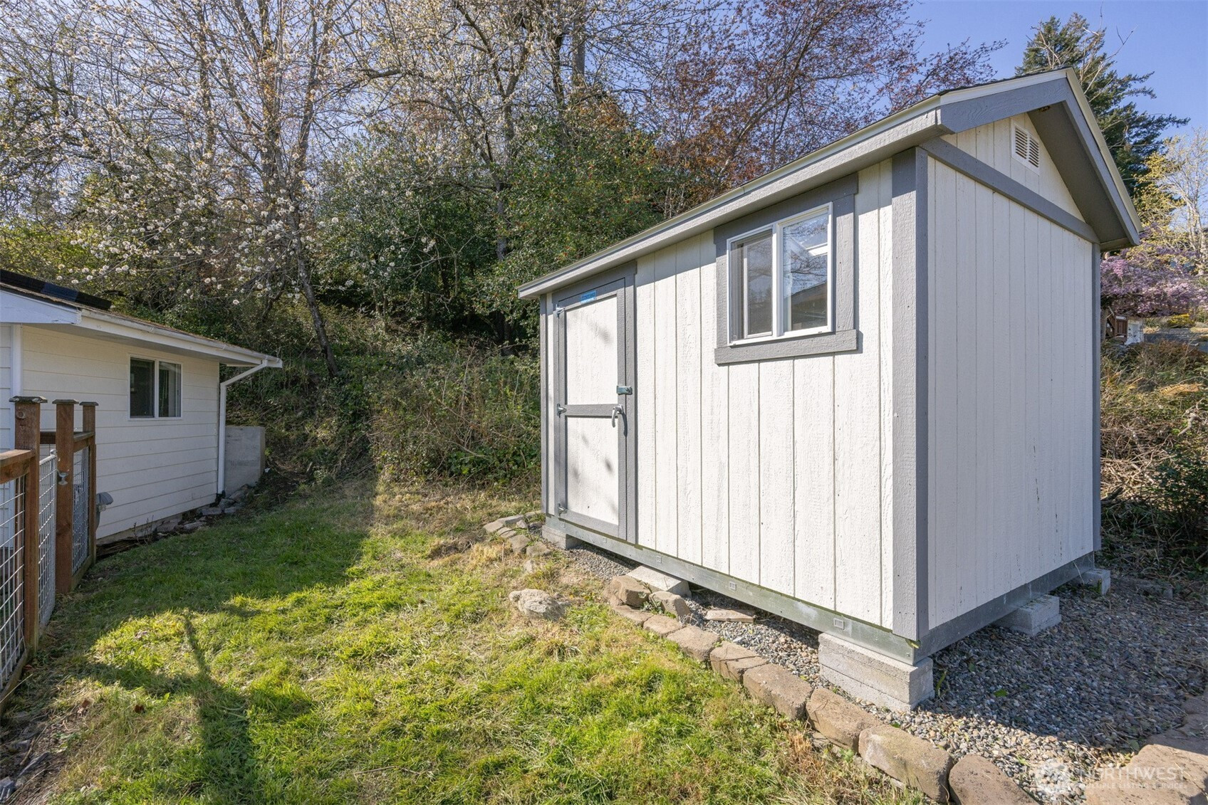 Your Silver Beach bungalow awaits! Adorable, updated home on a double, corner lot in one of Bellingham's sunniest neighborhoods - this is a rare find. Quick access to Big Rock Garden trails, Lakeline, Silver Beach Elementary, and Barkley Village. Enter to a bright, open floor plan with lots of windows, kitchen with stainless steel appliances, and generous living room. Recent updates include LVP floors + fresh paint throughout, 2024 furnace, 2017 roof, stainless steel appliances, and an updated bathroom. Large Trex deck and fenced yard offer fantastic outdoor living and garden space. 2 sheds convey with the property + large utility room for added storage. Corner, .3 acre lot on dead-end street provides privacy and versatility. Welcome home!