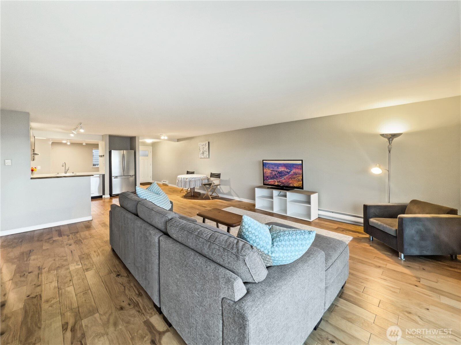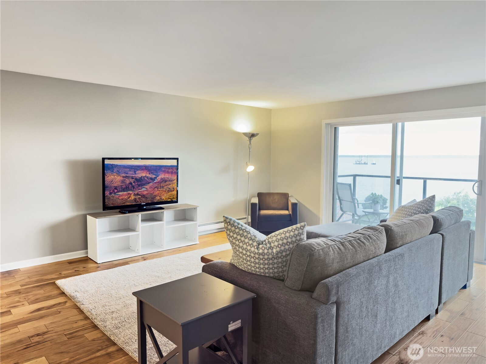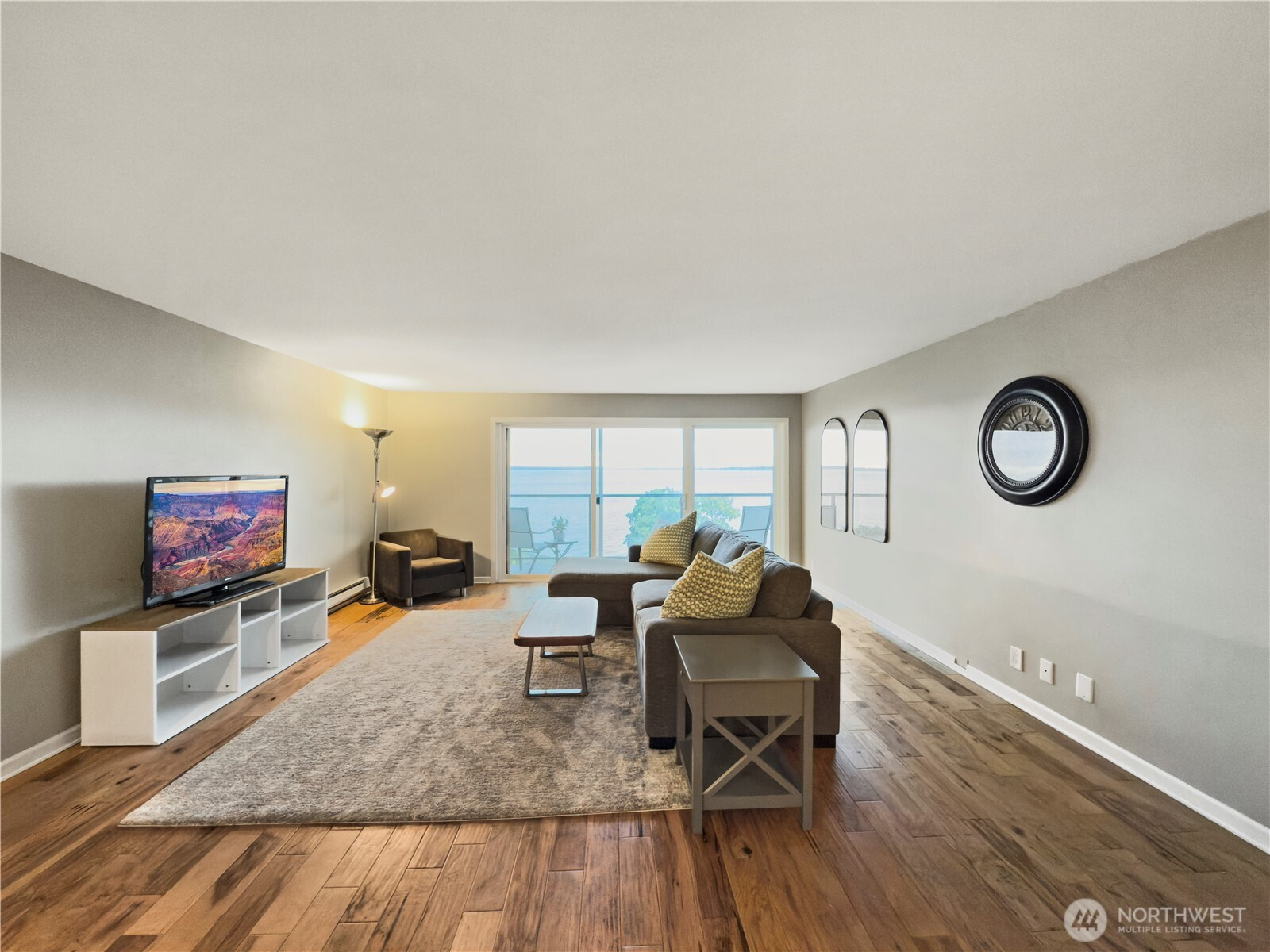 What a View! This spacious 2-bedroom, 1-bath condominium features approximately 1,470 square feet of living space. Perched above Boulevard Park, it offers stunning views of Bellingham Bay and year-round sunsets. The unit features a den, engineered hickory hardwood floors, stainless steel appliances, added sound reduction to the walls, and a recently upgraded Miele washer and dryer. Located along the trail to Fairhaven and downtown, the building—Spinnaker Reach—has undergone a $4.3million exterior renovation, including new siding, windows, balconies, elevator, and roof. Amenities include an outdoor pool, game room, sauna, barbecue grills, and coin-operated laundry facilities.