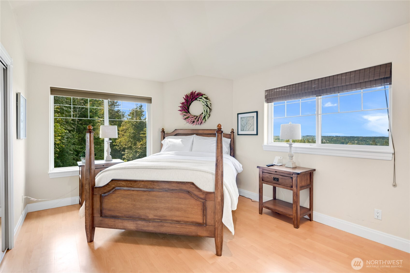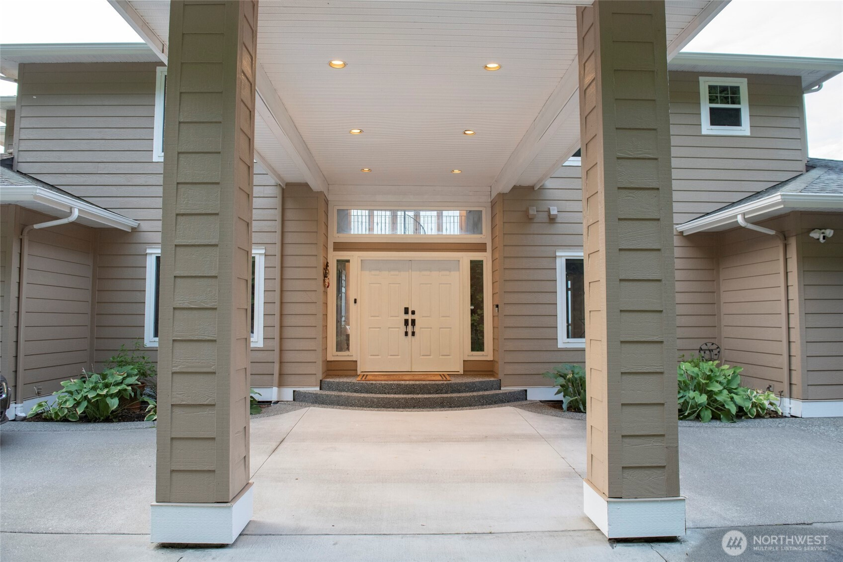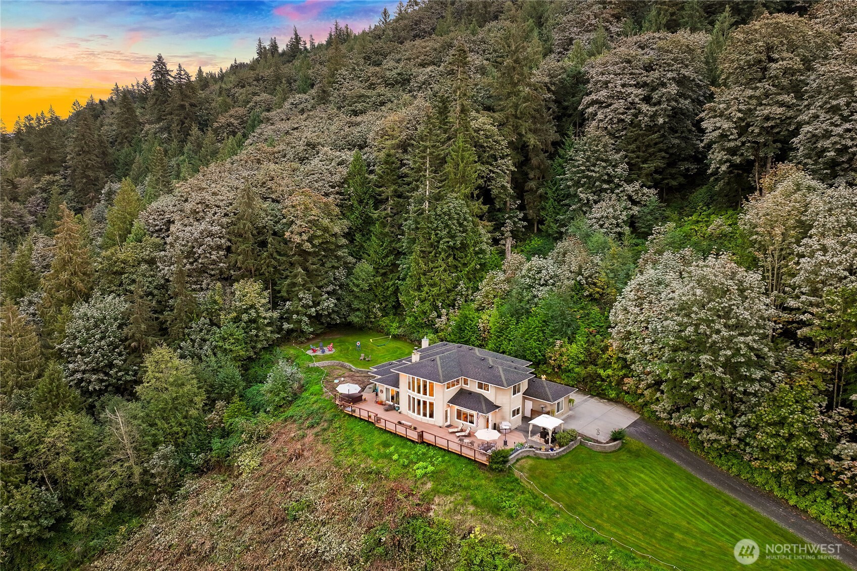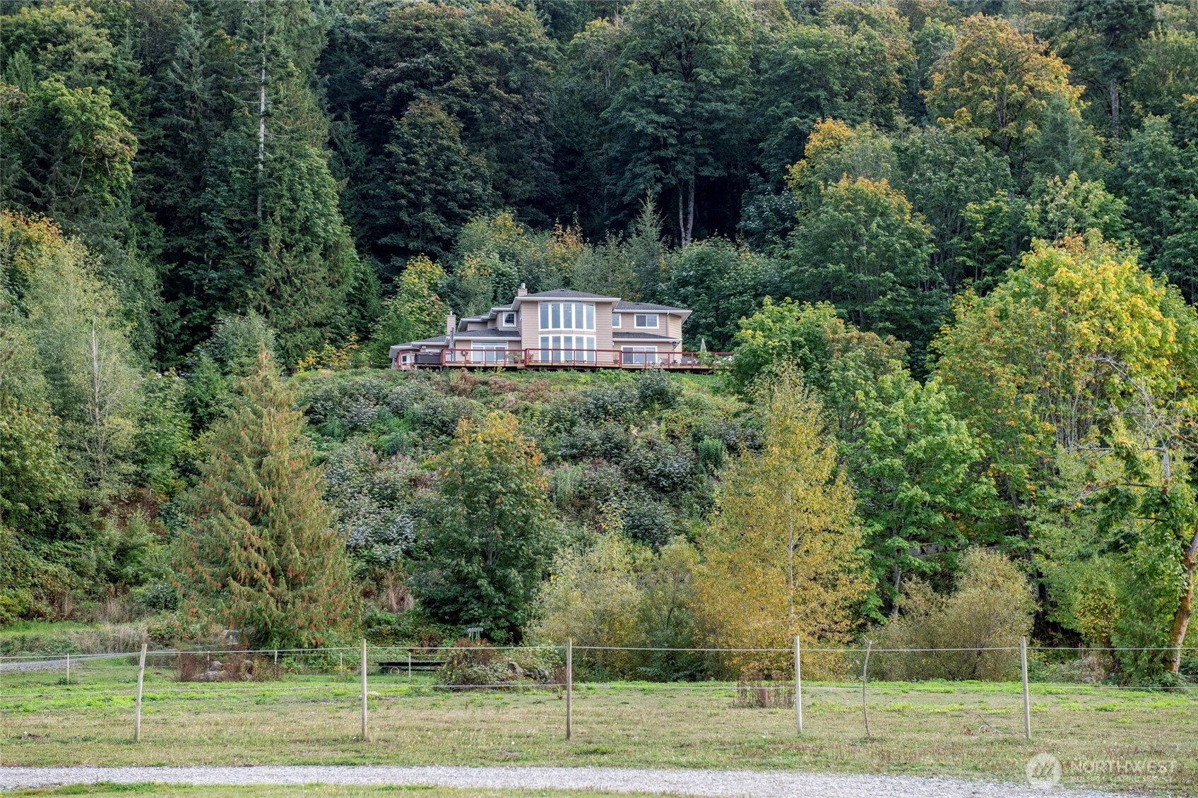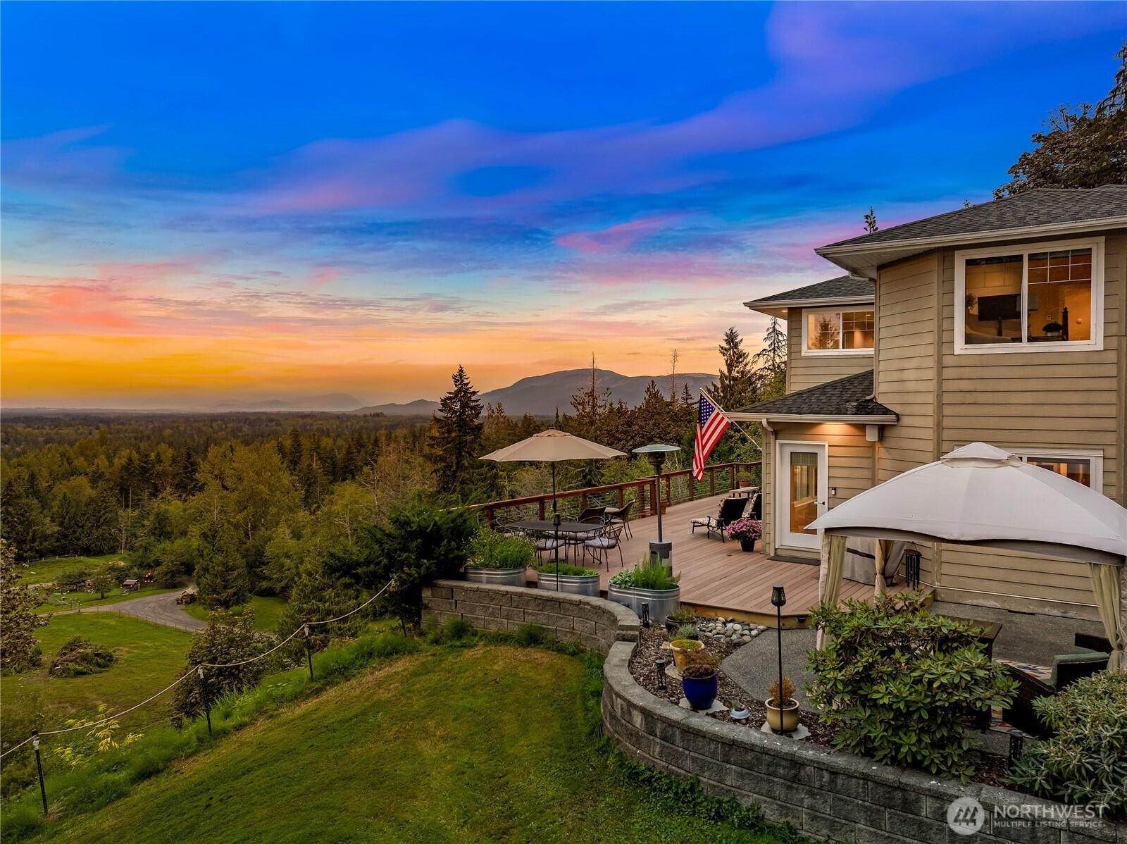 Discover serene living just minutes from downtown Bellingham at this exceptional 5-bedroom, 4.25-bath estate. Set on 20 private acres, the home offers sweeping mountain and territorial views from nearly every room, creating a peaceful, retreat-like ambiance. An expansive deck invites outdoor living with panoramic views of rolling pastures, a serene pond, and a 6-stall monitor barn—complete with a beautifully remodeled upper level, perfect for a bonus room, office, or guest space. With R5 zoning, two separate addresses, and direct access to riding trails, this property offers incredible flexibility and future potential.