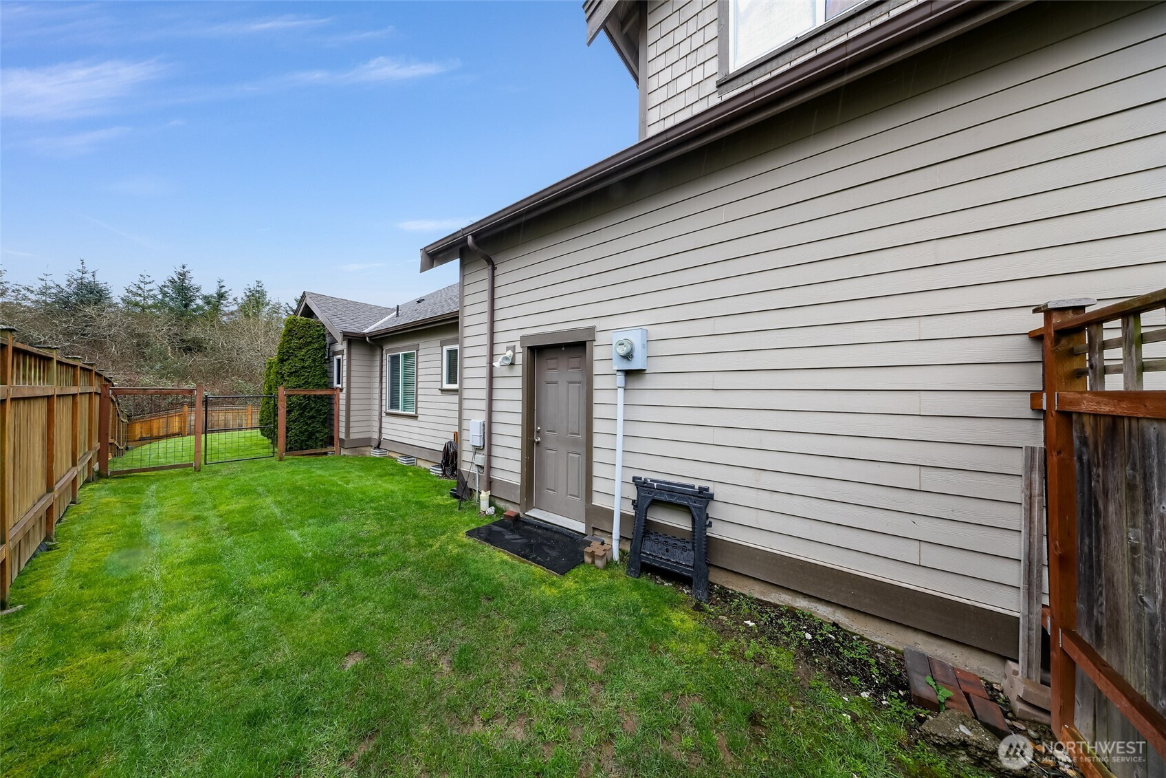 Experience the pinnacle of Pacific Northwest living in this stunning NW Contemporary masterpiece. Located within the prestigious, secure gated community of The Greens at Loomis Trail, this 4-bedroom, 2.75-bathroom residence spans 2,700 sq. ft. of thoughtfully designed living space, blending modern sophistication with everyday functionality. Step inside to find sleek bamboo flooring that flows through an open, light-filled floor plan. The expansive primary serves as a private sanctuary, featuring a spacious walk-in closet and a luxurious walk-in shower. With four generous bedrooms, there is ample space for a home office, guests, or a growing lifestyle. Fridge/freezer in garage does not convey. The exterior is equally impressive. Retreat to your private backyard, featuring a dedicated outdoor entertaining area perfect for summer gatherings or quiet mornings in nature. For pet lovers, the property includes a fully fenced dog run conveniently located on the side of the home. Whether you are enjoying the security of the gated neighborhood or the refined interior finishes, this home offers a rare lifestyle opportunity. Schedule your private tour today!