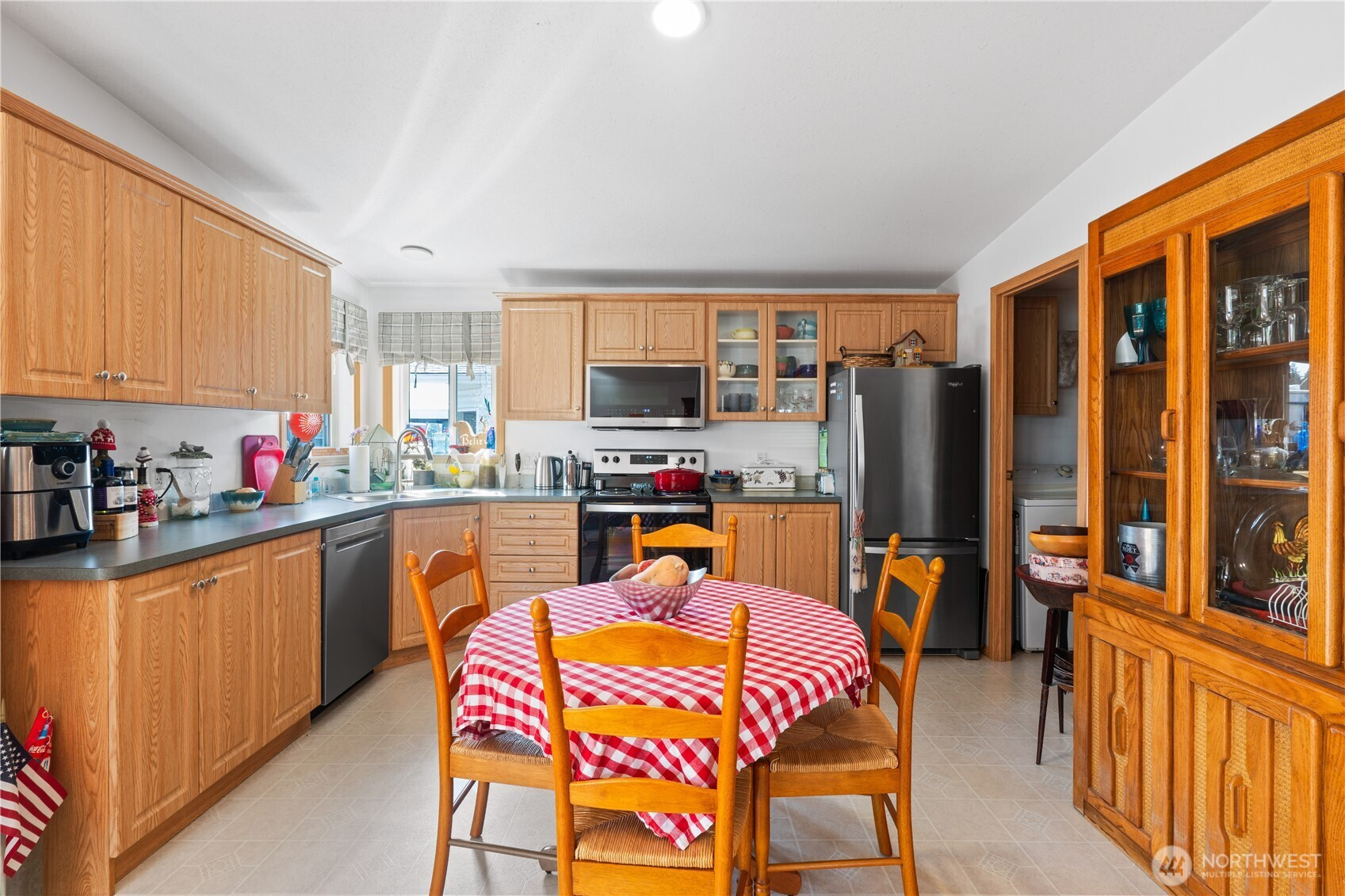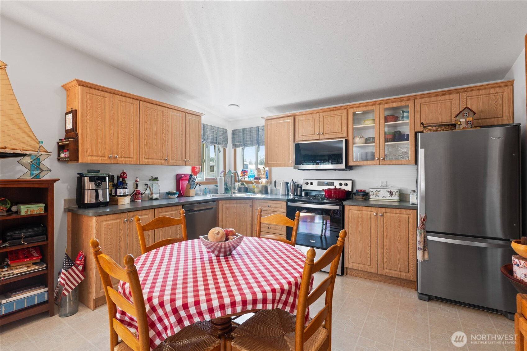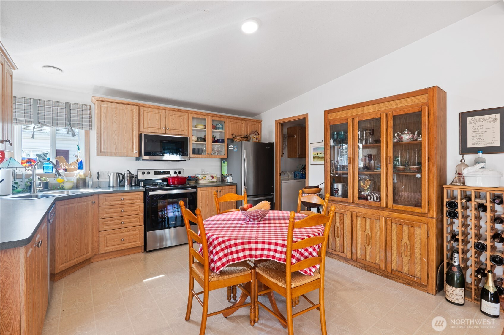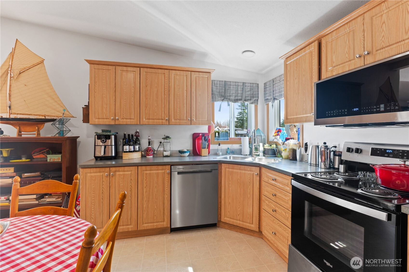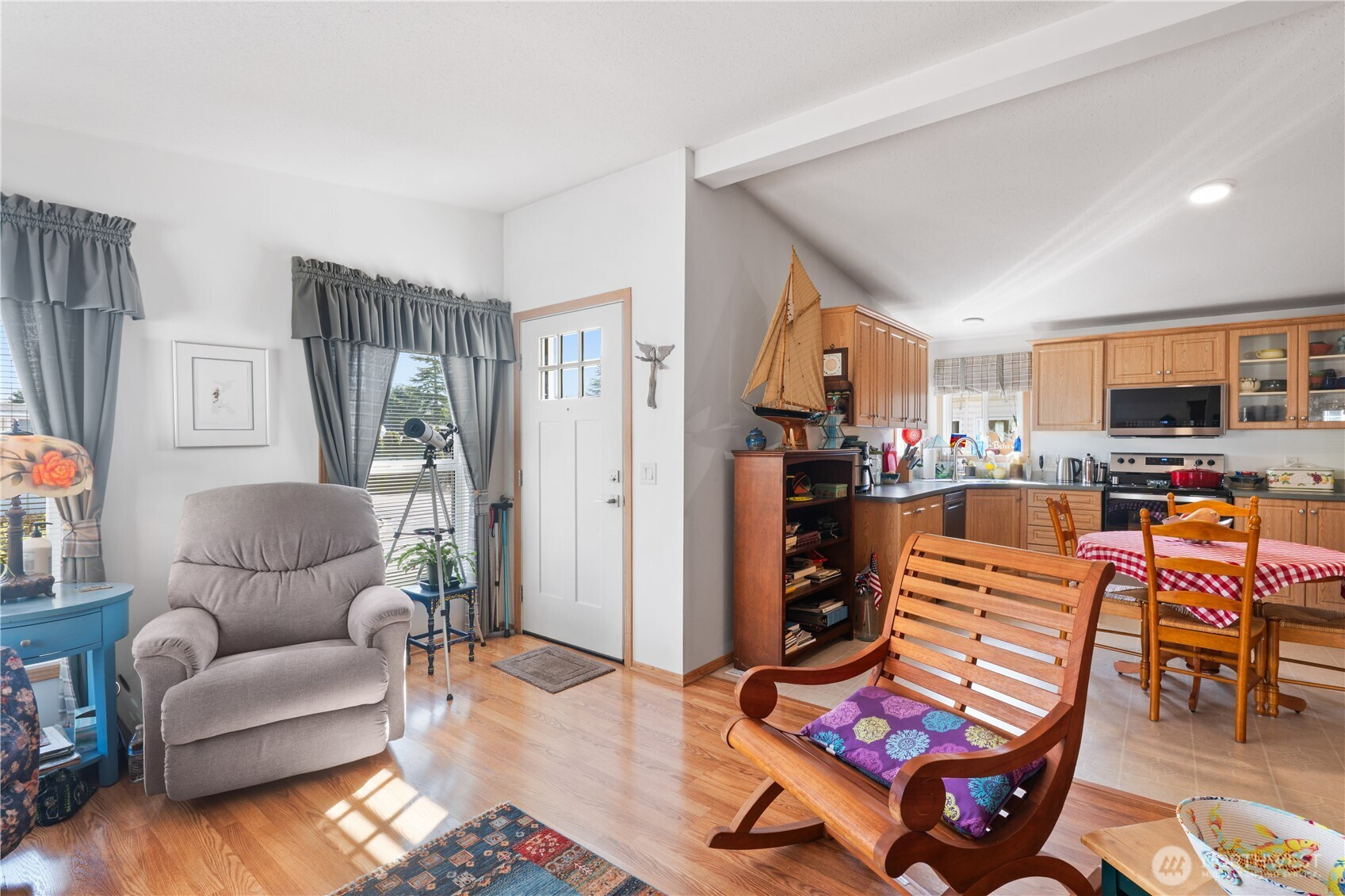 Welcome to Latitude 49—this well-maintained 2 bed, 1.75 bath home offers comfortable year-round living in a secure, gated community with low $135/month dues. Inside, you’ll appreciate the open floor plan feel with a seamless flow between the living space and dining area, creating a bright and inviting atmosphere. Extensive updates include a newer roof (2021), tankless water heater (2021), and a new forced air furnace (2024). The home also features updated lighting, newer stainless steel appliances, and modern finishes throughout. Enjoy a sun-filled setting with fresh coastal air just minutes from Birch Bay. Outside, you’ll find a fenced backyard, a grandfathered-in carport, updated doors, and a refreshed shed with new roof. Community amenities include a clubhouse, pool, pickleball courts, and more, along with beautifully maintained grounds and great walking areas. All ages welcome with 365-day use allowed—an easy, enjoyable place to call home.