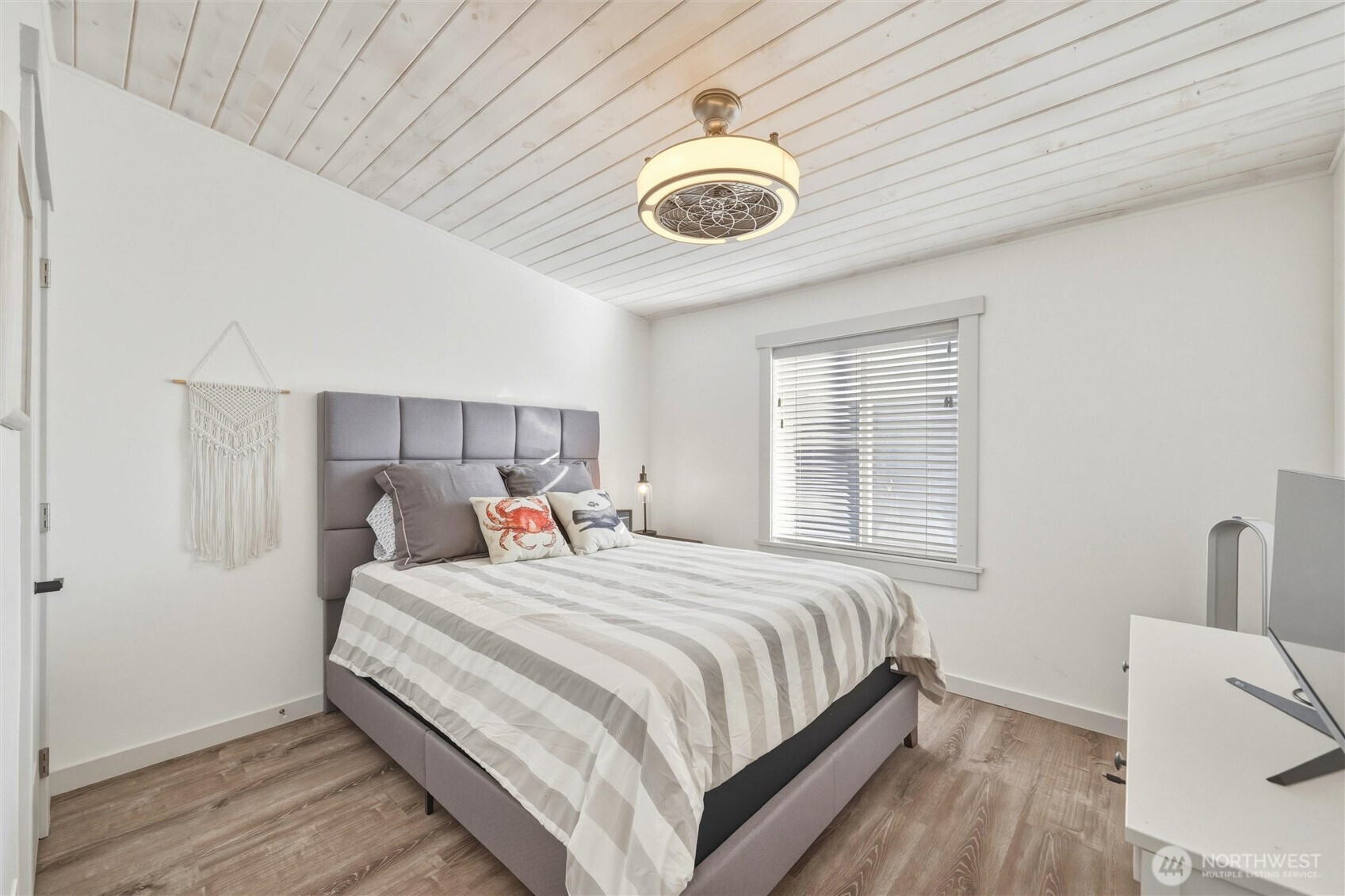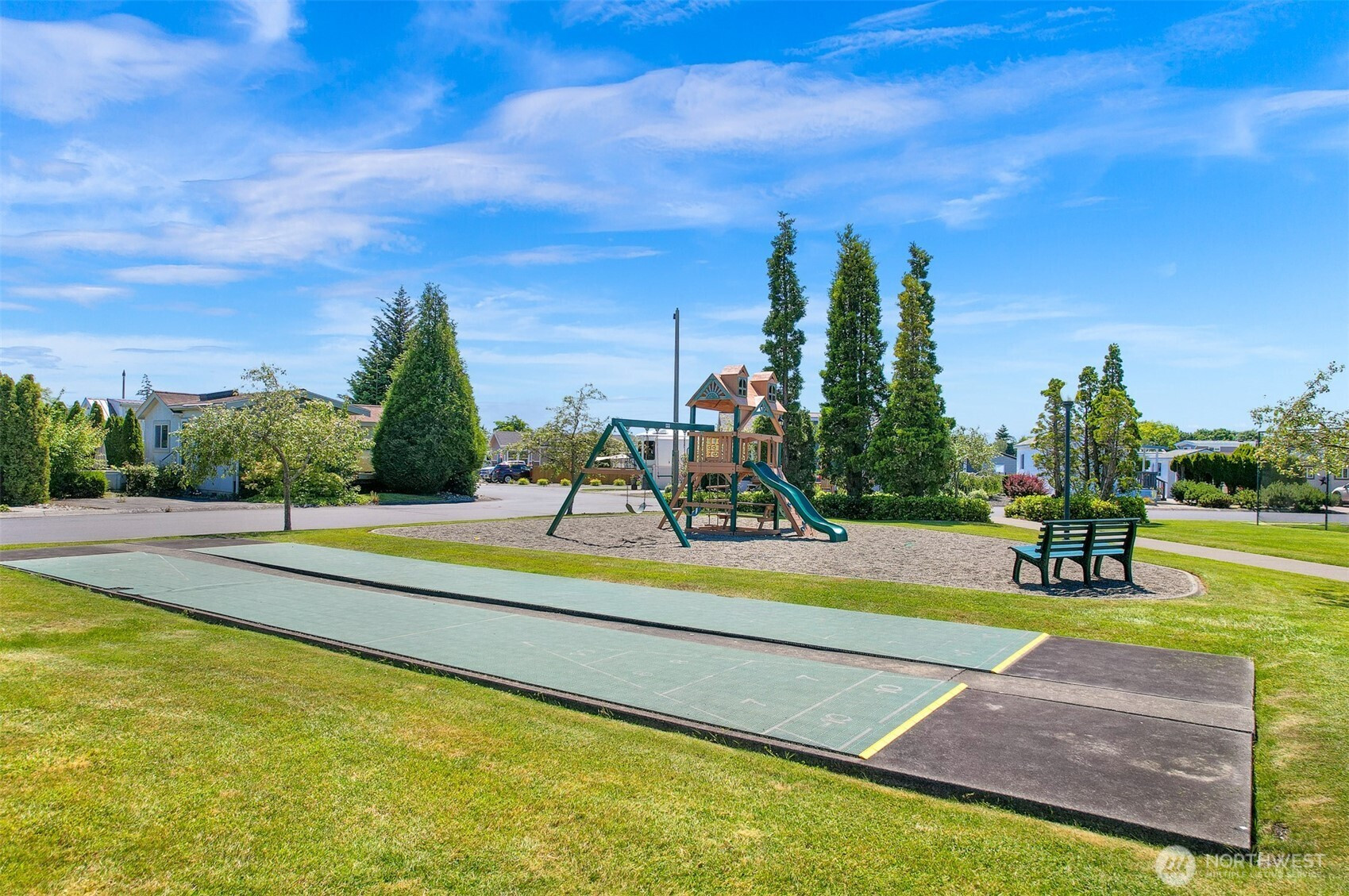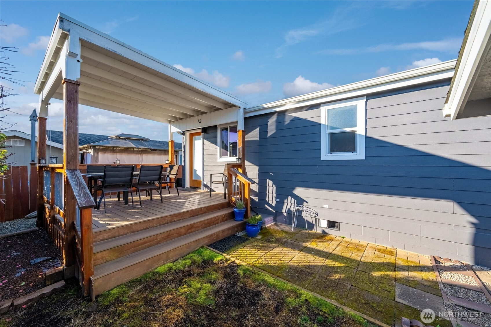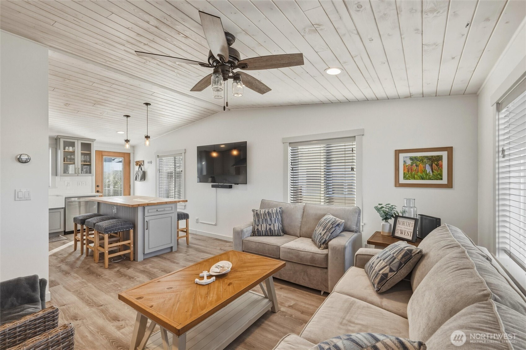 Fantastic opportunity to own this immaculate, fully renovated vacation home located in the popular Latitude 49. You own your land in this gated neighborhood, and can enjoy the amazing amenities of the outdoor swimming pool, clubhouse, sports courts, and its just a short walk or bike ride to the beach! This turn key property has been meticulously updated with a new roof, exterior paint, furnace, and hot water tank. New LVP flooring throughout and interior paint, doors & trim. You'll love the open floor plan with vaulted tongue and groove wood ceilings giving it that beachy vibe. The kitchen has beautiful cabinets & a mixture of quartz & wood slab countertops. Kitchen Island with an eating bar, new sink and updated stainless appliances. The fully updated main bathroom features a tiled walk-in shower & new vanity. The primary bedroom is spacious enough for a king bed and has an attached half bathroom. The hallway closet is set up with hook-ups for a washer & dryer. Venture outside to the private fully fenced backyard that has an amazing covered deck area with composite decking. Enjoy BBQing and relaxing all year. This home is being sold fully furnished with all brand new furniture!! There is nothing left to do to this home for you to start enjoying the beatiful Birch Bay life! This is a 184 day lot and can be used anytime of the year up to 184 days. Low HOA dues of only $130 per month. This is truly a must see!