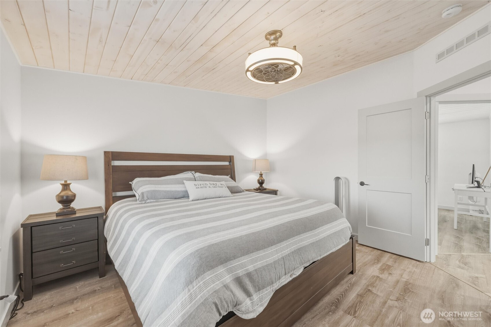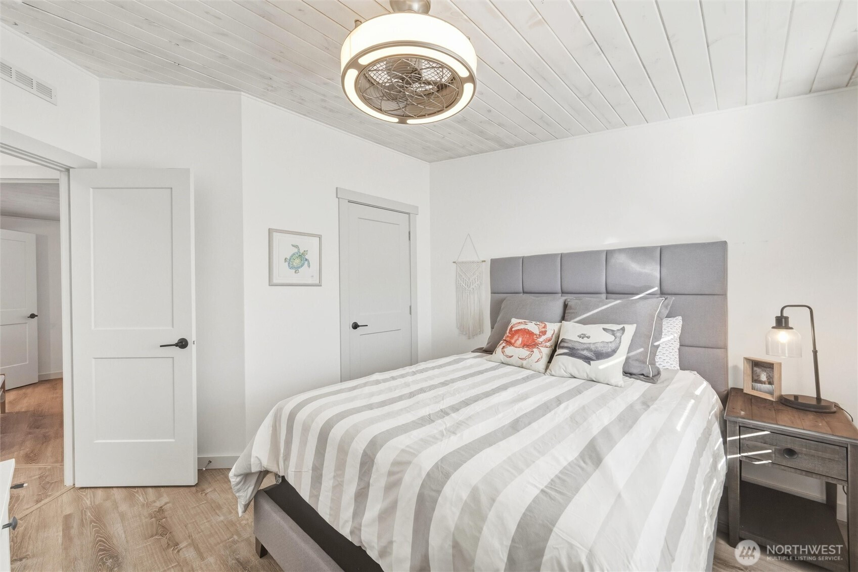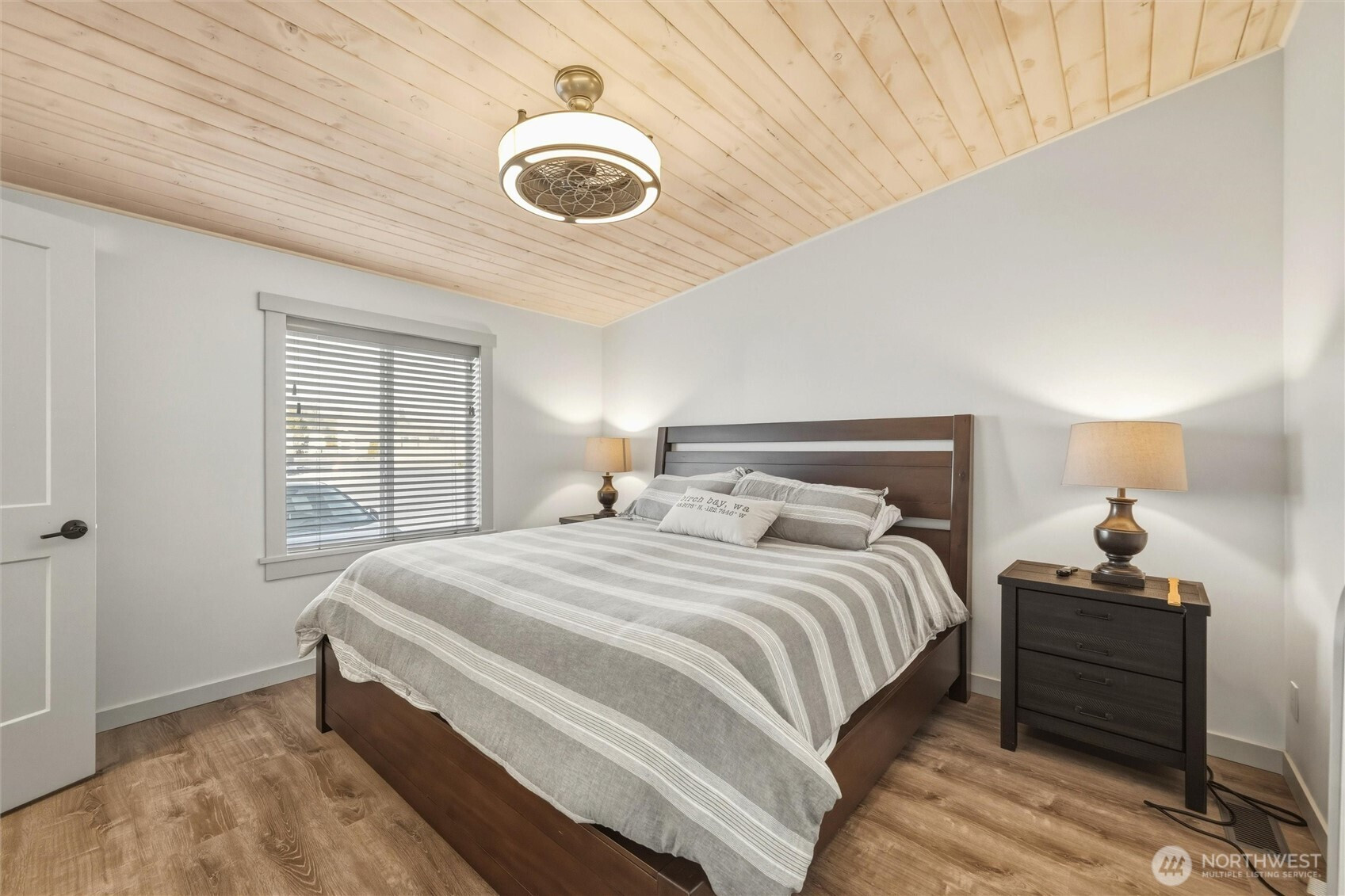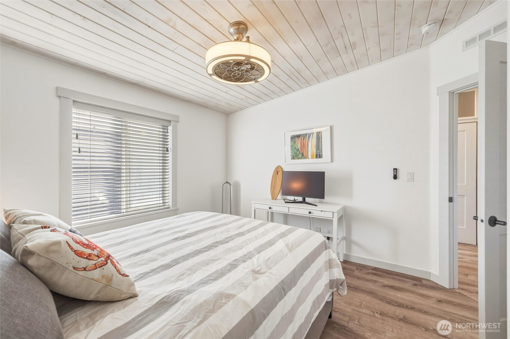 Fantastic opportunity to own this immaculate, fully renovated vacation home located in the popular Latitude 49. You own your land in this gated neighborhood, and can enjoy the amazing amenities of the outdoor swimming pool, clubhouse, sports courts, and its just a short walk or bike ride to the beach! This turn key property has been meticulously updated with a new roof, exterior paint, furnace, and hot water tank. New LVP flooring throughout and interior paint, doors & trim. You'll love the open floor plan with vaulted tongue and groove wood ceilings giving it that beachy vibe. The kitchen has beautiful cabinets & a mixture of quartz & wood slab countertops. Kitchen Island with an eating bar, new sink and updated stainless appliances. The fully updated main bathroom features a tiled walk-in shower & new vanity. The primary bedroom is spacious enough for a king bed and has an attached half bathroom. The hallway closet is set up with hook-ups for a washer & dryer. Venture outside to the private fully fenced backyard that has an amazing covered deck area with composite decking. Enjoy BBQing and relaxing all year. This home is being sold fully furnished with all brand new furniture!! There is nothing left to do to this home for you to start enjoying the beatiful Birch Bay life! This is a 184 day lot and can be used anytime of the year up to 184 days. Low HOA dues of only $130 per month. This is truly a must see!