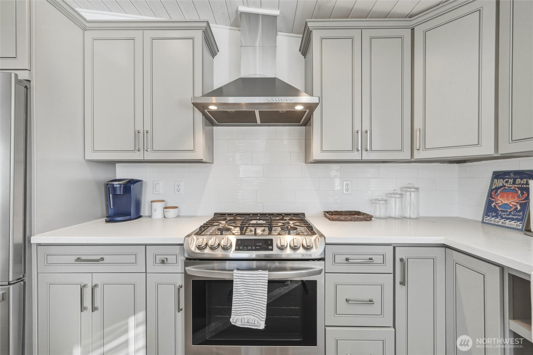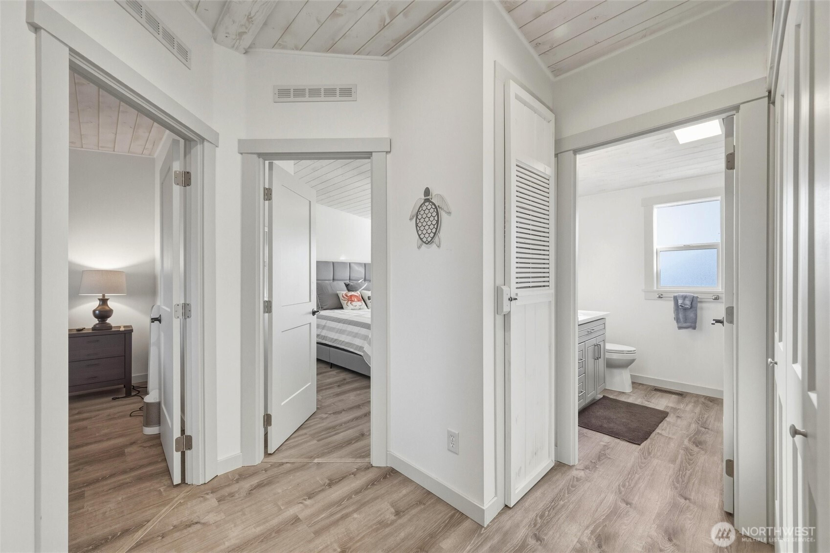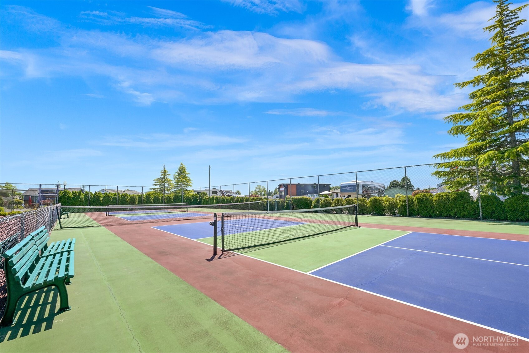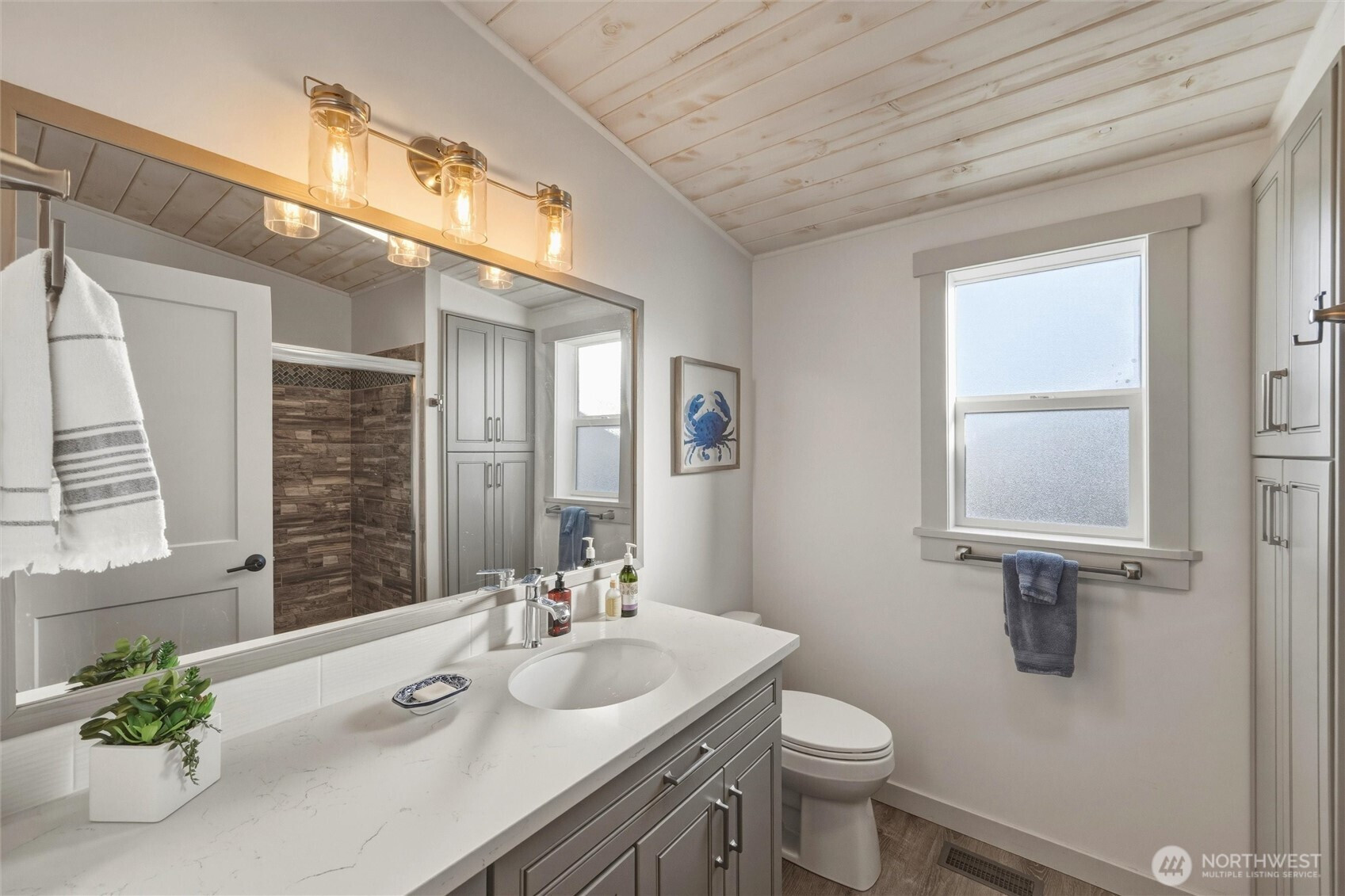 Fantastic opportunity to own this immaculate, fully renovated vacation home located in the popular Latitude 49. You own your land in this gated neighborhood, and can enjoy the amazing amenities of the outdoor swimming pool, clubhouse, sports courts, and its just a short walk or bike ride to the beach! This turn key property has been meticulously updated with a new roof, exterior paint, furnace, and hot water tank. New LVP flooring throughout and interior paint, doors & trim. You'll love the open floor plan with vaulted tongue and groove wood ceilings giving it that beachy vibe. The kitchen has beautiful cabinets & a mixture of quartz & wood slab countertops. Kitchen Island with an eating bar, new sink and updated stainless appliances. The fully updated main bathroom features a tiled walk-in shower & new vanity. The primary bedroom is spacious enough for a king bed and has an attached half bathroom. The hallway closet is set up with hook-ups for a washer & dryer. Venture outside to the private fully fenced backyard that has an amazing covered deck area with composite decking. Enjoy BBQing and relaxing all year. This home is being sold fully furnished with all brand new furniture!! There is nothing left to do to this home for you to start enjoying the beatiful Birch Bay life! This is a 184 day lot and can be used anytime of the year up to 184 days. Low HOA dues of only $130 per month. This is truly a must see!