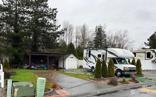 Spectacular & rare 180 day lot with gazebo and large storage shed. Conveniently located in the park. Bring your motor home or fifth wheel and enjoy the pool, club house, hot tub and exercise center. Latitude 49 is perfect for a weekend getaway to park and enjoy you RV or as a long term RV rental spot when not in use. Park has gated security, is close to the beach, I-5 and the US/CDN border.