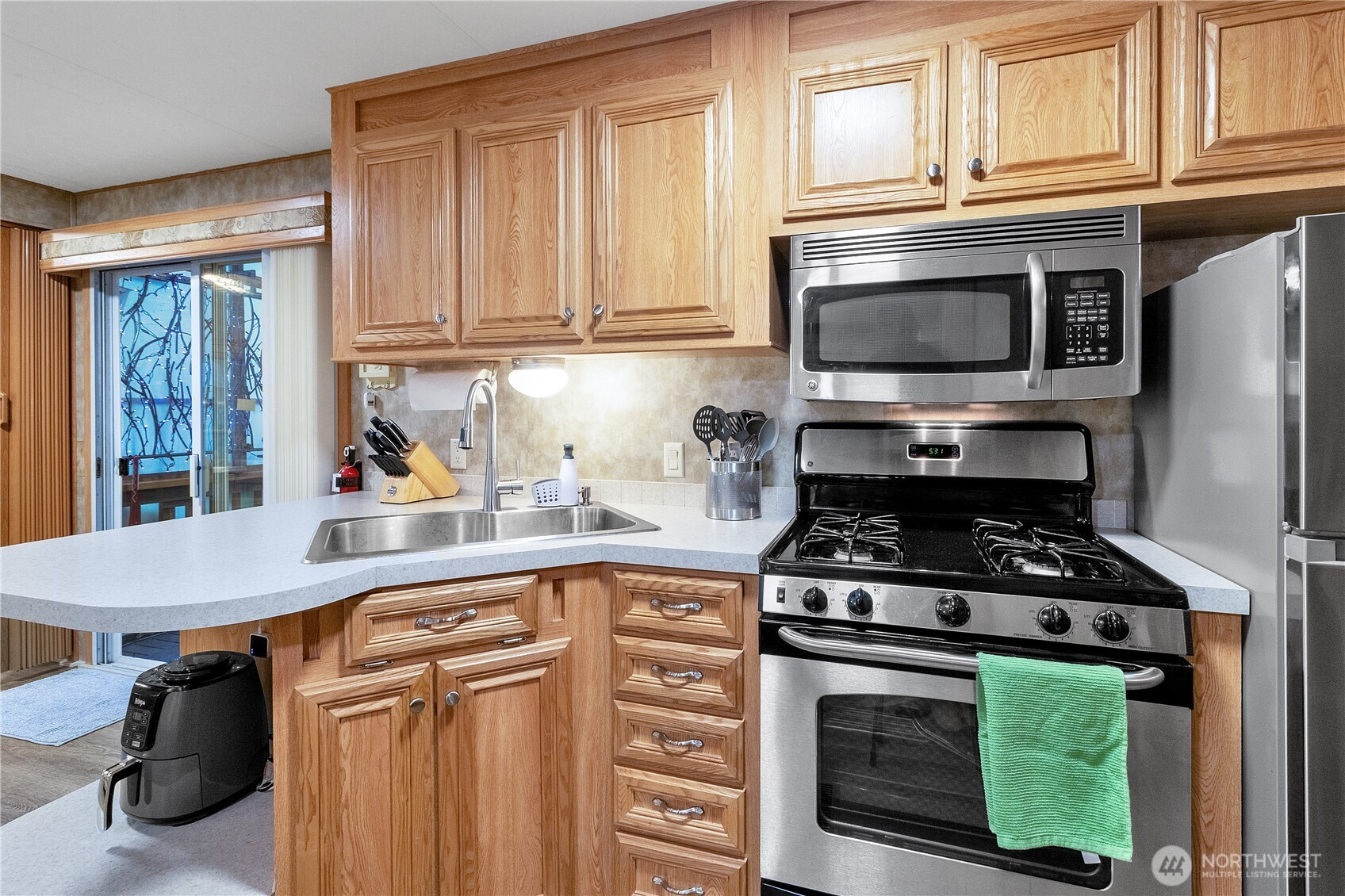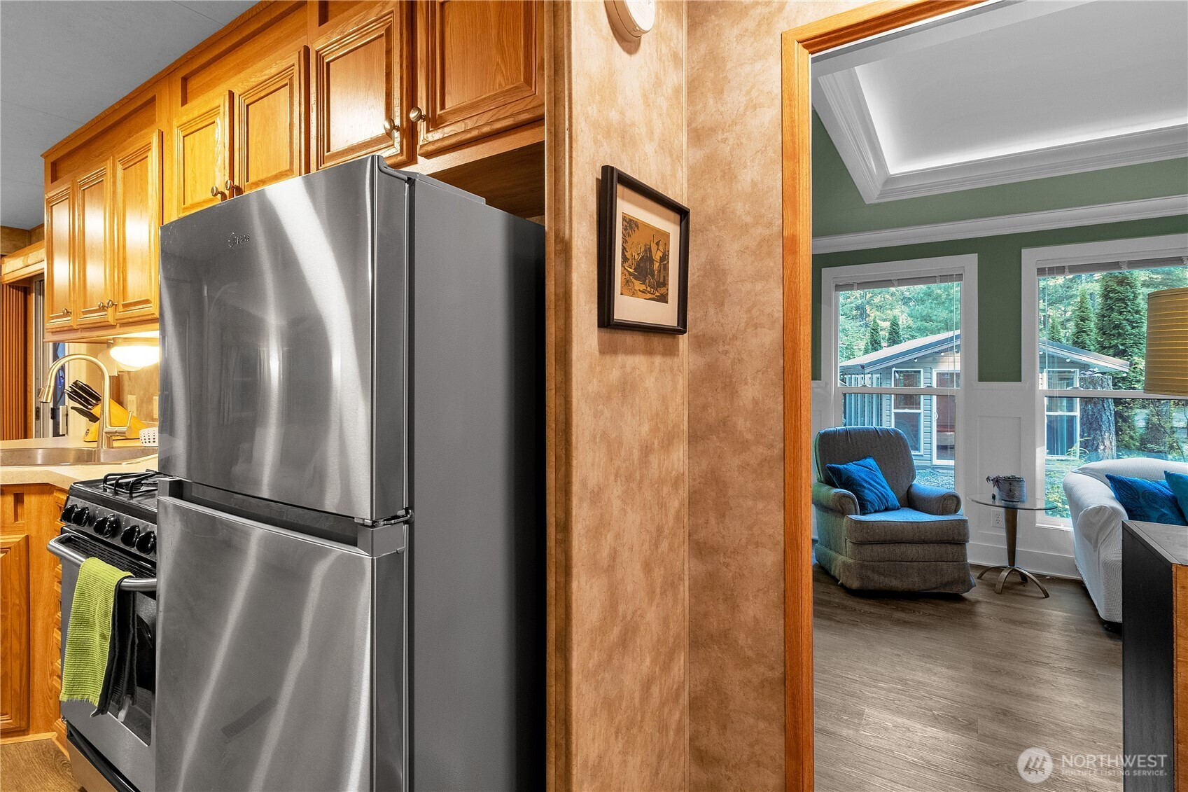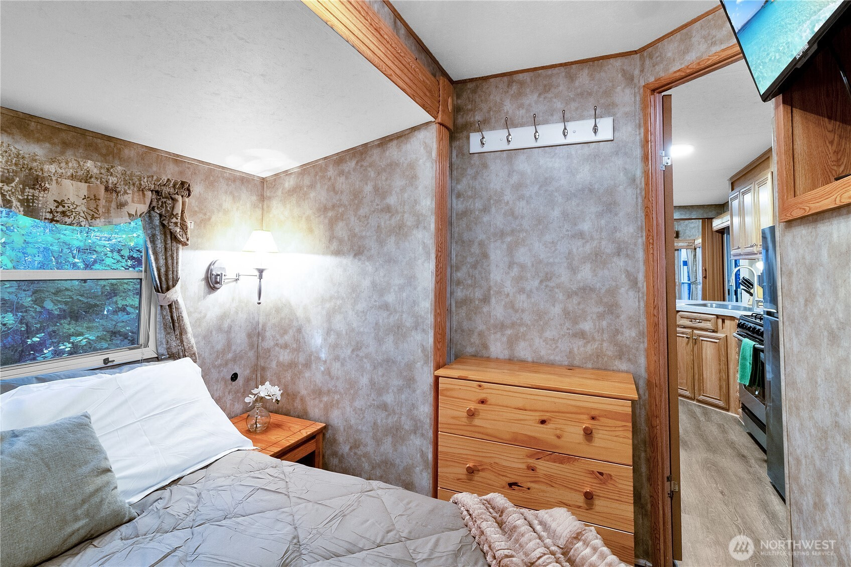 Backing greenbelt for extra privacy, this well cared-for park model has room to spread out and relax. The large add-a-room features wainscoting and a cove ceiling, and the freshly updated gazebo (new paint and flooring) gives you even more space to hang out. There’s also a storage shed for the practical stuff. Inside you’ll find full-size stainless appliances, a bathroom with tub/shower combo, and a spacious dining area that actually works for gathering. The partially enclosed deck with wood stove makes it easy to enjoy in cooler months, and outside you’ve got a fire pit plus umbrella-covered seating and swing chairs for long summer evenings. It comes thoughtfully furnished and comfortably sleeps 8+, making it a great adventure home base year-round. Community amenities include pools, hot tub, sauna, tennis & basketball, 24/7 security & more! Occupancy limited to 120/days per year. No rentals.
