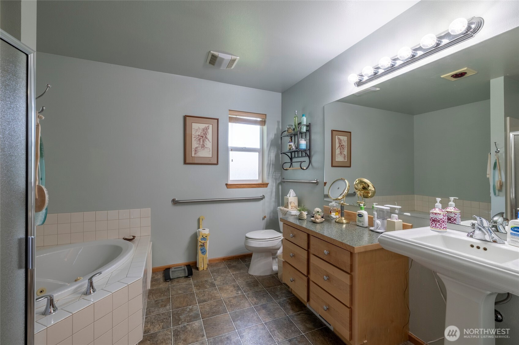 Beautiful one-owner custom home in desirable Baycrest! Built in 2005, this thoughtfully designed 4-bed, 2.5-bath home offers a main-floor primary suite with jetted tub, walk-in closet, and full wheelchair accessibility—36” doorways and a ramp from the 3-car garage. Enjoy an inviting living room with gas fireplace, open dining area, and spacious kitchen filled with natural light and ample storage. Upstairs features three bedrooms, a full bath, and a large bonus/rec room perfect for entertainment or hobbies. The fully fenced backyard includes a patio, manicured landscaping, and space for gardening or play. Located near Birch Bay beaches, state park, local shops, and well-kept neighborhood that shows pride of ownership throughout!