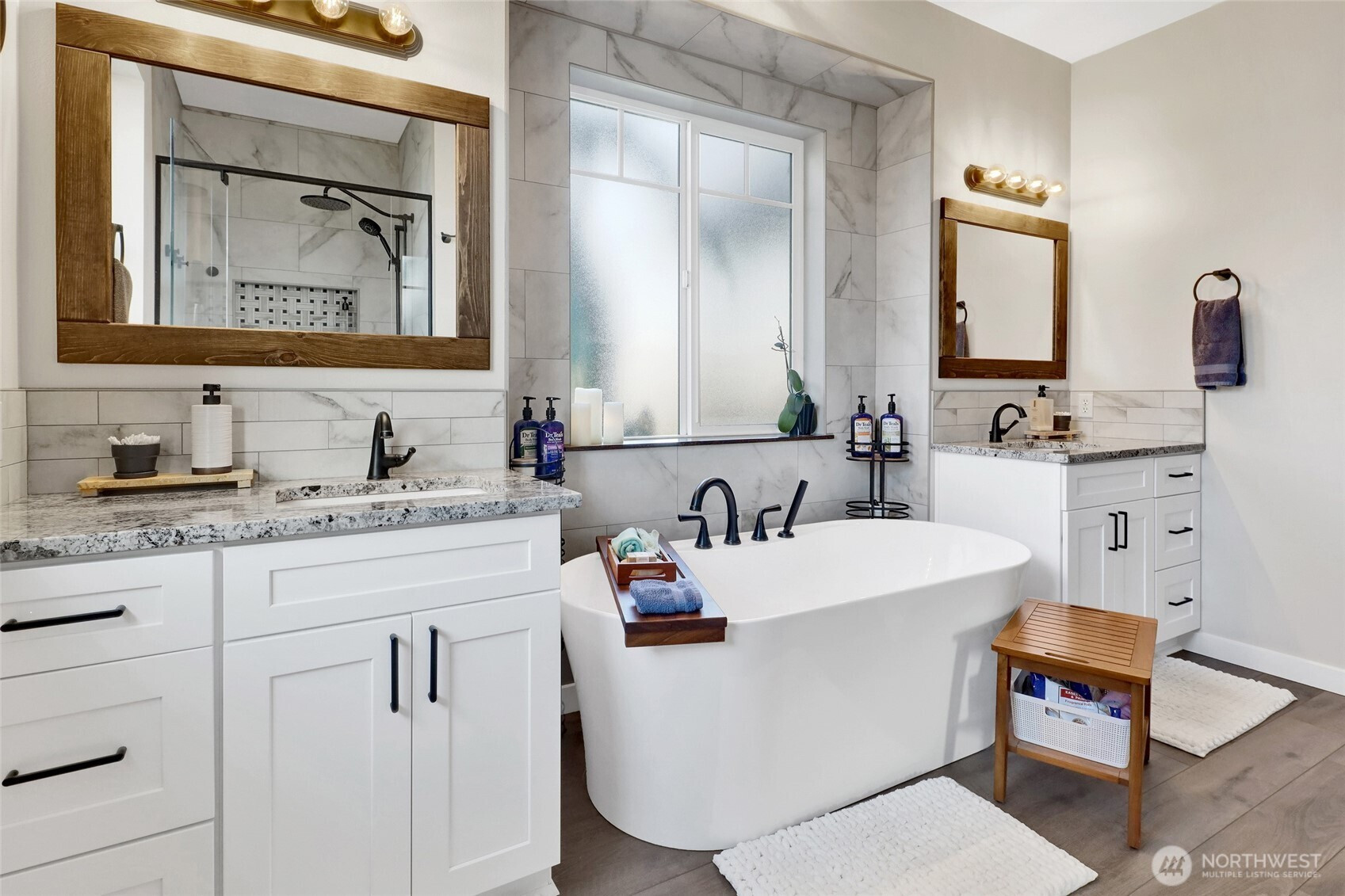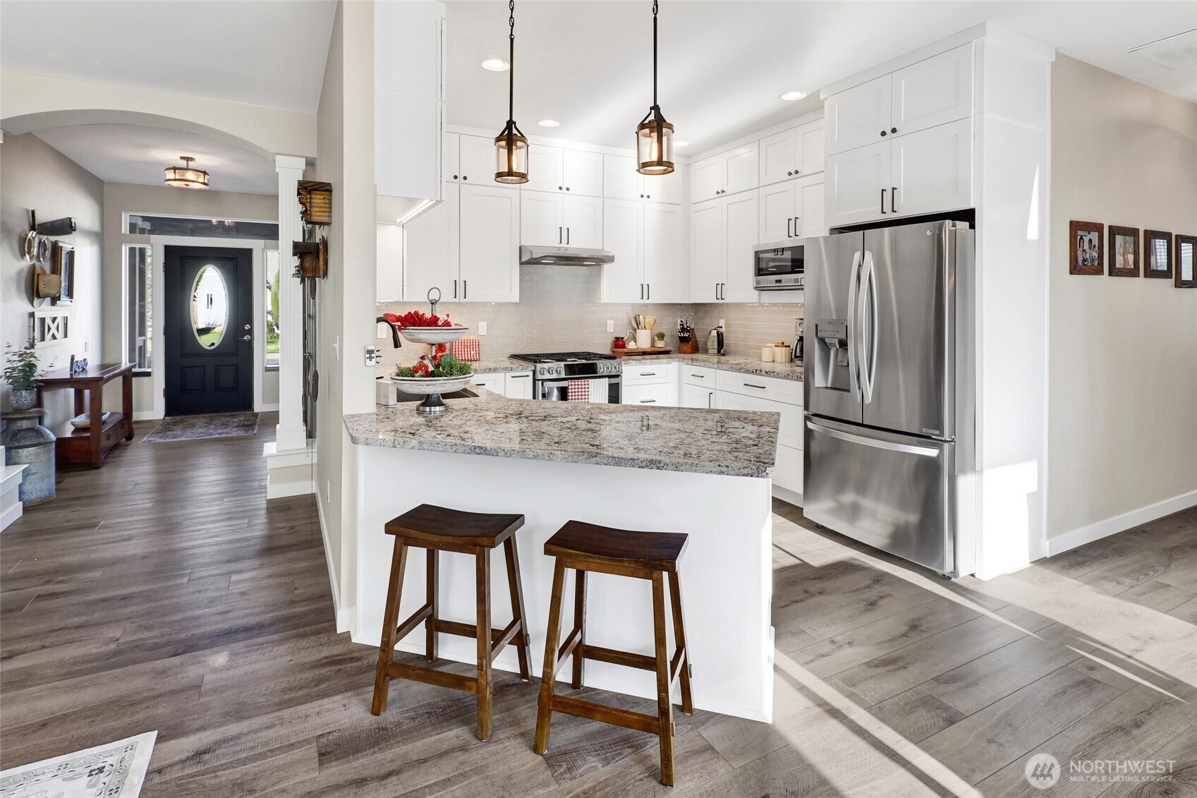 Located in desirable Bay Crest, just minutes from the beaches and charm of Birch Bay, this beautifully remodeled home offers the perfect blend of coastal lifestyle and turnkey comfort. Birch Bay has been a beloved vacation destination for more than a century—known for miles of pristine shoreline, endless water activities, vibrant small-town charm, and some of the most breathtaking sunsets in the Northwest. Built in 2004, this 4-bedroom, 2.5-bath, 1,934 sq ft home has been fully updated from top to bottom. The stunning new kitchen anchors the home, complemented by a new fireplace, fresh interior paint, modern lighting, all-new LVP flooring, updated trim, and custom window treatments. Highly rated Nevaska slab granite is featured throughout the home, with the exception of the butcher-block laundry room surface. The primary suite has been completely reimagined with a spa-like en suite featuring a soaking tub, dual vanities, and a beautifully tiled custom shower. A desirable split-bedroom floor plan provides privacy, while the front den/home office—accessed through elegant glass French doors—adds flexibility for today’s lifestyle. Outside, enjoy a partially fenced yard, spacious patio, fresh exterior paint, and thoughtfully designed landscape beds framed with 6x6 borders. Impeccably updated and exceptionally maintained, this is one of the nicest homes in the neighborhood—a true must-see. .
