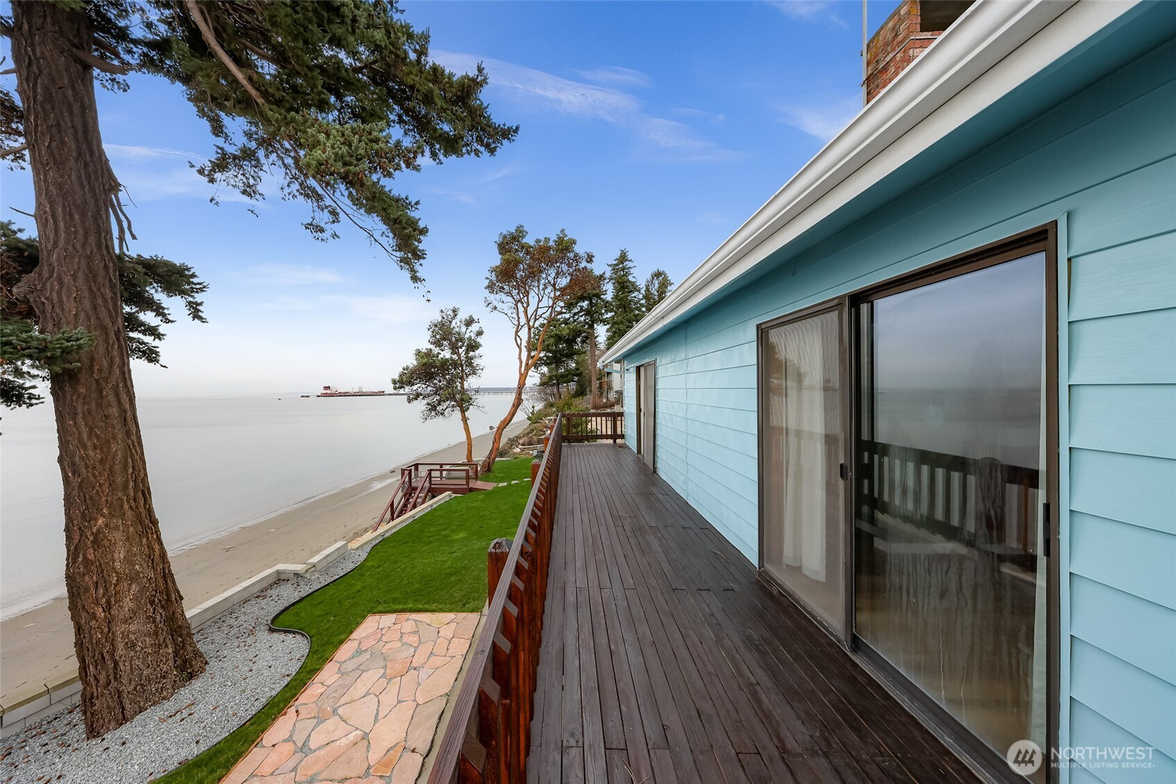 Welcome to 4877 Maple Ln Waterfront home perched on a mid-bluff setting. This property is considered the Hamptons of PNW! W/ a fresh seawall & patio area you can enjoy Sunsets all year long. The interior layout features a large living area, dining space, & kitchen. This floorplan offers entertaining space for gatherings w/ large windows for natural light. Upstairs are the bedrooms with plenty of space with 2 bedrooms offering you the magnificent views w/ private decks. With convenient access to parks, local shops, and mins away from Bham. This location combines tranquility with everyday convenience. A rare opportunity to embrace waterfront living in a peaceful Ferndale setting, offering a unique blend of comfort, scenery, and coastal charm.