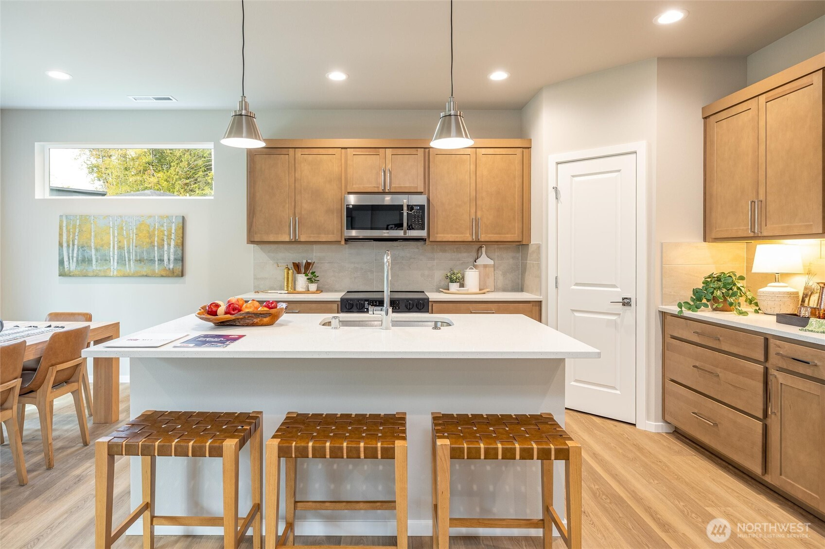 MTT Homes Last Chance in East Maple Ridge Division IV. Fantastic corner lot that back to natural areas. The 1710 Rambler has spacious Great Room featuring a large Island Kitchen with, stainless appliances, Quartz Counter tops, with Tile backsplash, walk-in pantry. Dining area leads to outdoor, private covered patio to enjoy the sunset over Drayton Harbor. Large Primary bedroom and bath with Quartz counters and walk-in shower and large closet. The two additional bedrooms are separate from Primary providing privacy. Covered front porch, whole home forced air with A/C. Close to downtown Blaine and Canada for shopping, dining, golf, boating and all recreational activities. Special Financing USDA Zero down Builder/Lender funded 2/1 Buy down