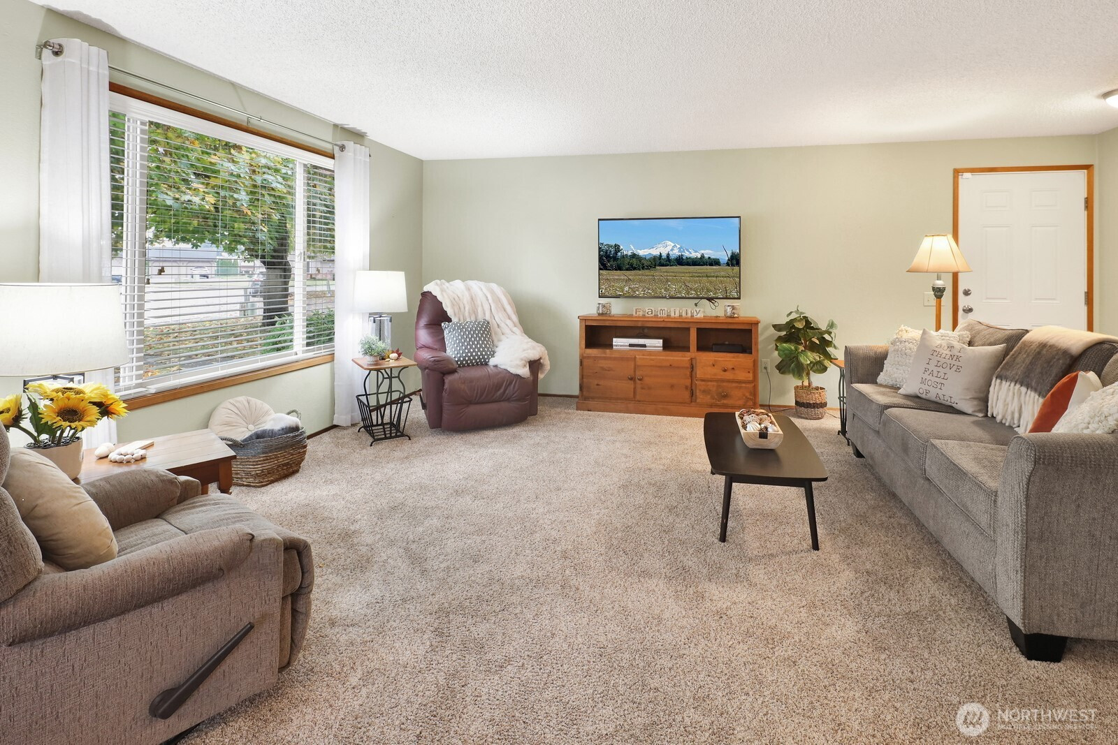 Welcome home!! Tucked away on a quiet, tree-lined cul-de-sac on Lynden’s desirable west side, this inviting 2-bedroom, 1-bath condo offers comfort, convenience, and charm. Built in 1984 and carefully maintained by just two long-term owners, it reflects pride of ownership inside and out. The open floor plan is filled with natural light from large windows shaded by mature trees, keeping the home cool and bright through the seasons. Enjoy the comfort of central A/C, the practicality of an in-unit laundry, located in the bathroom, and the bonus of a 1-car garage. A rare find—ideal for first-time buyers, downsizers, or anyone seeking a peaceful, affordable place to call home in a lovely neighborhood setting.