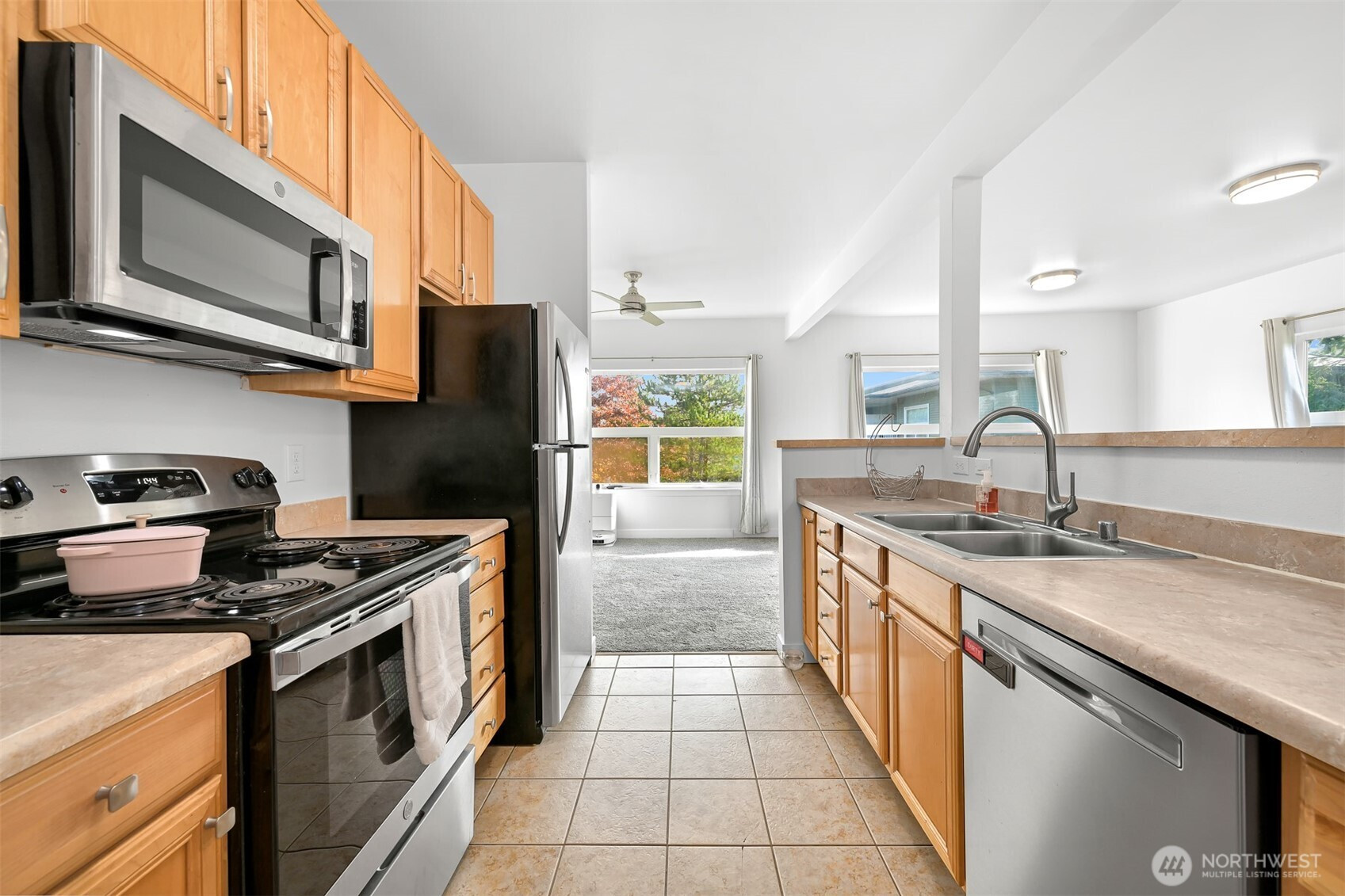 Spacious and light-filled single-level condo perfectly situated on the second floor! This inviting home features an open-concept layout with 3 generous bedrooms and 2 full baths. The kitchen shines with stainless steel appliances and ample counter space, flowing seamlessly into the dining and living areas—ideal for everyday living or entertaining. Step out to your private balcony to enjoy morning coffee or evening sunsets. The roomy primary suite includes an ensuite bath for added comfort. Conveniently located near shopping, restaurants, parks, and amenities, this condo offers easy living in a prime location!