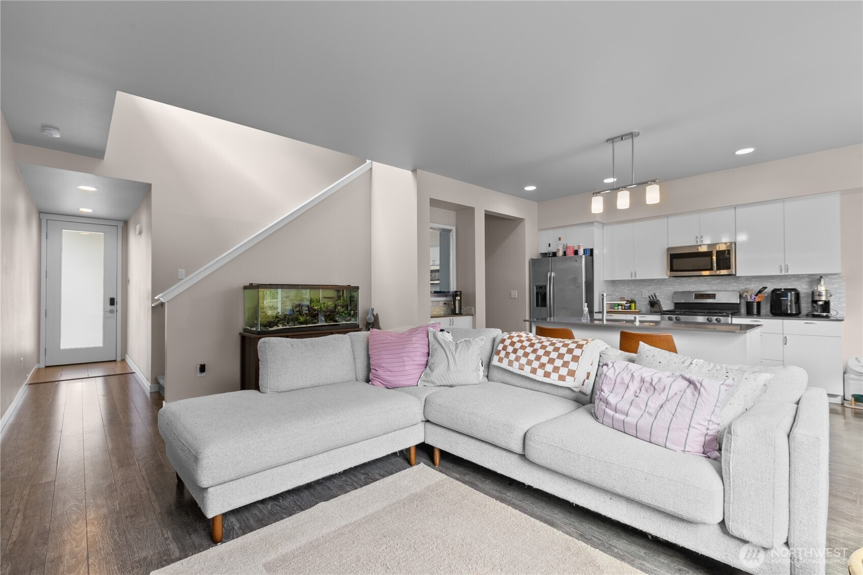Discover Modern Green Living at 517 Vista Springs Pl. in Bellingham! Welcome home to this beautifully designed 3-bed, 3-bath residence in Cordata’s sought-after Built Green solar community. Tucked away in a quiet cul-de-sac, this energy-efficient home offers comfort, style, & thoughtful choices. From the moment you enter, you’ll appreciate the bright, open layout featuring 9-foot ceilings in the comfortable great room and laminate flooring. The bright kitchen shines w/ quartz counters, stainless steel appliances, and a gas stove for responsive cooking. A convenient guest bath and spacious garage complete the main level. Upstairs, the primary suite boasts a walk-in closet & private ensuite bathroom. Two additional bedrooms share a full bath, while a convenient laundry area makes daily living effortless. Outside, enjoy a fully fenced backyard—perfect for pets, play, or gardening—plus easy access to community green spaces and a park. Located in one of Bellingham’s most convenient neighborhoods, you’re only a 5-minute drive to Costco, Target, and everyday shopping, and a quick bike ride to Cordata Park with walking trails, basketball courts, and pickleball courts. Whether you’re commuting, raising a family, retired, or love an active lifestyle, this move-in-ready home delivers the perfect blend of sustainability and modern comfort. Energy-efficient. Thoughtfully upgraded. Lifestyle perfect. Come experience sustainability and beauty.