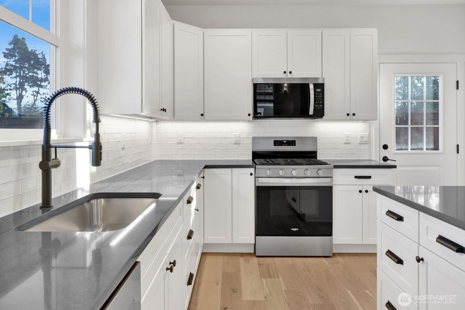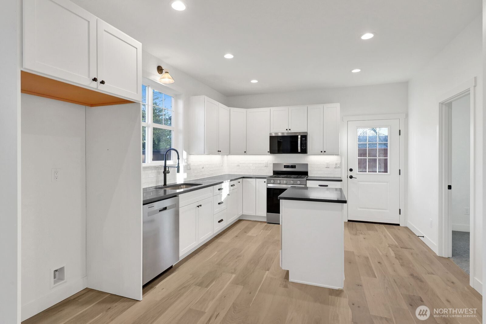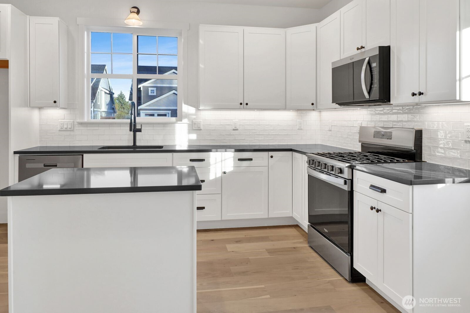 Welcome to your brand-new urban sanctuary in the desirable Sunset Commons neighborhood! This 2-bedroom, 1-bath cottage with an upper 110sqft loft offers bright, open-concept living with sleek modern finishes and abundant natural light. The kitchen impresses with quartz countertops, a full-height custom tile backsplash, and stainless steel appliances. The bathroom features quartz countertops and a fully tiled tub/shower combo. Additional highlights include a private oversized garage with a loft for extra storage. Perfect for those seeking a simpler, modern lifestyle, this charming cottage is close to I-5 and within walking distance to downtown Bellingham in the sunny Sunnyland neighborhood.