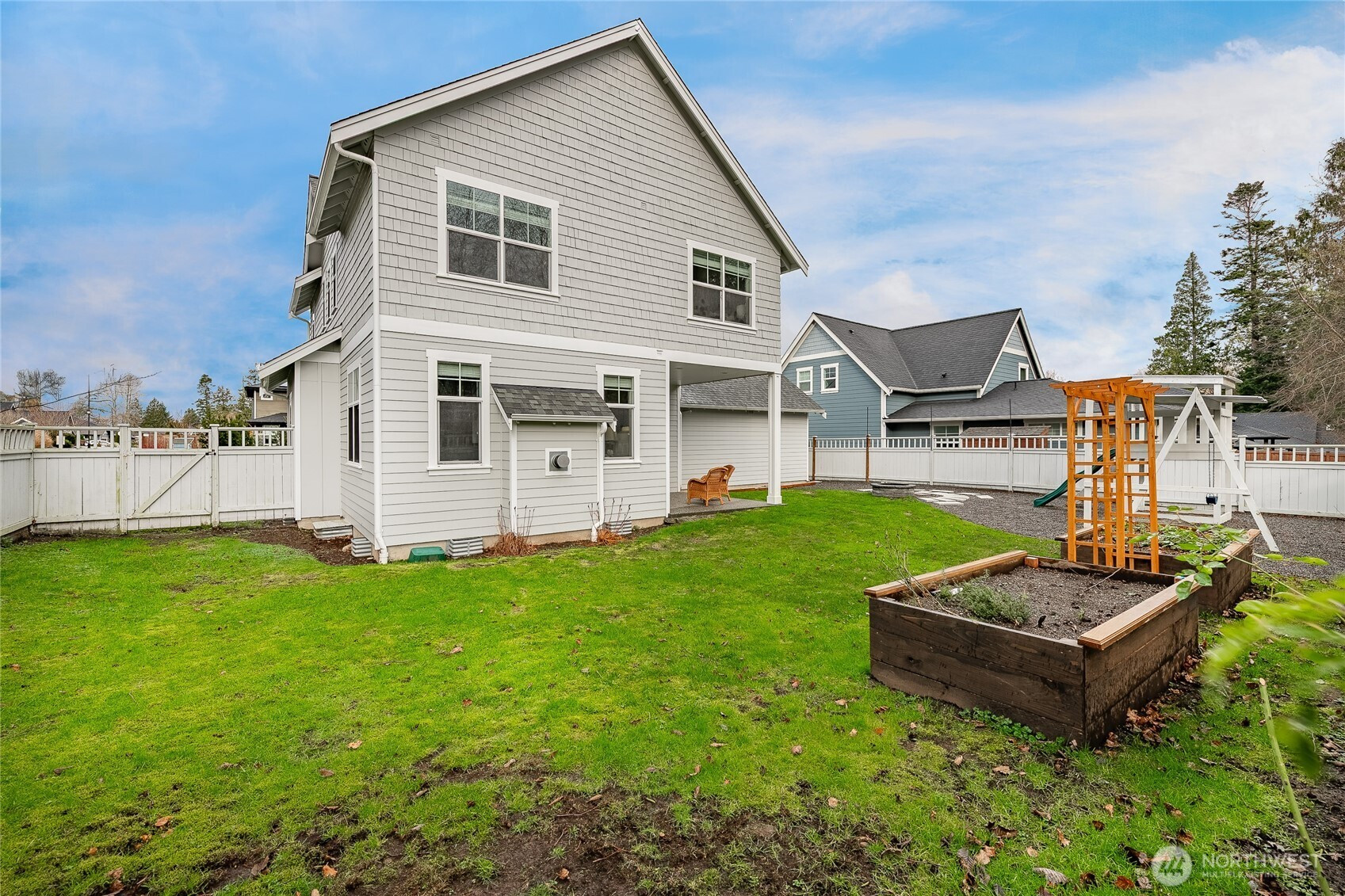 Located in the heart of Salish Breeze, a quiet coastal neighborhood known for its peaceful streets & prime location--within walking distance to the Beach and State park, this warm & welcoming 3 bed, 2.5 bath home offers the perfect blend of comfort & charm. This home offers hardwood floors, granite counters, ship-lap accents, and a classic farmhouse sink, creating timeless style throughout. Fully fenced with a native green belt as your neighbor. The main level includes a flexible office/den & inviting living space with a cozy fireplace. The spacious primary suite features a fireplace, soaking tub, private deck, & walk-in closet. The upstairs alcove serves as a library or office. Easy access to I-5--excellent county location. A must see!