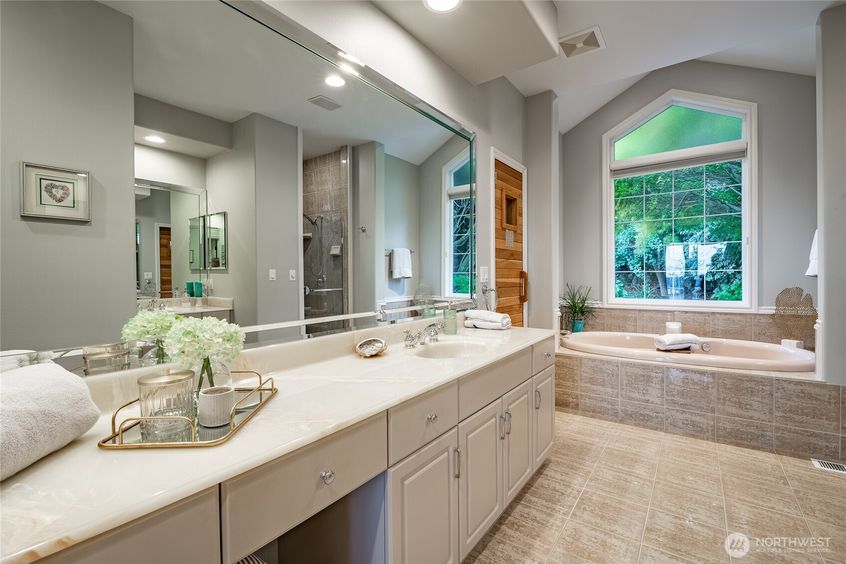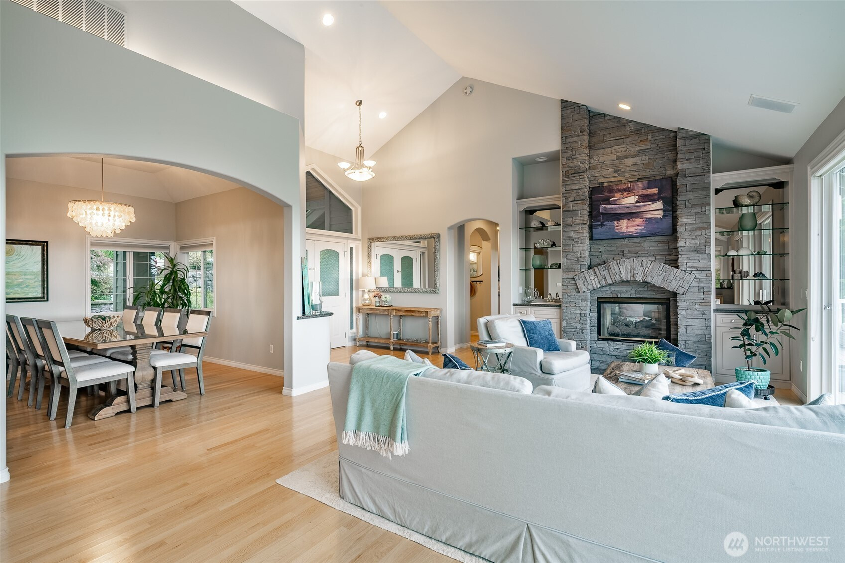 Perched above Drayton Harbor in the coveted Semiahmoo Resort Community, a premier master-planned Arnold Palmer golf course neighborhood, this stunning custom home captures sweeping city, water, & snow-capped mountain views while offering the rare combination of gated security & unmatched seclusion. One of the best features of this home is its ultra-privacy within the St. Andrew’s Green gated neighborhood & unparalleled view. Enjoy miles of scenic walking trails, tennis & pickleball courts, gym, & a private marina accommodating boats up to 60 feet, all just moments from your door. Designed for effortless main-floor living, the home features a luxurious primary suite with spa-inspired bath, sauna, & expansive dual organized closets, along with a dedicated office warmed by its own fireplace & laundry room with sink, drying area & large dog bath. The vaulted living room showcases breathtaking views & a dramatic stone fireplace, seamlessly connecting to a spacious dining room, morning nook, & chef’s kitchen complete with walk-in pantry, truly ideal for entertaining. The refinished lower level offers exceptional flexibility with two fully appointed guest suites with private baths, a generous bonus room with second kitchen, abundant storage, & an additional office, perfect for multi-generational living, guests, or hobbies. Complete this move-in ready retreat, thoughtfully designed to impress, yet truly relaxing at every turn.