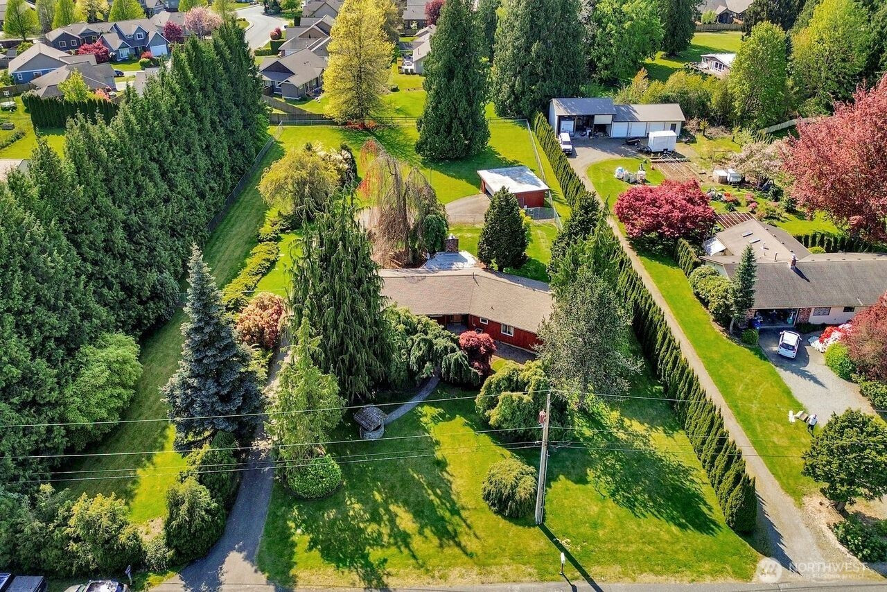 Well-maintained 3-bedroom, 2-bath rambler offering 2,514 sq ft on a private, fully fenced 1.45-acre lot. This rare property showcases beautifully mature landscaping and well-established grounds that create a serene setting and true gardener’s paradise. Tucked away for privacy, the expansive yard offers endless opportunities to enjoy nature, entertain, or further enhance the landscape. The home has been lovingly cared for and is in excellent condition, featuring key updates including a newer roof, newer heat pump with A/C, and a GenTran whole-house generator for added peace of mind. Inside, you’ll find a spacious primary suite with a walk-in closet, walk-in shower, and its own sauna. The living area opens to a large patio overlooking the stunning backyard—perfect for relaxing or entertaining year-round. Off the kitchen is a unique built-in bar area, ideal for entertaining and gatherings. A large detached garage, ample RV parking, and plenty of room for all your toys complete the package. A rare blend of space, privacy, and natural surroundings with room to make it your own.