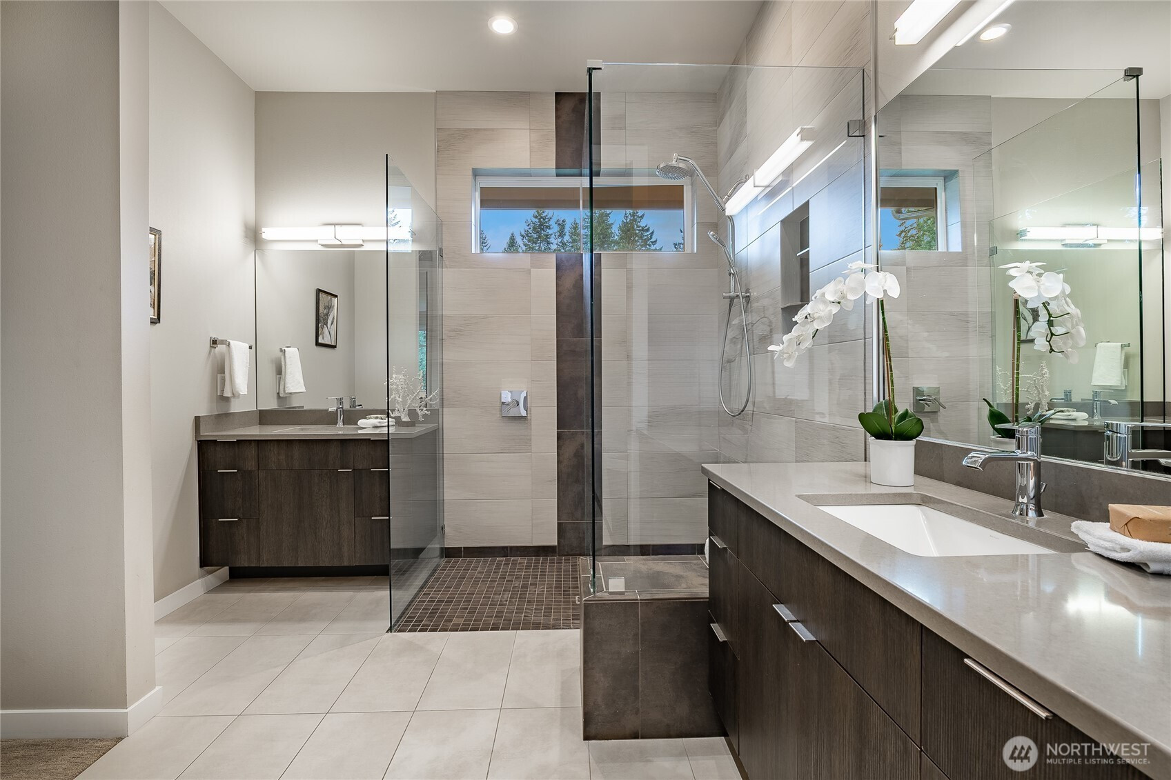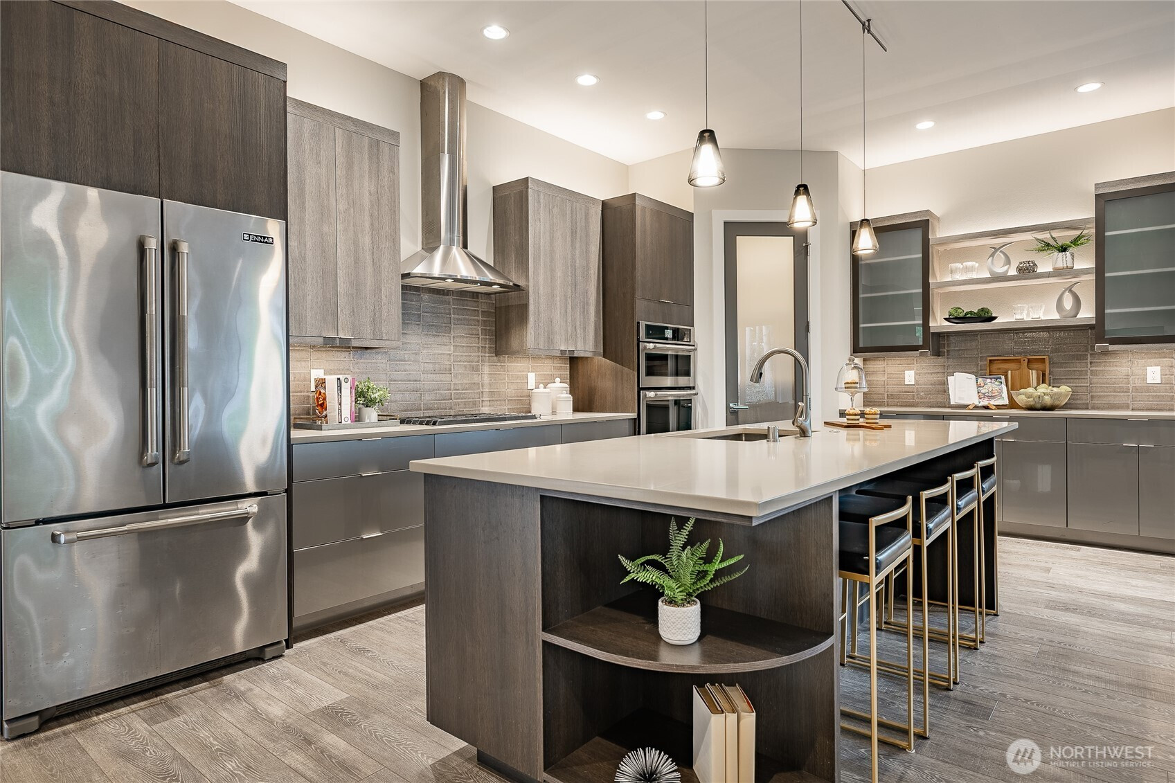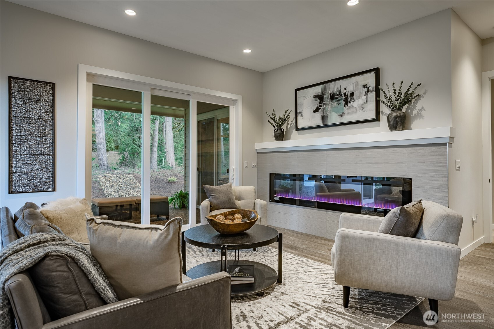 Welcome to easy, refined living in Carnoustie—one of Semiahmoo's most peaceful neighborhoods. This single-level home was designed with thoughtfulness at every turn, and it shows the moment you walk in. No steps anywhere—with wide hallways and a layout that just makes sense. Ten-foot ceilings & beautiful 8-foot glass doors -they bring in so much natural light and make moving between indoors & out feel effortless. The kitchen is where you'll want to spend your time. Sleek European style with quartz counters that run edge to edge, large island, soft-close cabinets, and a full JennAir Pro appliance suite. It's equal parts gorgeous and hardworking. Throughout the main living areas you'll find luxury vinyl plank flooring with radiant heat underneath. There's also discreet AC w/ individual room controls, meaning everyone gets their perfect temperature. The whole house stays quiet and comfortable year-round. Primary suite offers a curb less walk-in shower w/ multi-valve controls, two sinks, & dual custom closets designed for real storage. Ideal covered patio with a gas fireplace and BBQ hookup—perfect for unwinding while you take in your private backyard. The extras? Smart LED lighting, pre-wired speakers, custom built-in shelving in the den/office, great storage, and a tandem three-car garage with epoxy floors. This home doesn't waste an inch, and it lives every bit as well as it looks. If you've been searching for that perfect single-story in Semiahmoo, this might just be it.