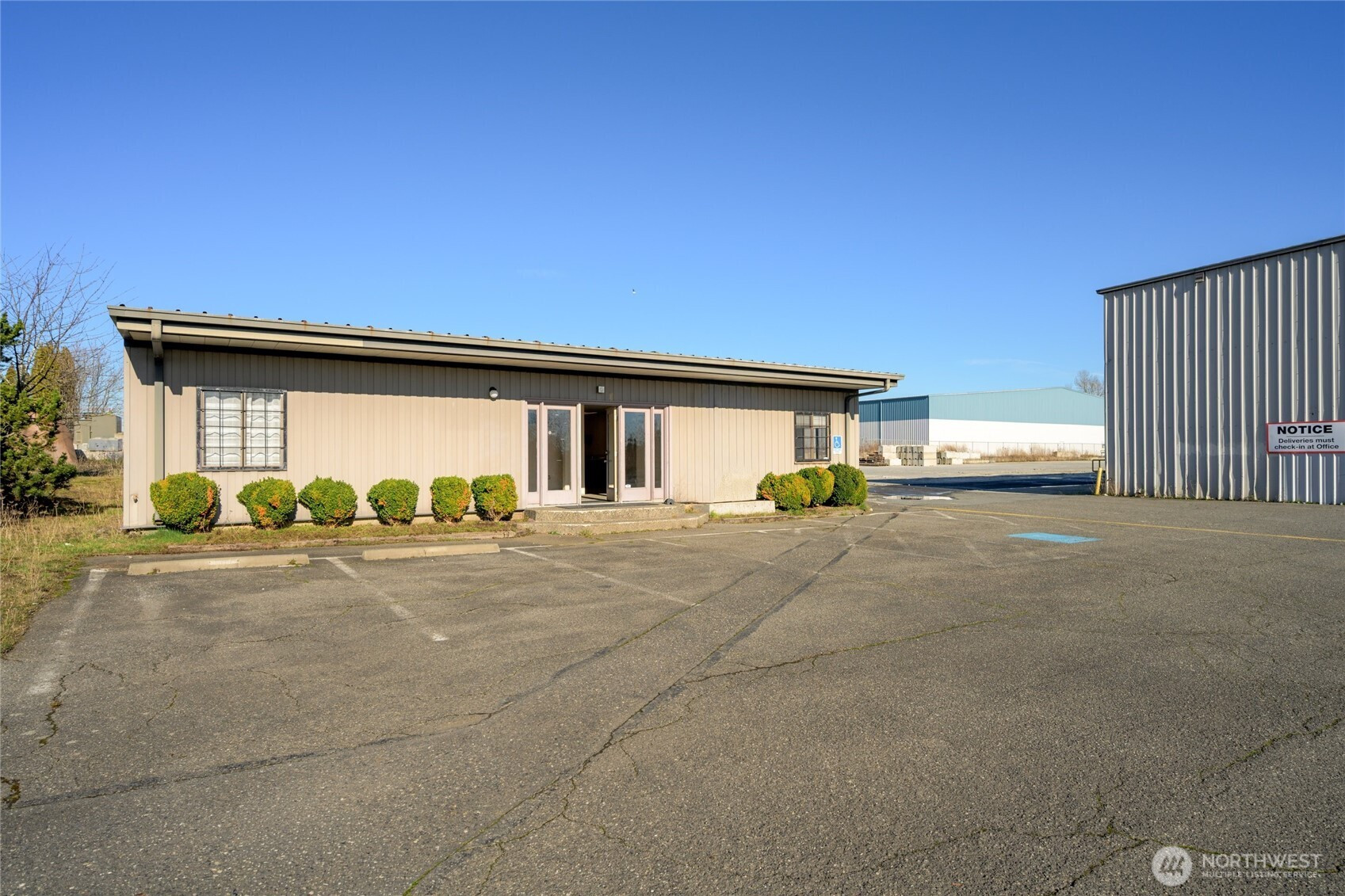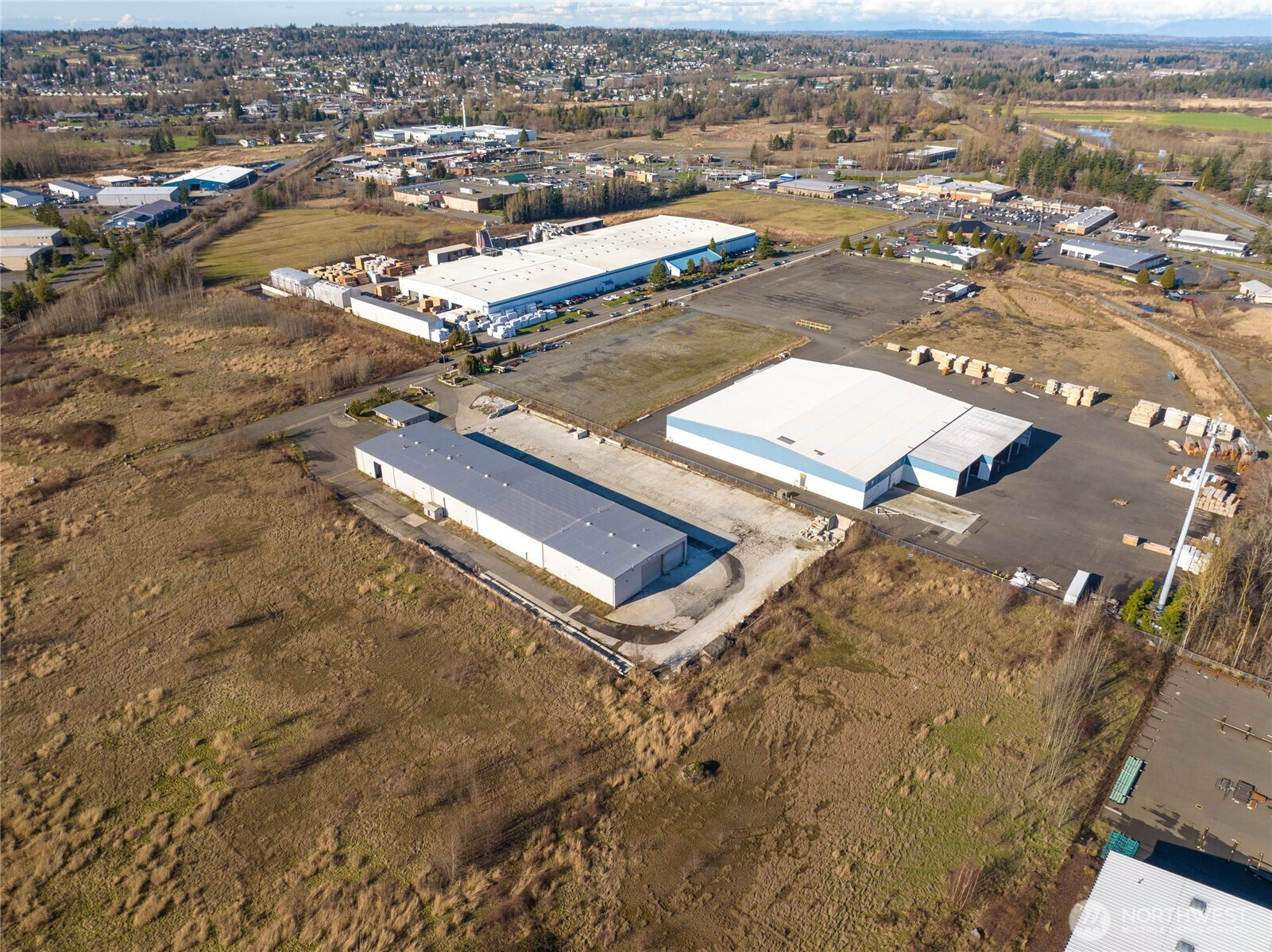 Prime industrial opportunity in Ferndale with immediate access to Interstate 5, ideally located between Seattle and Vancouver for efficient north–south distribution. The 3.1-acre site is fully improved with concrete and asphalt, offering ample space for truck circulation, equipment staging, and outdoor storage. The 26,000 SF building features 18-foot clear-span ceilings, multiple grade-level drive-in doors, 480V three-phase power, is heated, and includes a fire suppression system. Includes 1,500 SF of dedicated office space plus additional warehouse office/breakroom area. Ideal for owner-user or investment in a growing industrial corridor.