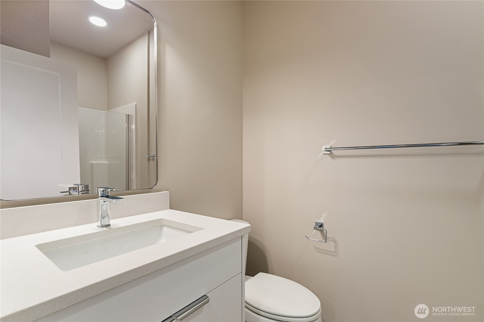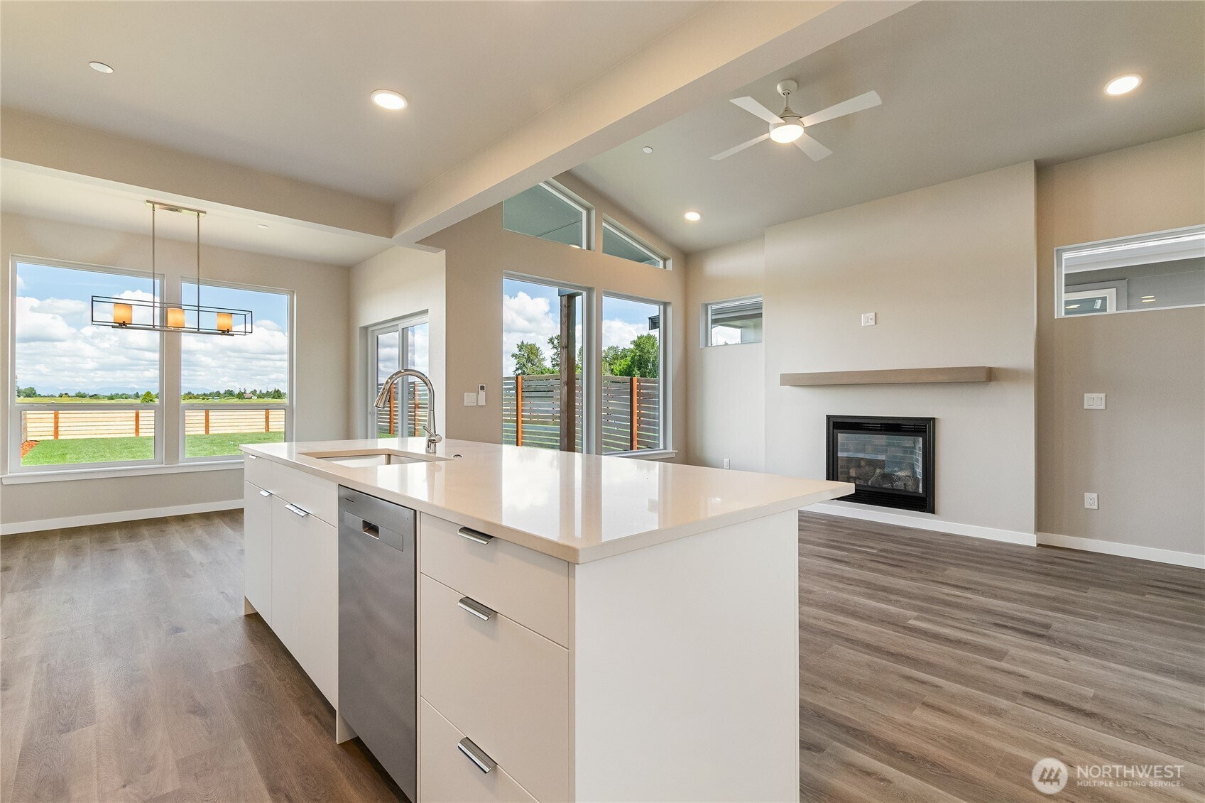Welcome to Northview 2 in Cordata, Bellingham's premier solar home community! This stunning 3-bedroom, 2-story contemporary home features an open and spacious floorplan, vaulted ceilings, and large windows that fill the space with natural light. Enjoy a custom kitchen with sleek quartz countertops, a primary suite with an ensuite boasting a double sink and walk-in closet, and a main-level bedroom for added convenience. Designed with sustainability in mind, this home includes efficient mini-split heat pumps with A/C, a large covered patio, a gas fireplace, and EV charger prewiring. Take in mountain and golf course views. Includes 2-car garage. Your dream home awaits—secure yours today!