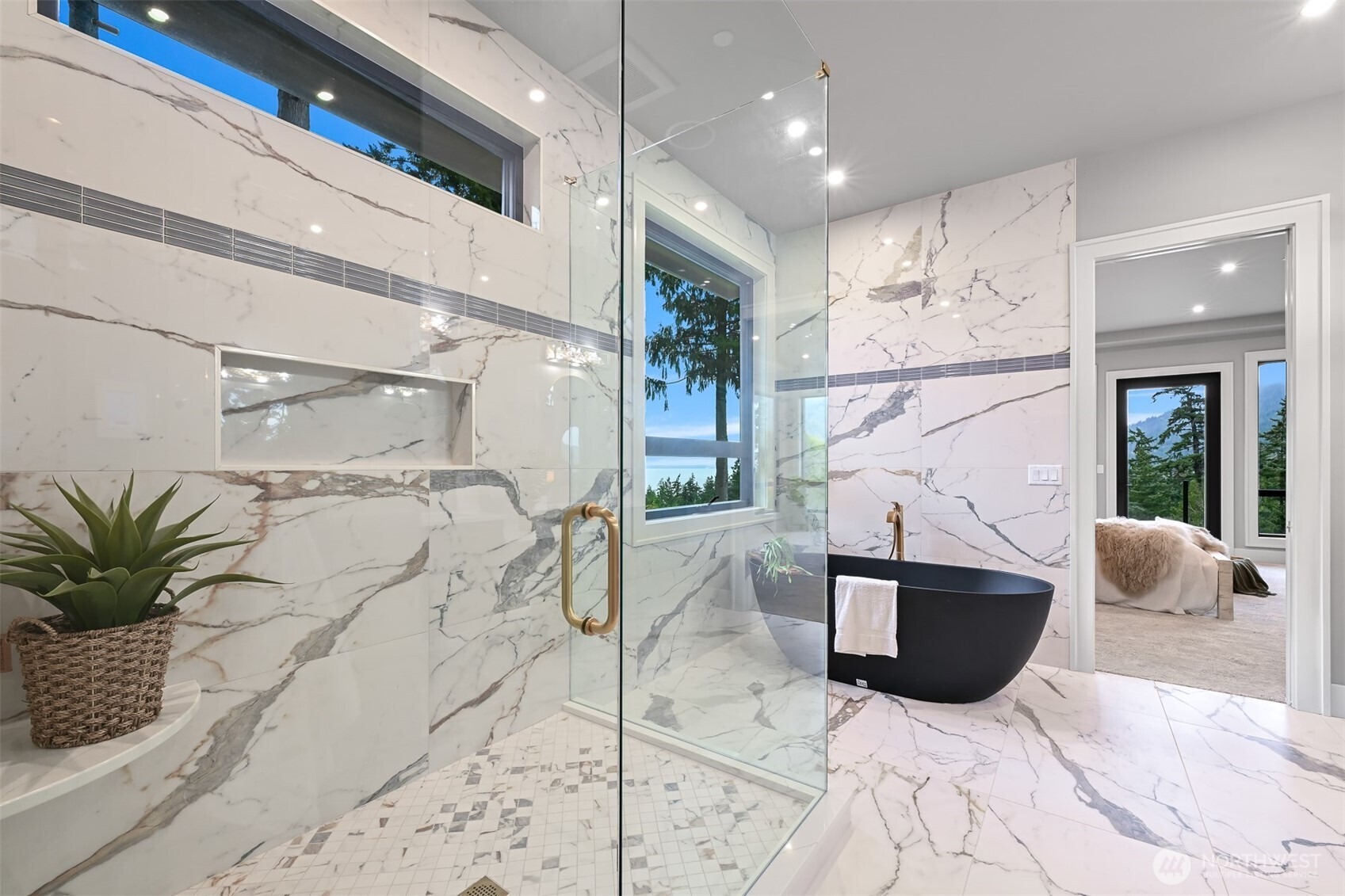 Nestled along iconic Chuckanut Drive, this stunning new home blends contemporary luxury with the Pacific Northwest’s breathtaking beauty. Designed for all seasons, it’s perfect for intimate winter evenings by the fire or sunny summer days on the deck. Inside, you’ll find three beautifully appointed bedrooms, flexible office/dens, and six spa-inspired bathrooms, all crafted for relaxation and privacy. The heart of the home is a designer kitchen with premium finishes and a culinary-inspired layout, opening to a spacious deck with infrared heaters and sweeping views of Chuckanut Bay. The great room dazzles with soaring ceilings, a sleek linear fireplace, and stacking sliding doors that blend indoor and outdoor living. The main-floor primary suite offers a tranquil retreat with refined finishes. Upstairs, a generous family room and a second primary suite with a spa-like bath create a private oasis for guests or multigenerational living. The lower level is an entertainer’s dream, featuring a covered deck, second kitchen, linear fireplace, and prewired spaces for game nights or movie marathons. Step outside, and adventure awaits. With direct access to the Interurban Trail, membership to the Chuckanut Beach Association for private beach access and boat storage, and proximity to Larrabee State Park, outdoor living is effortless. Minutes from Fairhaven’s charming boutiques and restaurants, this home offers modern coastal luxury, natural beauty, and ultimate tranquility.