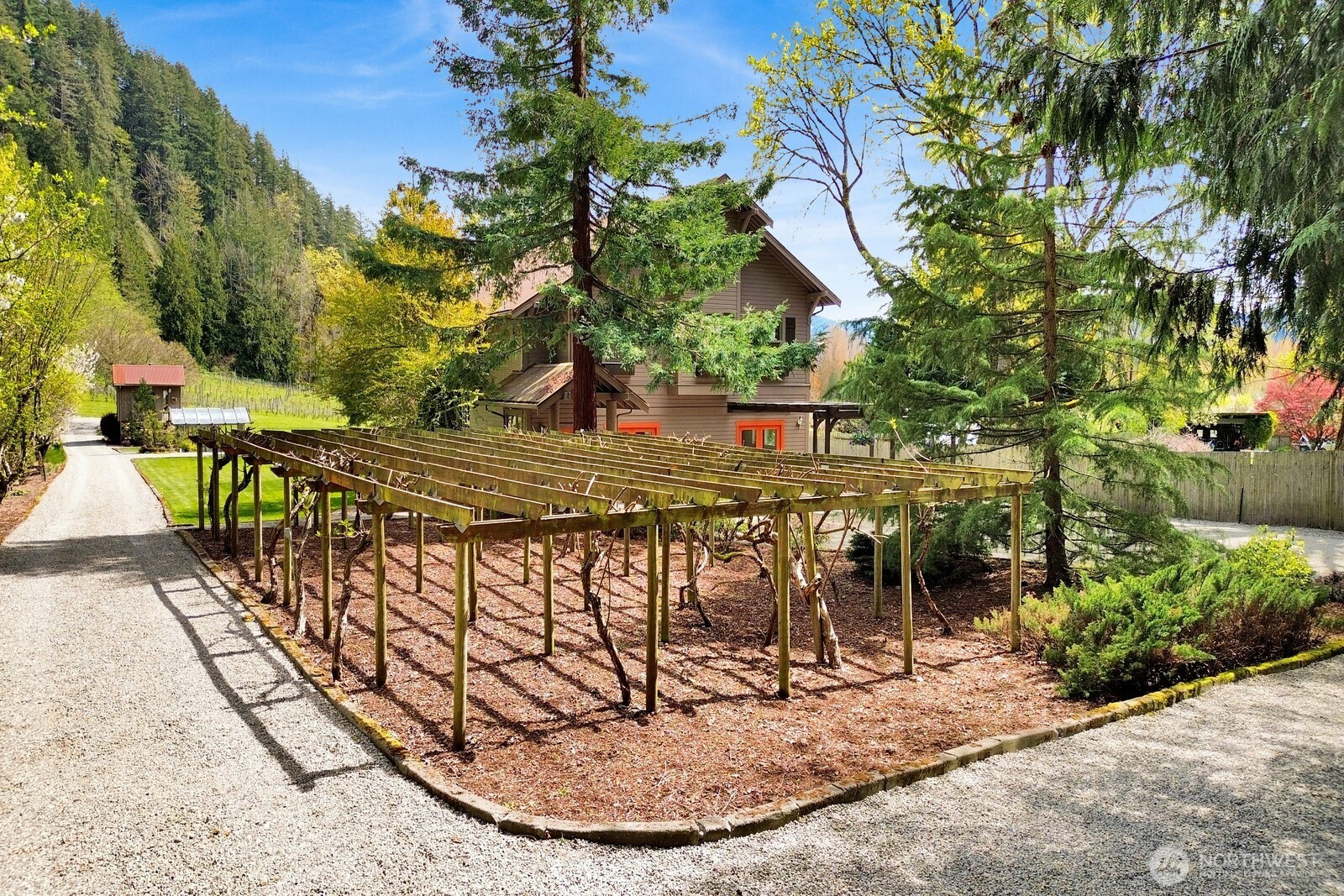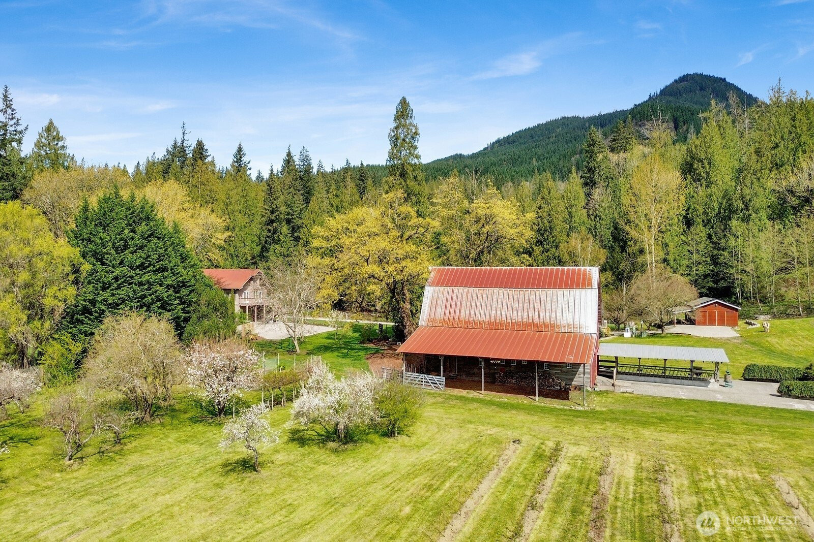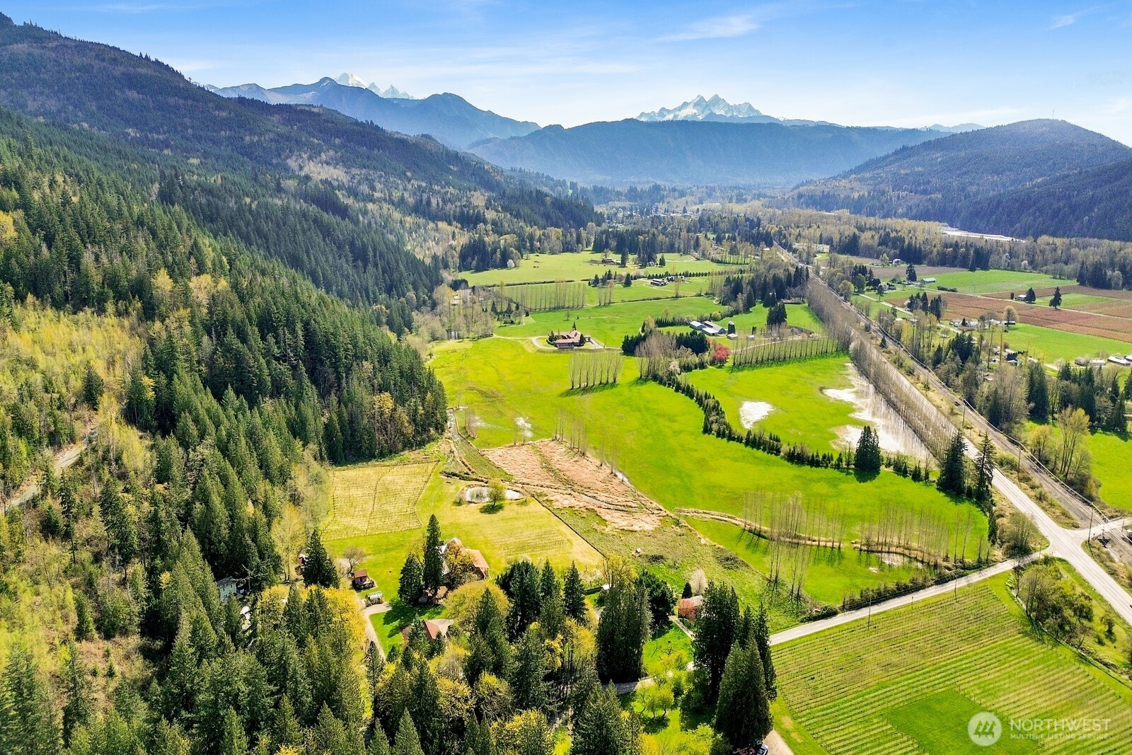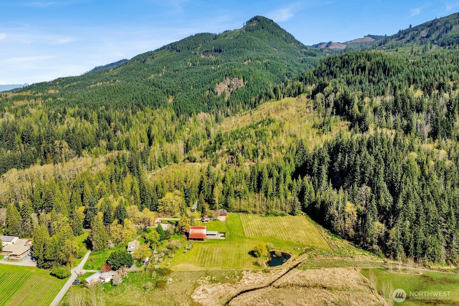 Fifteen self-sustaining acres in the Nooksack Valley, just off Mount Baker Highway and only 12 miles from Bellingham. True energy independence starts with a solar array sized to power the entire estate, backed by a whole-property generator and full irrigation infrastructure. A producing orchard of perennial fruit trees, established gardens, greenhouse, and vineyard — featuring some of the oldest Pinot Noir vines in the Puget Sound AVA — create a foundation for agricultural, lifestyle, or income-producing ventures that is already thriving. The Twin Sisters glacial peaks rise above the valley, visible from nearly every corner of the property. A tranquil pond and hillside forest complete a landscape that feels untouched. A historic barn built in the 1800s adds heritage and authenticity that cannot be replicated. Its covered outdoor space, dressed with chandeliers and framed by the vineyard and valley views, has hosted weddings and candlelit dinners under the stars. The main home features refinished hardwood floors, vaulted ceilings, and exposed beams. A separate cabin offers flexible space — guest quarters, private office, or creative studio. A commercially permitted 1,100 sq ft shop with bathroom adds serious functionality for business or hobbies. Whether you envision a boutique winery, working farm, or private legacy estate — the life you’ve been imagining is already here. It’s just waiting for you.