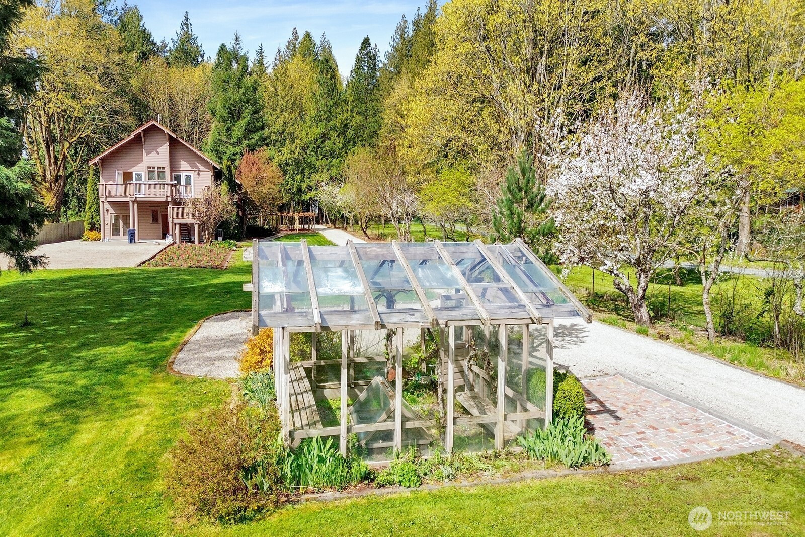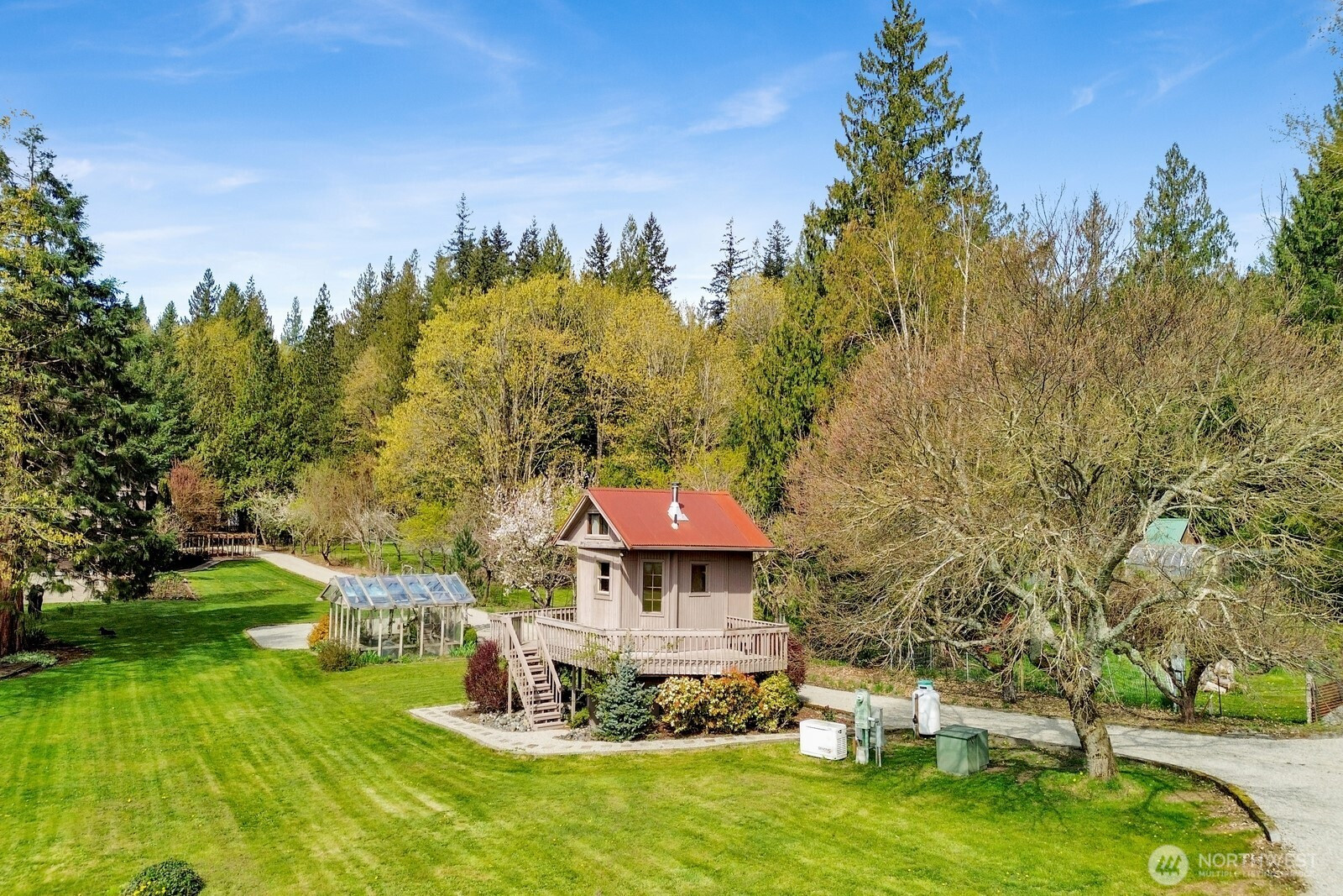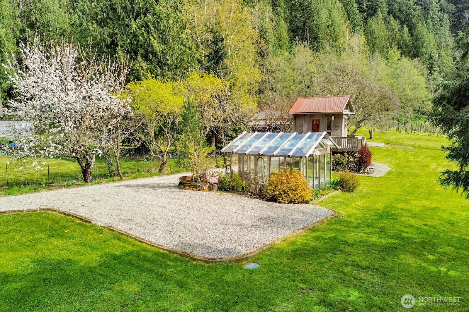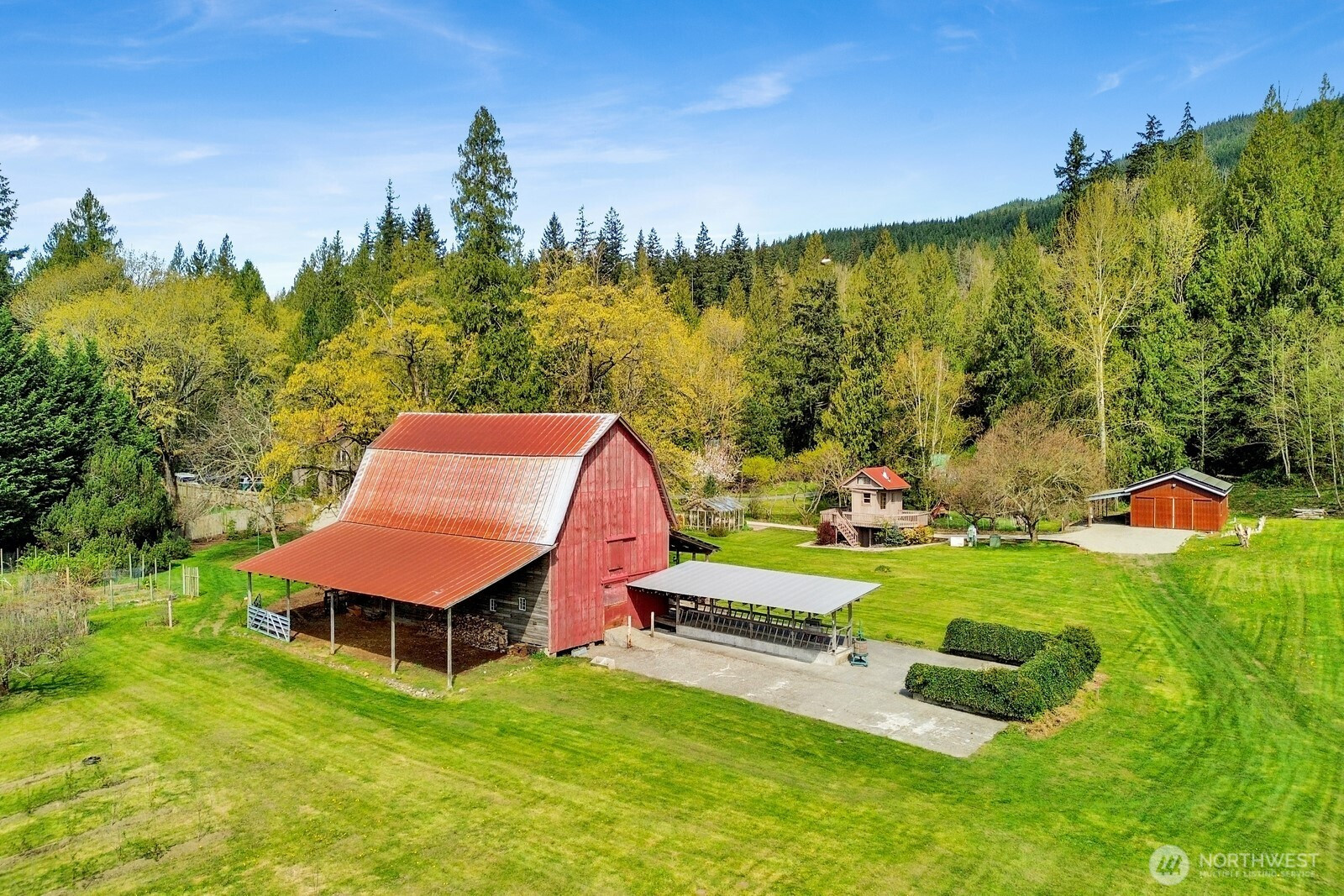 Fifteen self-sustaining acres in the Nooksack Valley, just off Mount Baker Highway and only 12 miles from Bellingham. True energy independence starts with a solar array sized to power the entire estate, backed by a whole-property generator and full irrigation infrastructure. A producing orchard of perennial fruit trees, established gardens, greenhouse, and vineyard — featuring some of the oldest Pinot Noir vines in the Puget Sound AVA — create a foundation for agricultural, lifestyle, or income-producing ventures that is already thriving. The Twin Sisters glacial peaks rise above the valley, visible from nearly every corner of the property. A tranquil pond and hillside forest complete a landscape that feels untouched. A historic barn built in the 1800s adds heritage and authenticity that cannot be replicated. Its covered outdoor space, dressed with chandeliers and framed by the vineyard and valley views, has hosted weddings and candlelit dinners under the stars. The main home features refinished hardwood floors, vaulted ceilings, and exposed beams. A separate cabin offers flexible space — guest quarters, private office, or creative studio. A commercially permitted 1,100 sq ft shop with bathroom adds serious functionality for business or hobbies. Whether you envision a boutique winery, working farm, or private legacy estate — the life you’ve been imagining is already here. It’s just waiting for you.
