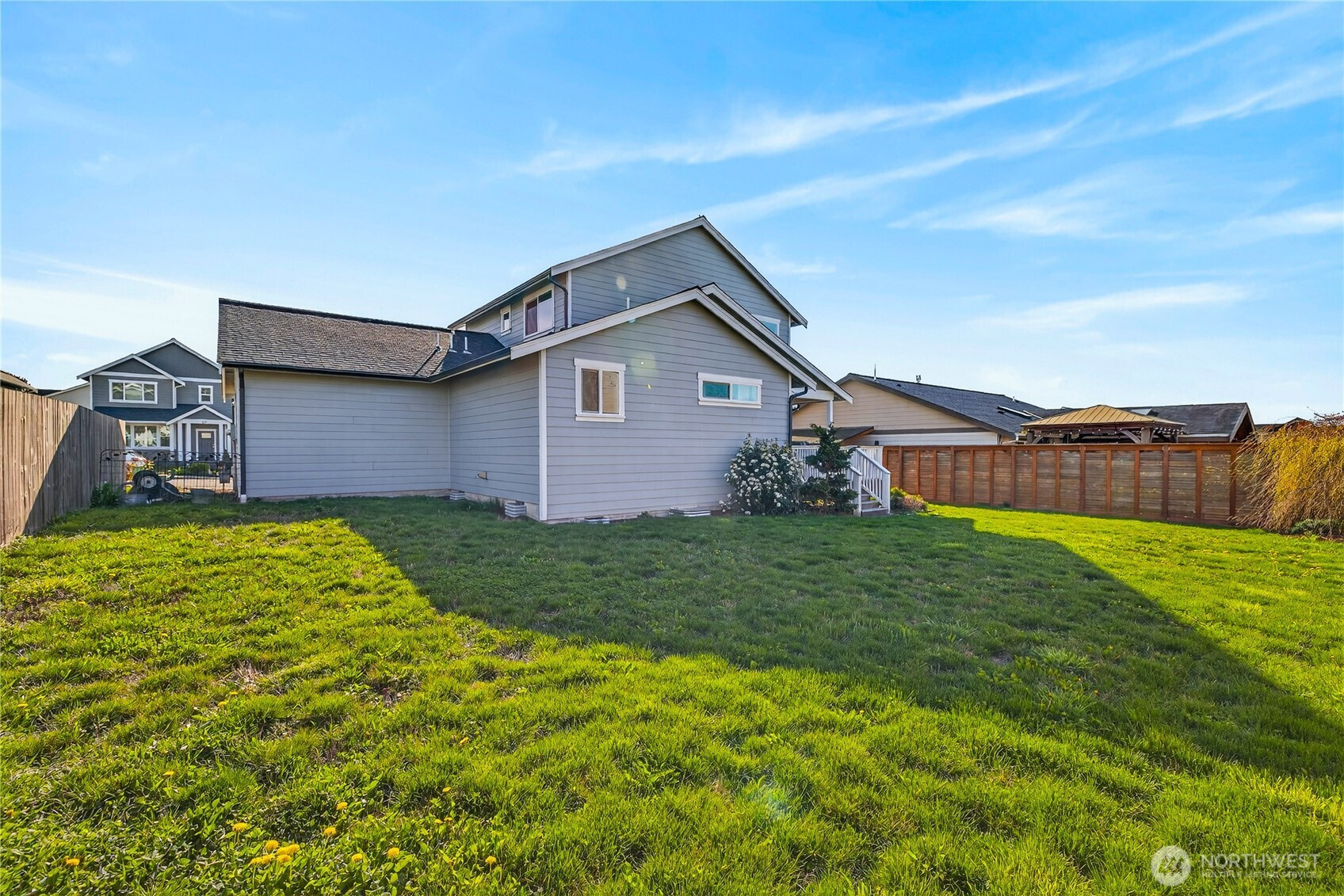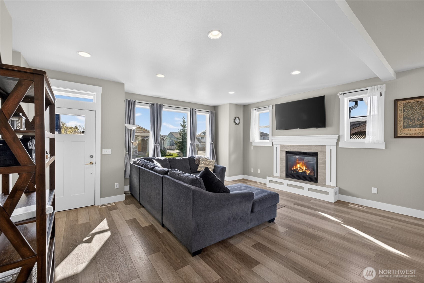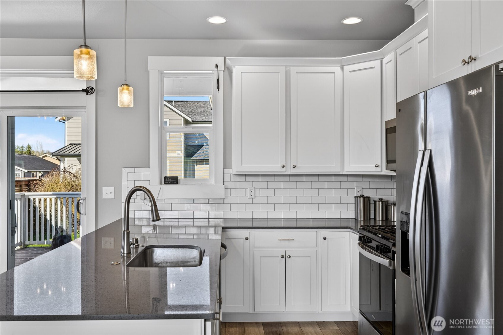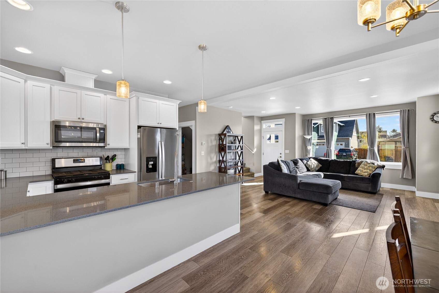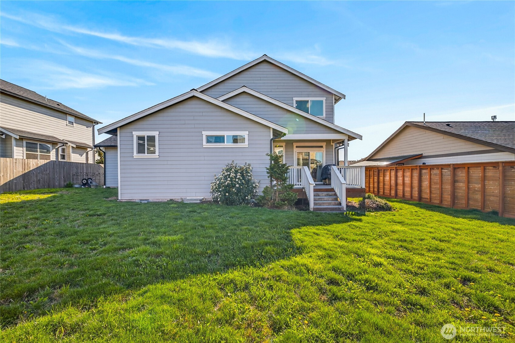 Welcome home to bright, open living filled with natural light and thoughtful design throughout. The main level features a spacious great room with a cozy gas fireplace and seamless flow into the dining area and beautifully appointed kitchen, complete with quartz countertops, stainless steel appliances, ample cabinetry, and a large island perfect for gathering and everyday living. The main floor primary suite offers comfort and privacy with vaulted ceilings, a generous walk-in closet, and a stylish ensuite featuring a custom tile shower and dual vanity. Additional flexible living spaces provide room for guests, work-from-home setups, or hobbies. Upstairs, you’ll find well-sized rooms with great light and versatility to fit your lifestyle. Storage is abundant with multiple closets and a centrally located laundry area for convenience. Step outside to enjoy a fully usable, level backyard with a cedar privacy fence, ideal for entertaining, pets, or relaxing evenings. The covered front porch and back deck extend your living space year-round. An attached two-car garage offers plenty of room for parking and storage. Clean, modern finishes, a functional layout, and easy access to nearby parks, dining, and daily amenities make this home a standout opportunity.
