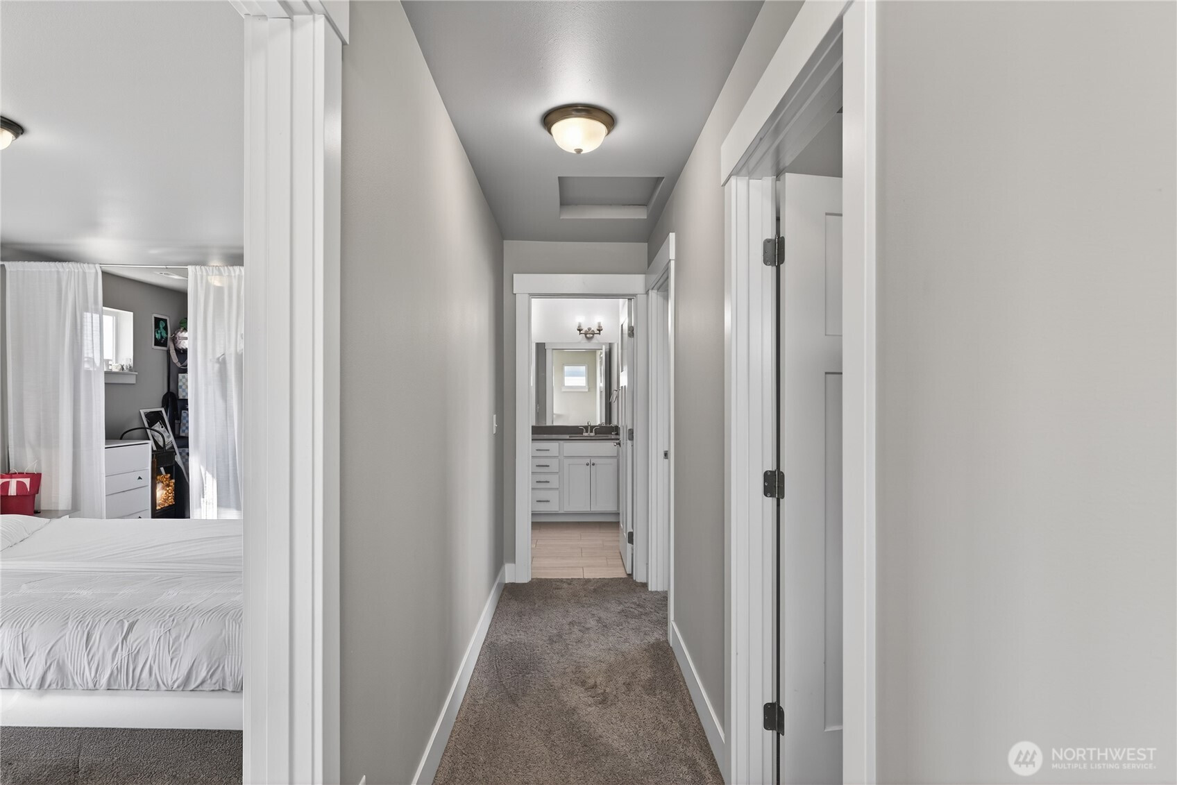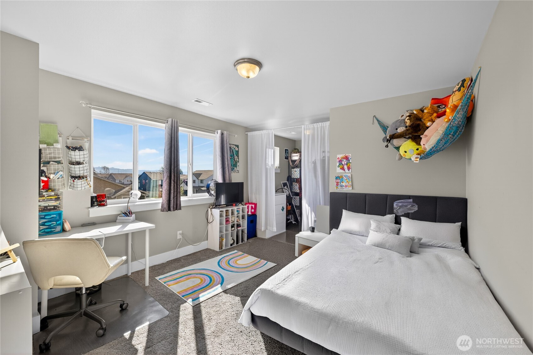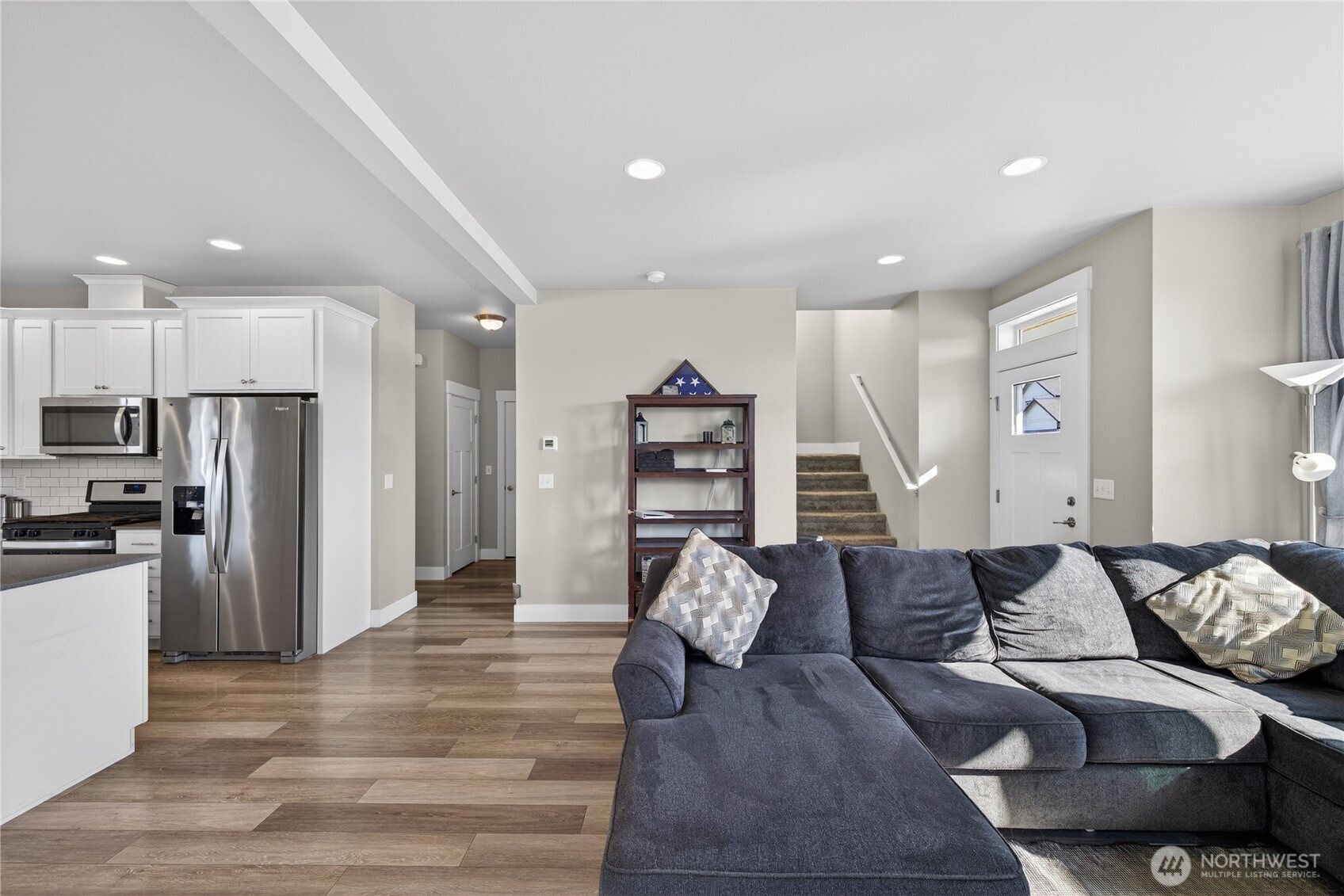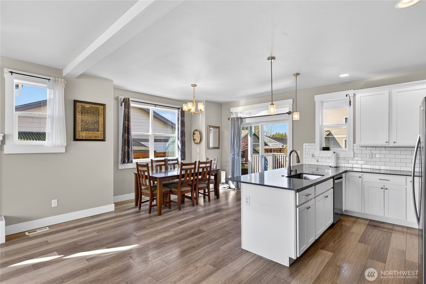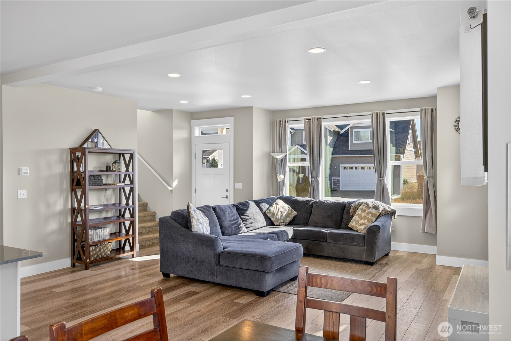 Welcome home to bright, open living filled with natural light and thoughtful design throughout. The main level features a spacious great room with a cozy gas fireplace and seamless flow into the dining area and beautifully appointed kitchen, complete with quartz countertops, stainless steel appliances, ample cabinetry, and a large island perfect for gathering and everyday living. The main floor primary suite offers comfort and privacy with vaulted ceilings, a generous walk-in closet, and a stylish ensuite featuring a custom tile shower and dual vanity. Additional flexible living spaces provide room for guests, work-from-home setups, or hobbies. Upstairs, you’ll find well-sized rooms with great light and versatility to fit your lifestyle. Storage is abundant with multiple closets and a centrally located laundry area for convenience. Step outside to enjoy a fully usable, level backyard with a cedar privacy fence, ideal for entertaining, pets, or relaxing evenings. The covered front porch and back deck extend your living space year-round. An attached two-car garage offers plenty of room for parking and storage. Clean, modern finishes, a functional layout, and easy access to nearby parks, dining, and daily amenities make this home a standout opportunity.