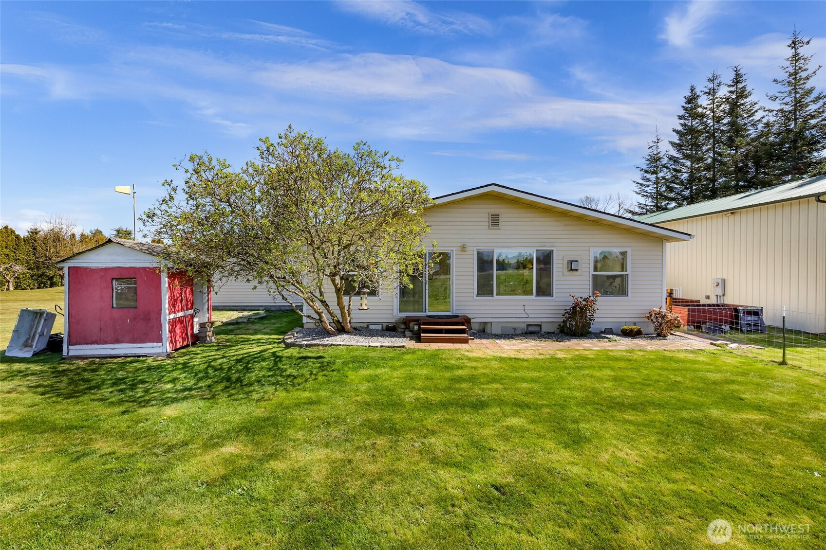 Situated on a serene, flat one-acre parcel in Whatcom County, this well-appointed 3 bedroom, 1.75 bath home offers comfortable country living with room to spread out. Inside, a den and generously sized bonus living area with propane stove provide flexible space for work or play. The grounds shine with fruit trees, a fenced yard, and extensive garden space ready for your vision. The standout feature is the impressive 30x40 shop complete with an oversized door, wood stove, loft, and its own lean-to storage addition alongside a separate RV shelter. Whether you're a hobbyist, small business owner, or simply in need of serious storage, this property delivers. A rare find in today's market.