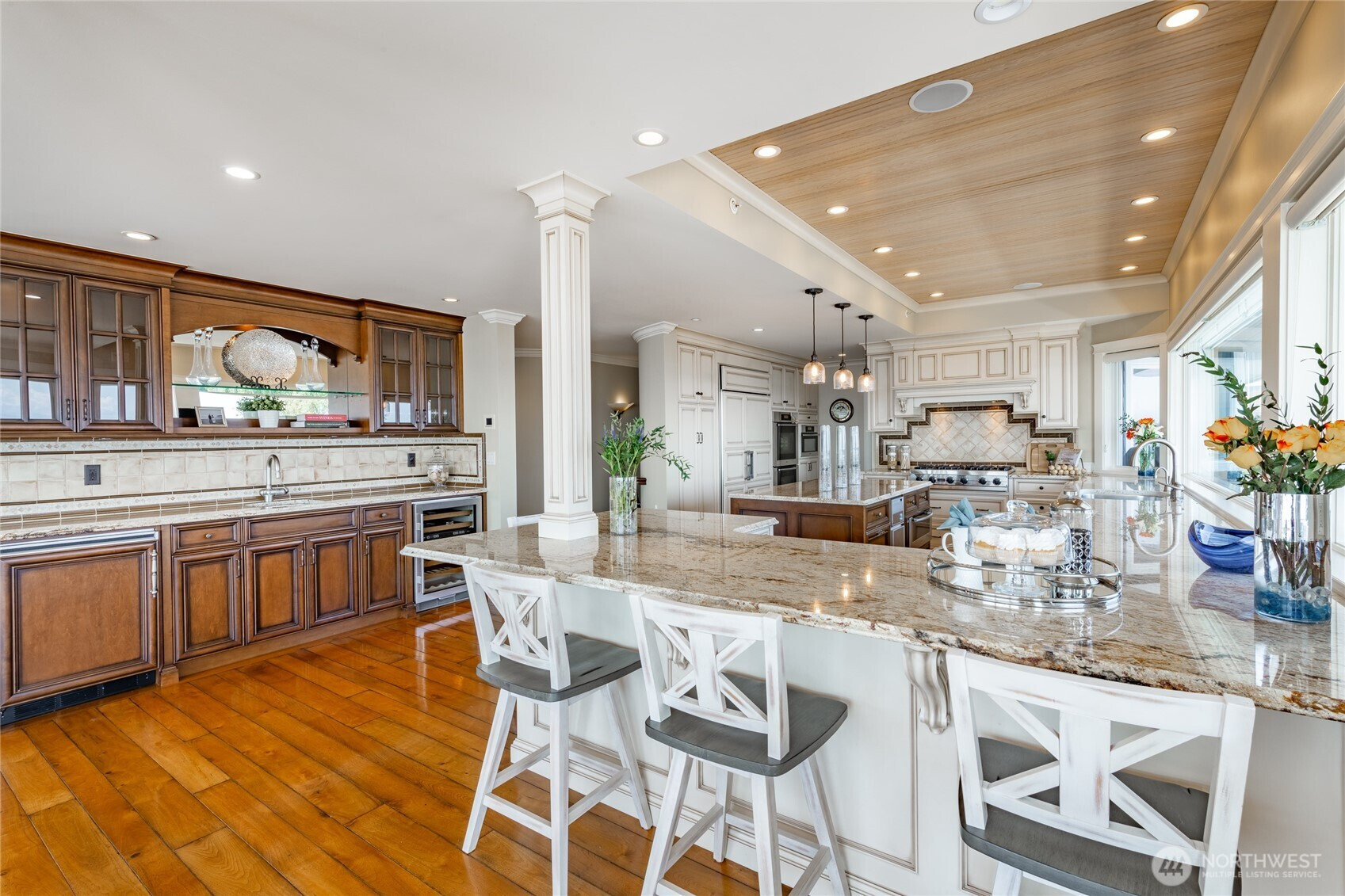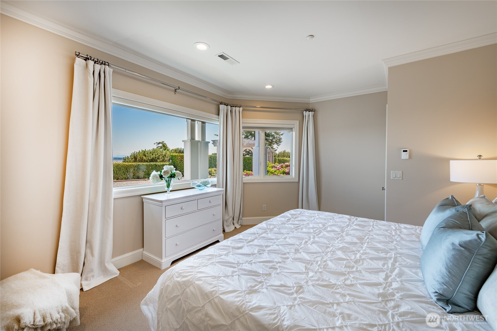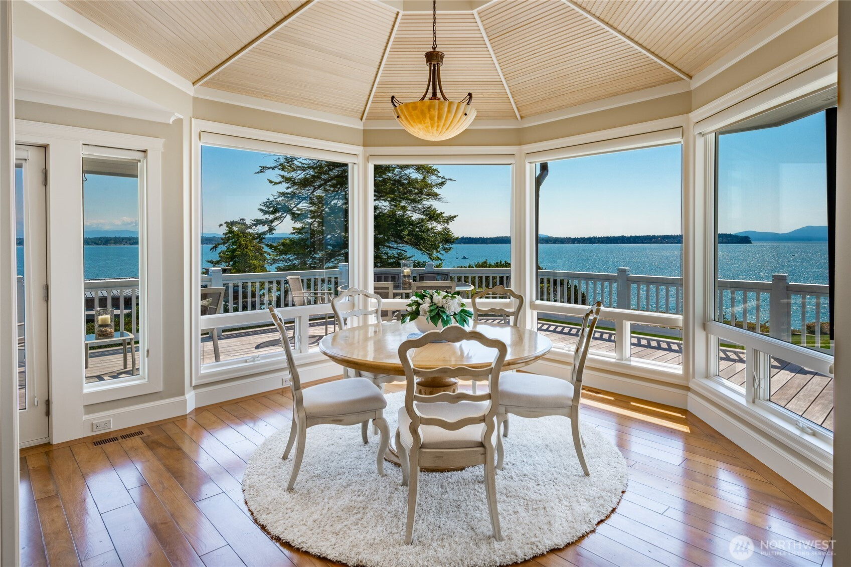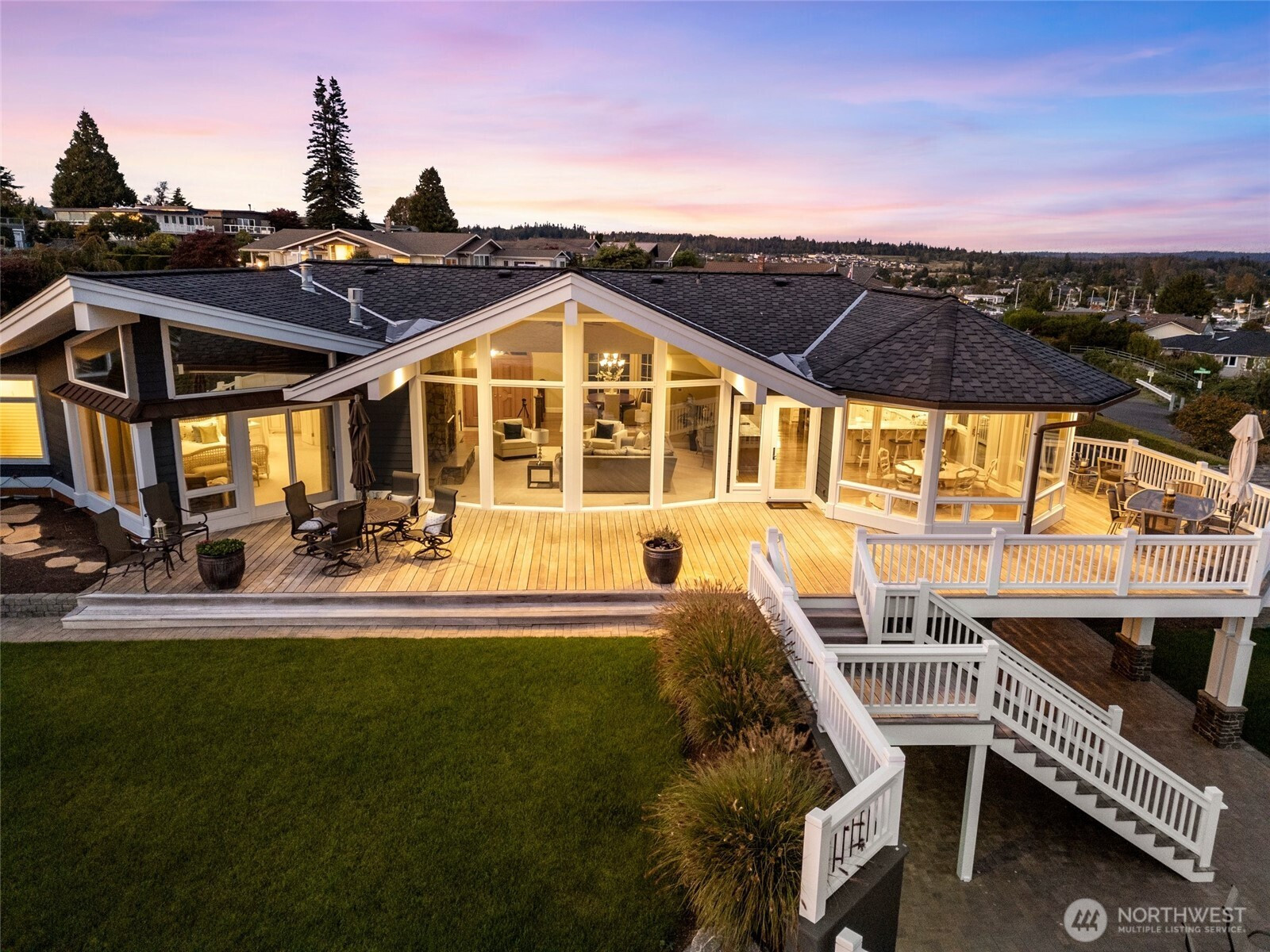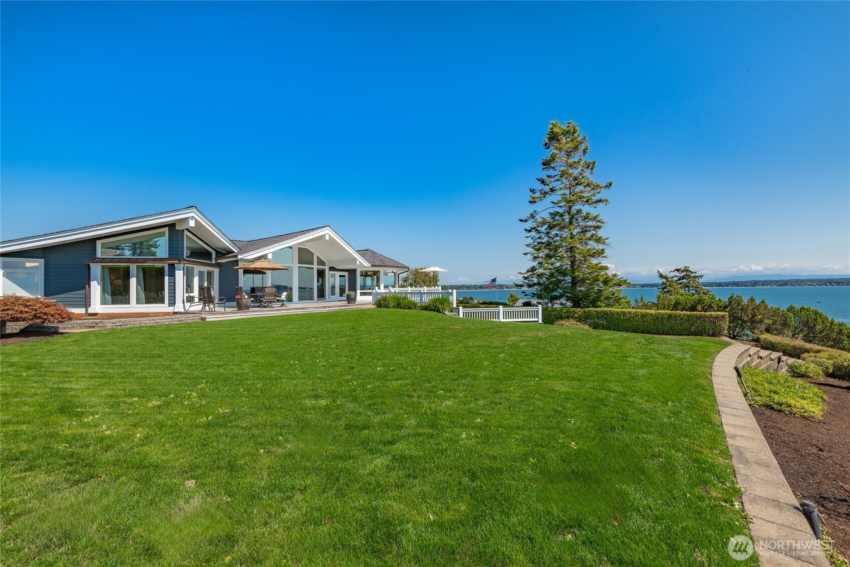 Over 270 degree stunning views of Mt. Baker, Birch Bay, San Juan & Gulf Islands. Elegant retreat offers rare opportunity on .55 acre lot w/123' of waterfront. Exquisite blend of sophistication & tranquility. Designed to perfection, featuring seamless flow for ambiance of refined living. Gourmet kitchen is a culinary delight, Miele/Sub-zero & custom cabinetry. Primary bed w/luxurious retreat, walk-in closet w/private laundry. Main floor guest En-suite/office. Lower level boasts impressive media room/cherrywood bar/2 guest rooms & full bath/utility. Expansive deck for endless entertaining. RV parking & steps to the beach! This home is a masterpiece, that equals the epitome of waterfront living. Private marina, golf, beach and security gate.
