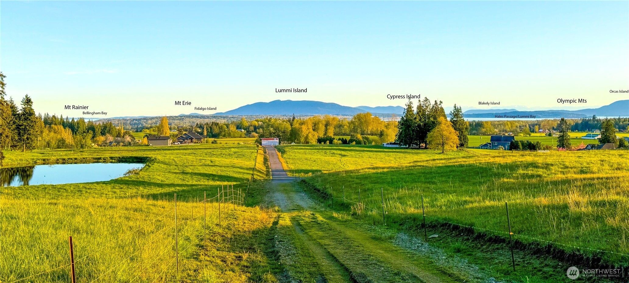 The Crown Jewel of West Ferndale: 5-Acre Luxury Estate Homesite. Elevate your lifestyle in the rolling hills of West Ferndale, where this breathtaking 5-acre parcel stands as one of the most prime residential opportunities in Whatcom County. Nestled within an elite community of the area's finest estate homes, this property isn't just a place to build—it is a destination for your dream. The site offers an unparalleled expanse of the Pacific Northwest. Command all-encompassing views to the south and southwest, stretching across the sparkling waters to Lummi, Cypress, and Blakely Islands. Watch the twinkling lights atop Mt. Constitution on Orcas Island emerge against the horizon. Rarely does a parcel of this magnitude come "build-ready" with such a comprehensive utility suite. This rare gem is fully serviced with natural gas, water, and septic, alongside high-speed Comcast cable—allowing for a modern, connected lifestyle in a tranquil rural setting. Enjoy the serenity of the countryside without sacrificing accessibility. Located just 10 minutes north of the Bellingham International Airport and a straight three-mile drive to I-5, this location provides effortless transit for the frequent traveler or professional. This is a high-caliber investment in a sought-after corridor where land of this quality is seldom available. A full wetland report is available upon request. Bring your architect and your vision to the most prestigious hills in Ferndale.