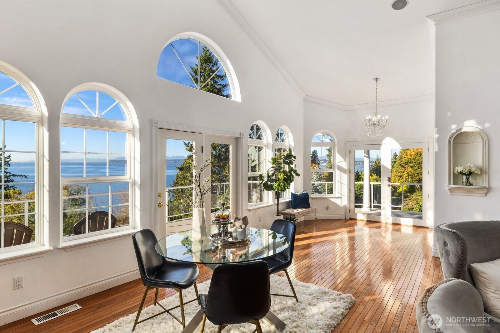 Salt air. Golden light. Your gateway to the Great White North and beyond. This is a lifestyle defined by tides, fairways, and adventure. Set on nearly three-quarters of an acre where the Pacific Northwest meets the open sea, this coastal retreat offers private beach access, vaulted ceilings, and walls of glass that frame the water from nearly every room. Step out onto the expansive 1,700+ sq ft deck and take it all in. The spa-inspired primary suite with gas fireplace is a sanctuary unto itself, while the full lower level lives like a separate residence — second kitchen, private entry, and all — perfect for guests, multi-generational living, or a stylish income suite. Manicured gardens and mature apple trees ground the home in natural beauty. Mornings on the deck, strolls along the shore, bonfires at dusk — and Semiahmoo Resort's golf course, marina, and spa just around the bend.