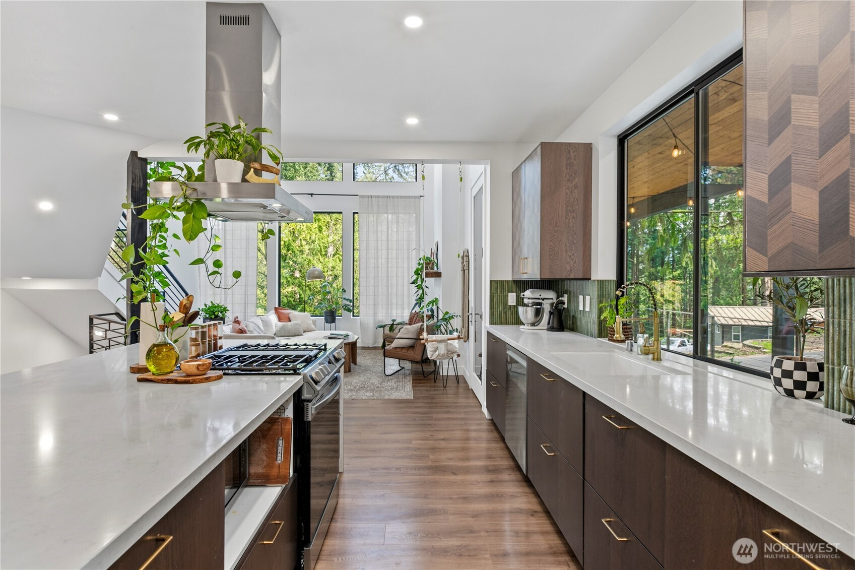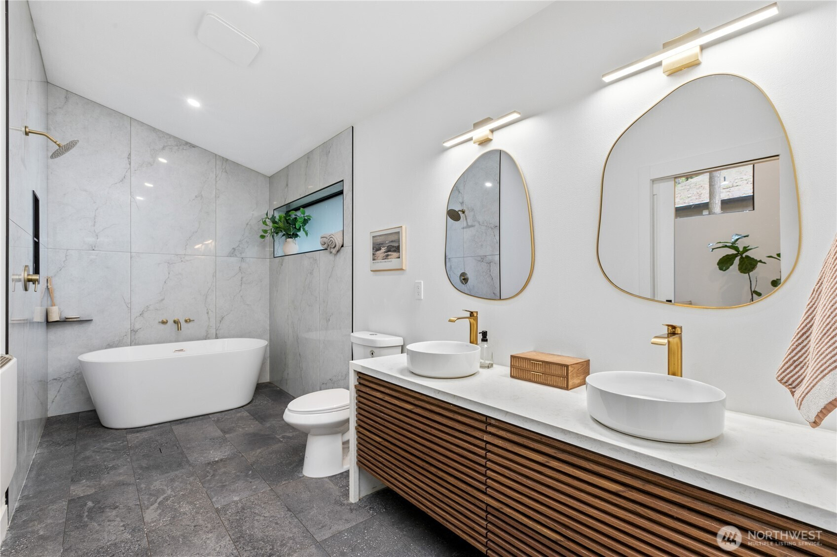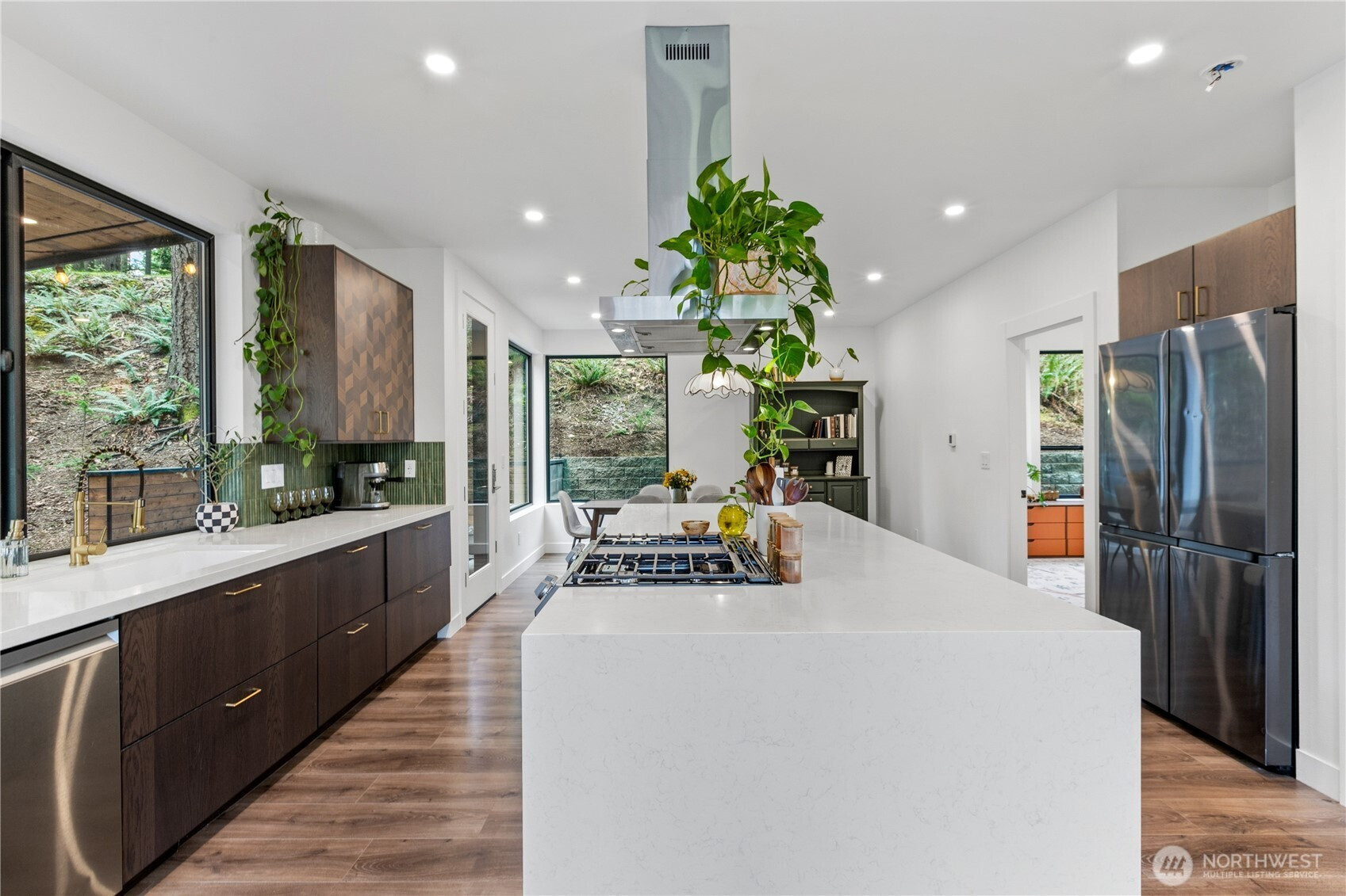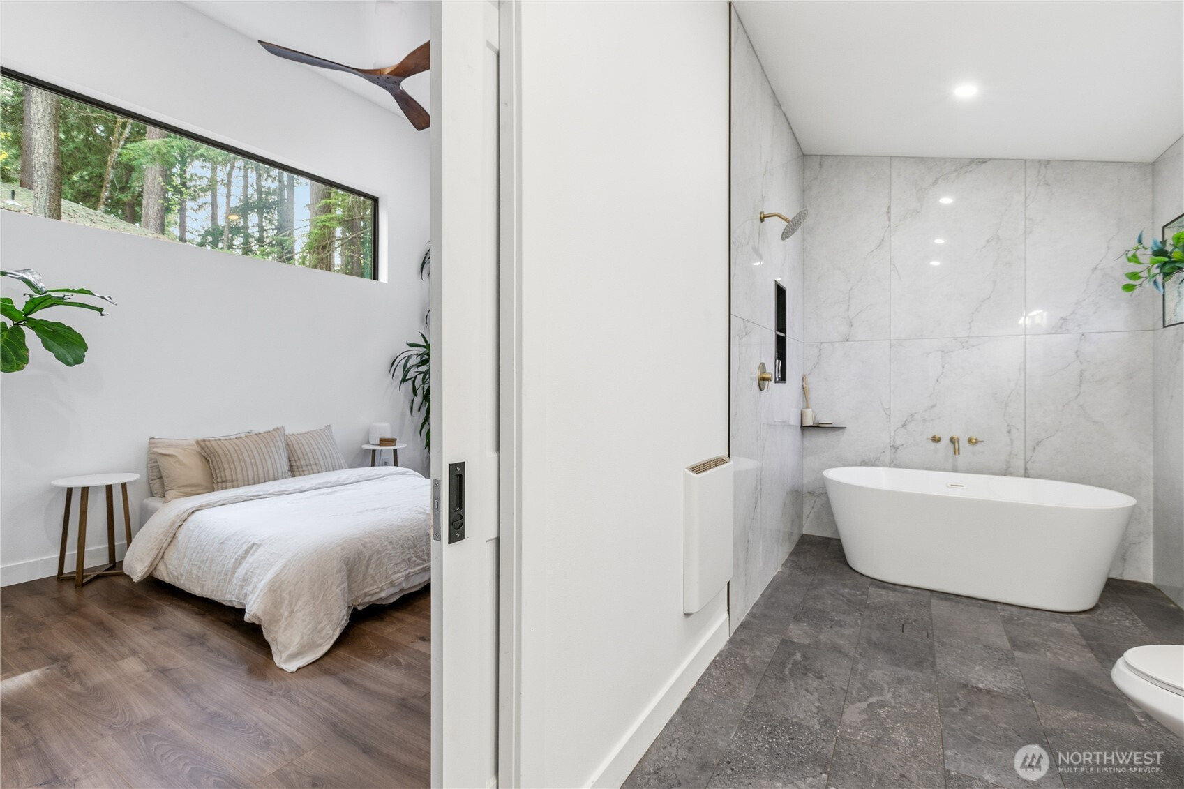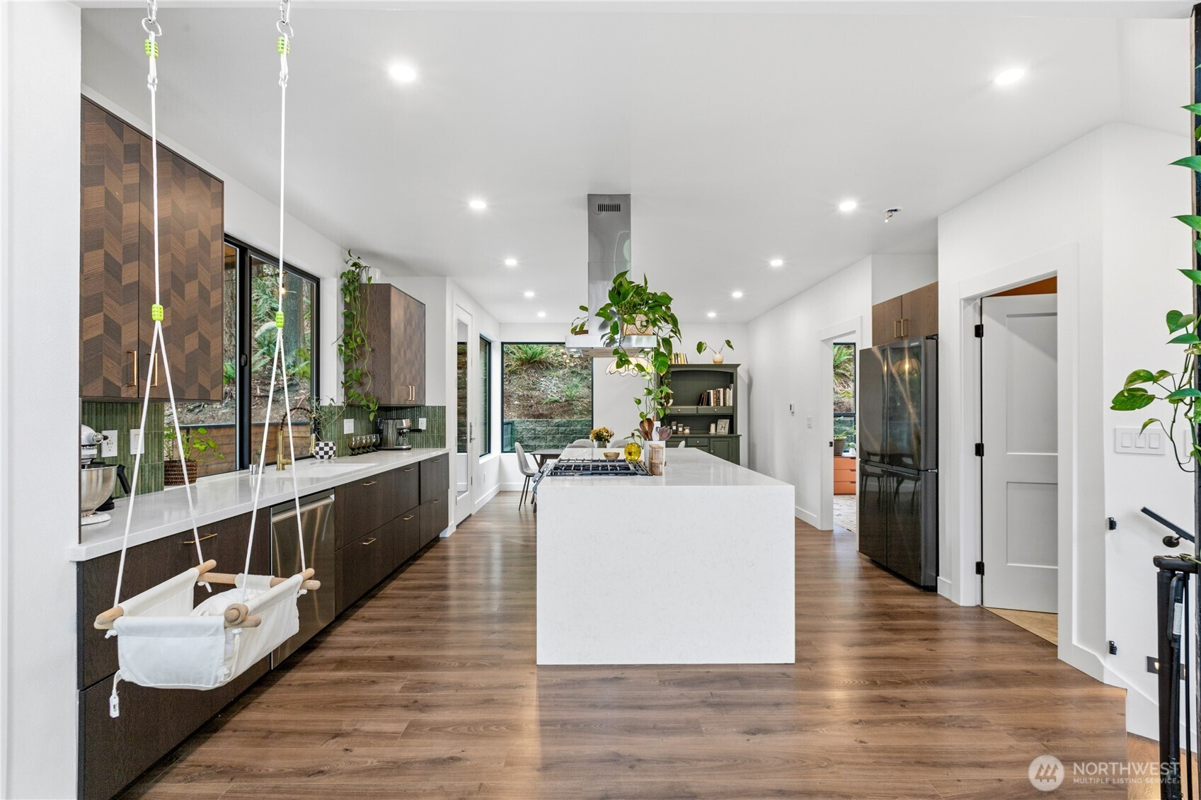 Welcome to your forest retreat in Sudden Valley This stunning 3-bedroom, 4-bathroom home blends style, comfort, and flexibility in one beautiful package. Surrounded by lush forest and filled with natural light from extra large windows, every space feels bright, airy and connected to nature. The heart of the home features a striking see-through fireplace that opens from the living room to the deck, creating a seamless indoor-outdoor living experience perfect for cozy nights or entertaining year-round. A second kitchen offers excellent potential for multi-generational living or partial rental income, while two garages, a loft primary suite, and a second primary bedroom provide space and versatility for every lifestyle. Step outside onto the large deck, where you can relax among the trees and enjoy peaceful mornings and quiet evenings in your private wooded setting. Located just minutes from the lake, trails, beaches, playgrounds, golf, parks, and community pool, this home offers the perfect balance of adventure and tranquility in one of the area’s most desirable neighborhoods. Stylish. Comfortable. Versatile. This is the lifestyle upgrade you’ve been waiting for.