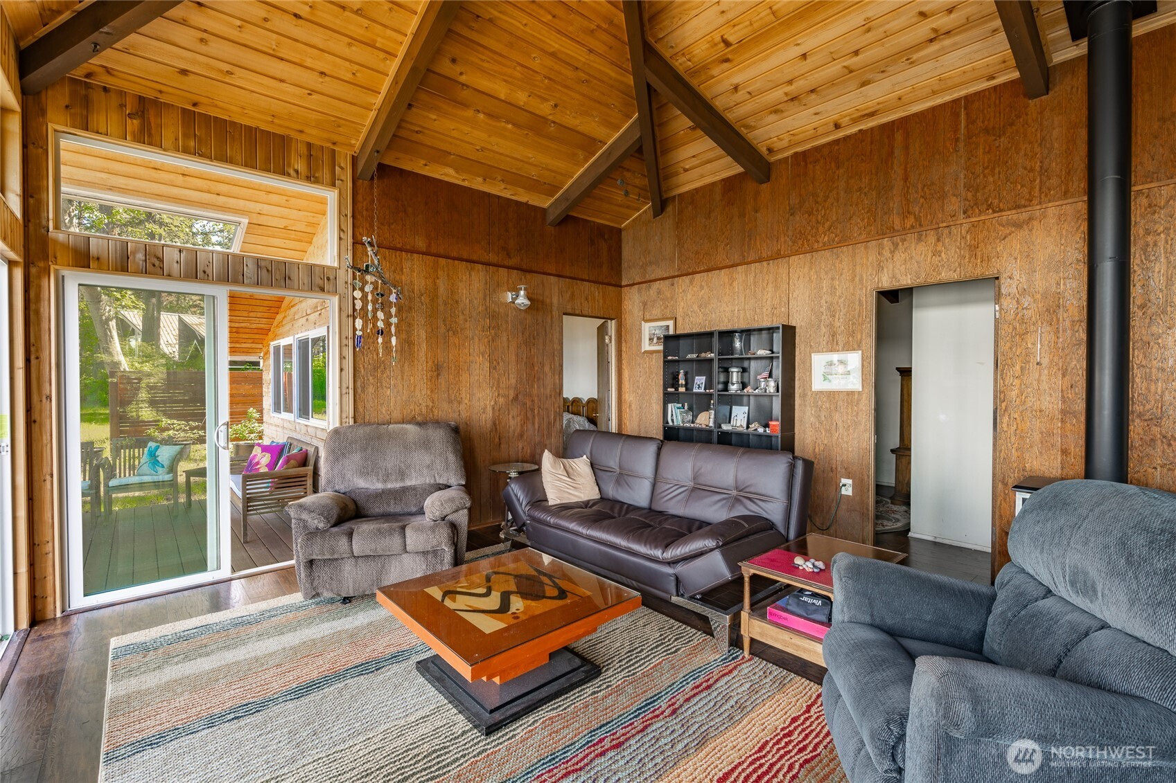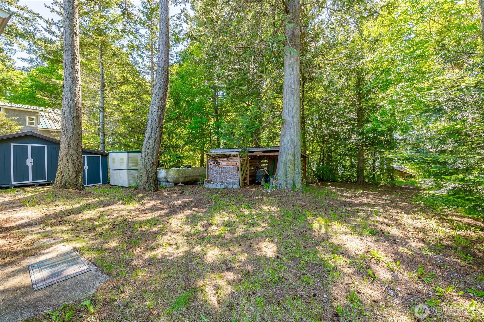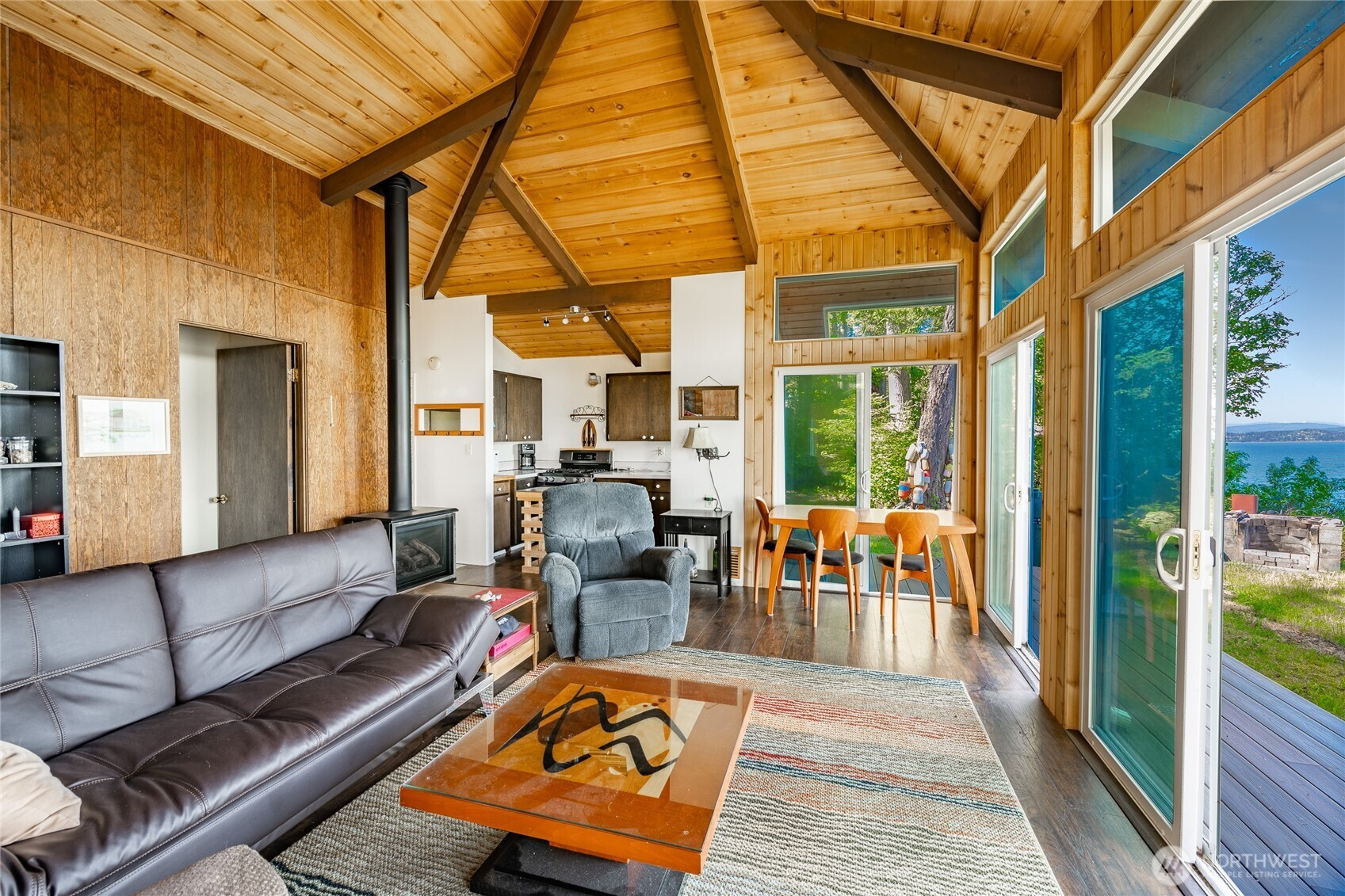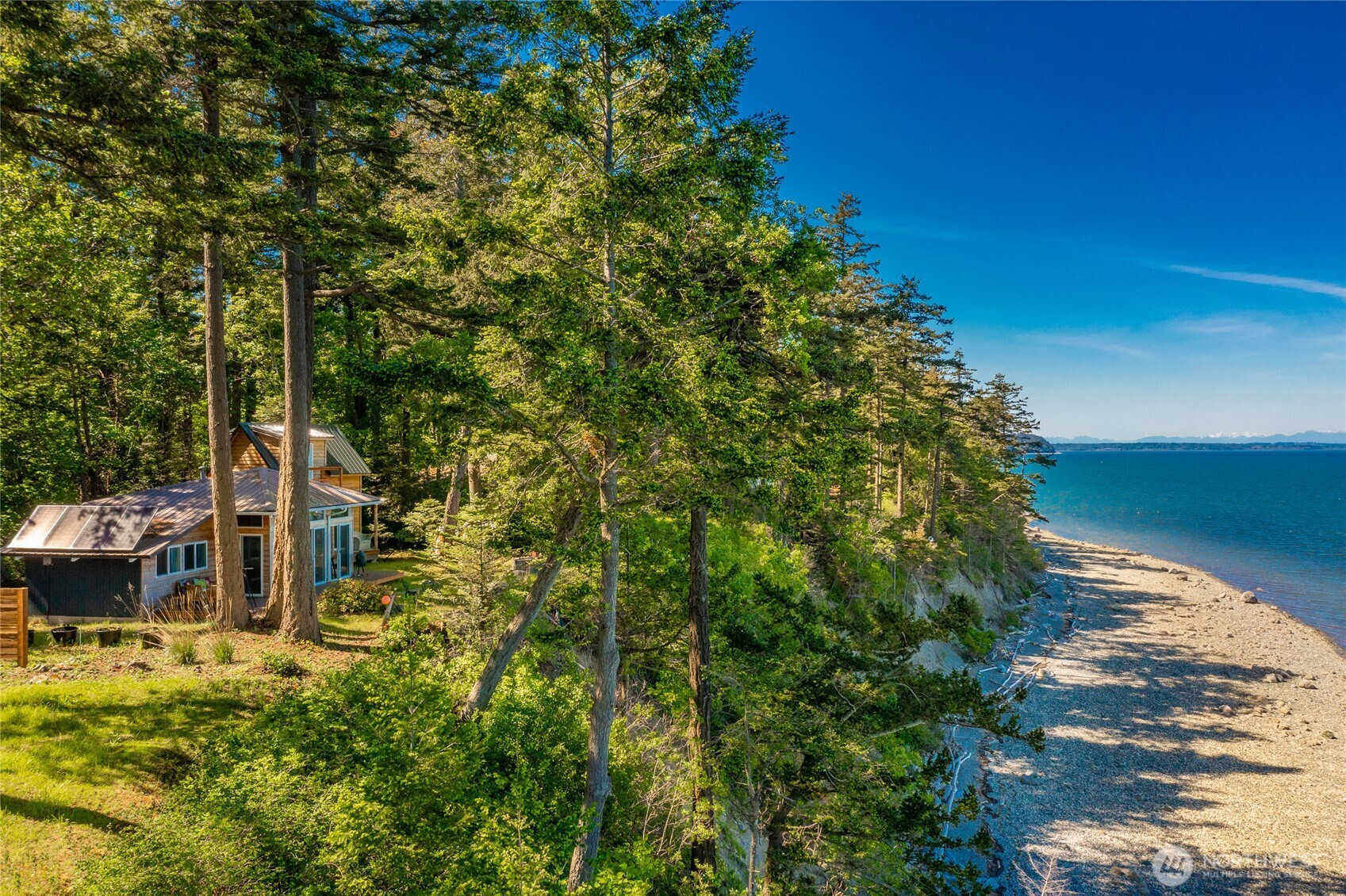 High bank waterfront cabin on private Eliza Island, just off the coast of Bellingham in Whatcom County. This 2-bedroom retreat captures sweeping eastern views of Bellingham Bay, the Canadian mountain range, and Chuckanut, with stunning sunrise exposure that fills the home with natural light. The cabin features natural wood interior paneling and vaulted ceilings that create a warm, open feel. A propane stove adds comfort year-round, while the propane paired with a solar and battery-powered inverter supports easy off-grid living. An additional unfinished outbuilding offers flexibility to make it your own—ideal for a bunkhouse, storage, an office, or a creative space. There is no direct beach access from the lot, but nearby access points are just a short walk or golf cart ride away, making it easy to enjoy. This property is well-suited for shared ownership—consider partnering with friends, or colleagues to create a private island retreat and maximize use throughout the year. While short-term rentals are not allowed on Eliza Island, co-ownership provides a smart and enjoyable way to experience island living. Island amenities include a full-time caretaker, tideland rights, beach access points, park areas, and a private airstrip (WA93), making it a great option for aviation enthusiasts or those seeking a true Pacific Northwest island escape. Located approximately 20 minutes from Bellingham by boat, with walk-on water taxi access available. No rentals allowed.