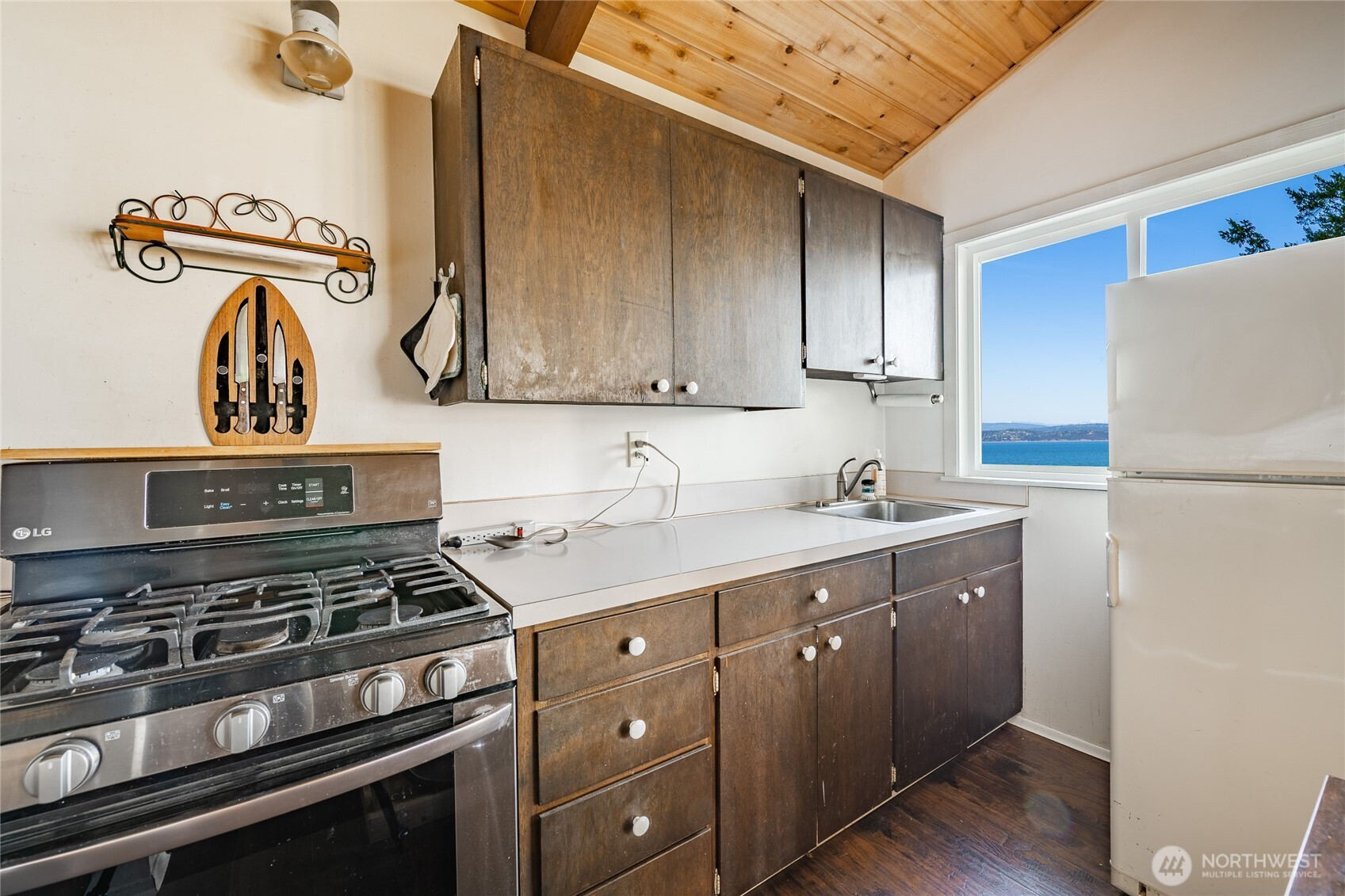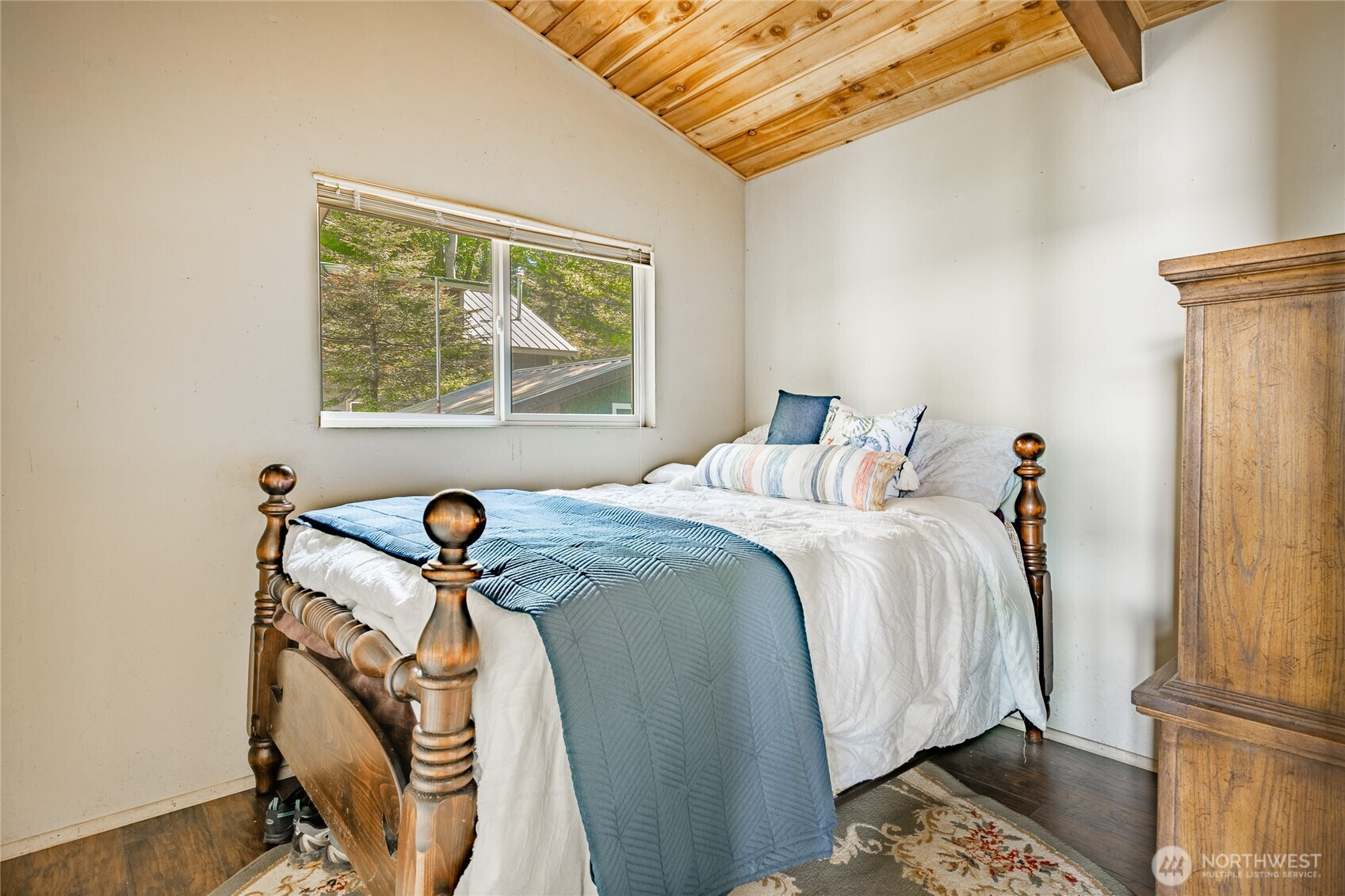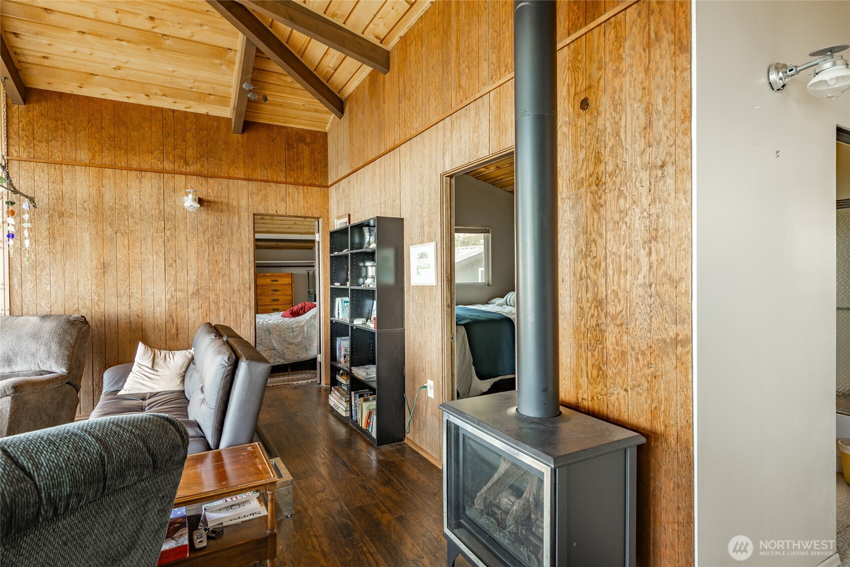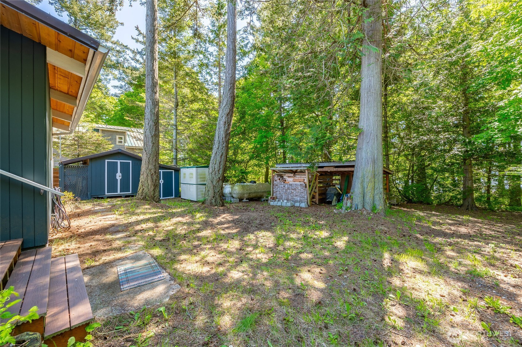 High bank waterfront cabin on private Eliza Island, just off the coast of Bellingham in Whatcom County. This 2-bedroom retreat captures sweeping eastern views of Bellingham Bay, the Canadian mountain range, and Chuckanut, with stunning sunrise exposure that fills the home with natural light. The cabin features natural wood interior paneling and vaulted ceilings that create a warm, open feel. A propane stove adds comfort year-round, while the propane paired with a solar and battery-powered inverter supports easy off-grid living. An additional unfinished outbuilding offers flexibility to make it your own—ideal for a bunkhouse, storage, an office, or a creative space. There is no direct beach access from the lot, but nearby access points are just a short walk or golf cart ride away, making it easy to enjoy. This property is well-suited for shared ownership—consider partnering with friends, or colleagues to create a private island retreat and maximize use throughout the year. While short-term rentals are not allowed on Eliza Island, co-ownership provides a smart and enjoyable way to experience island living. Island amenities include a full-time caretaker, tideland rights, beach access points, park areas, and a private airstrip (WA93), making it a great option for aviation enthusiasts or those seeking a true Pacific Northwest island escape. Located approximately 20 minutes from Bellingham by boat, with walk-on water taxi access available. No rentals allowed.