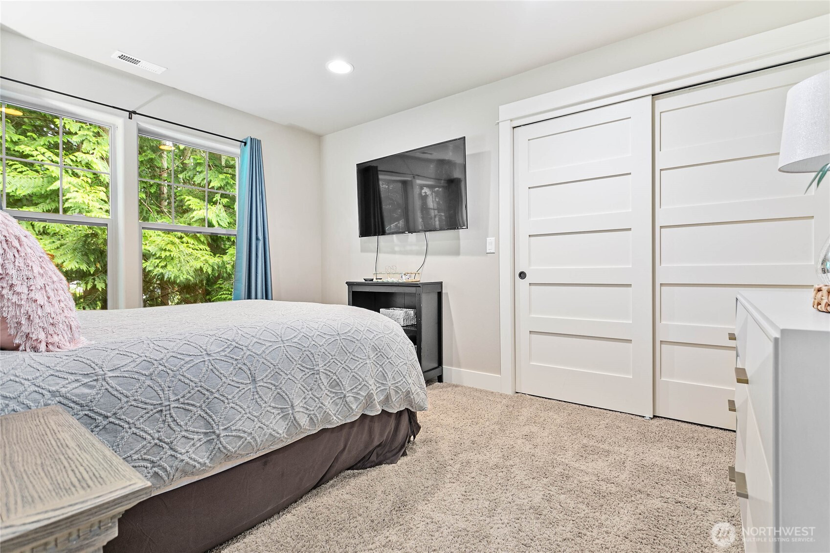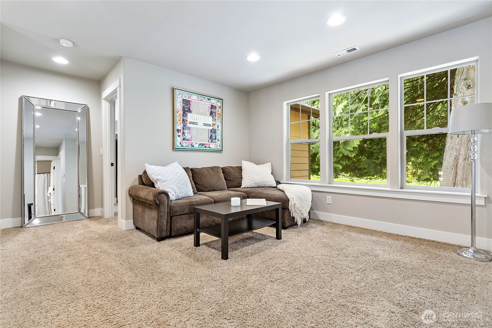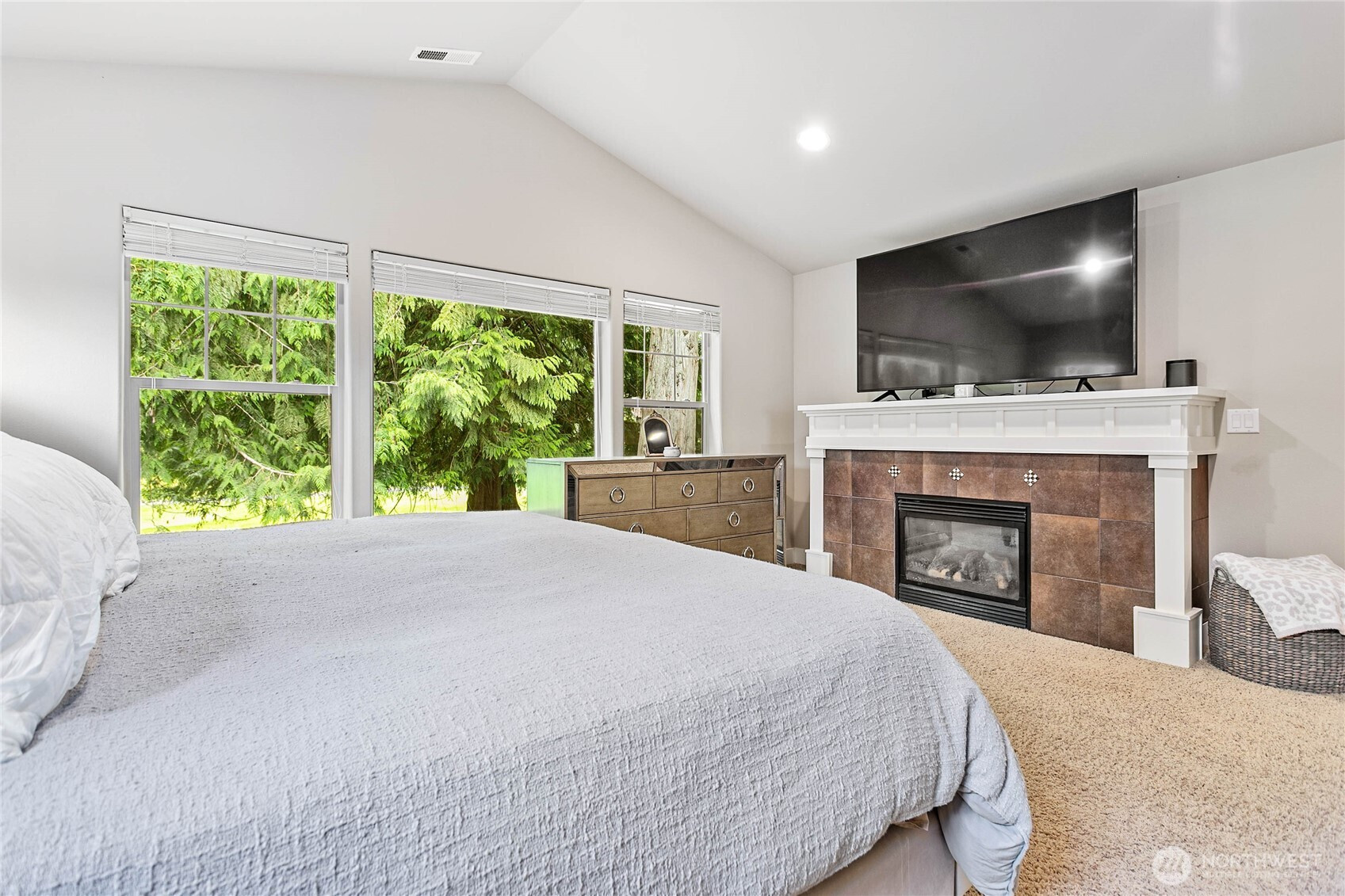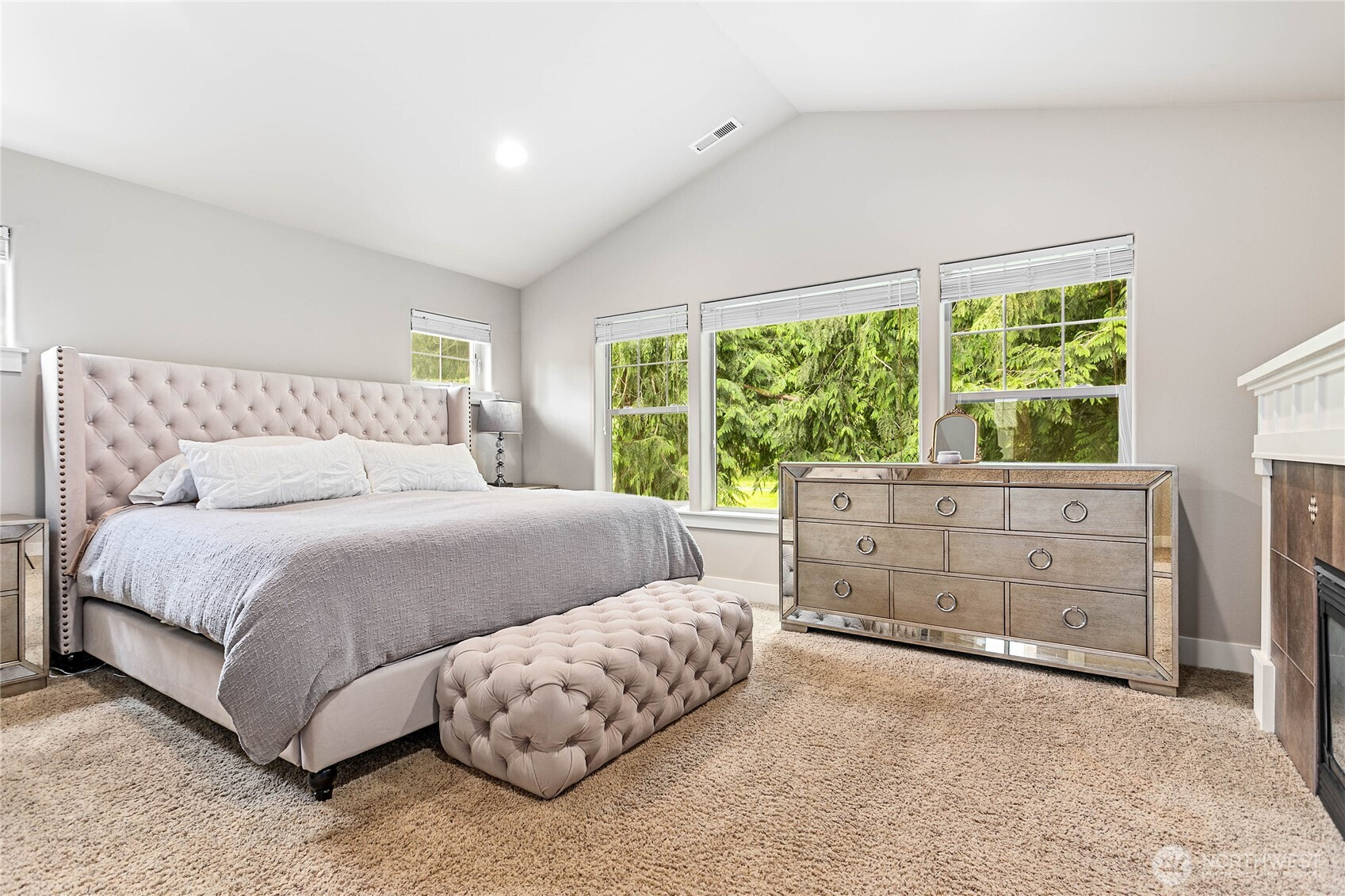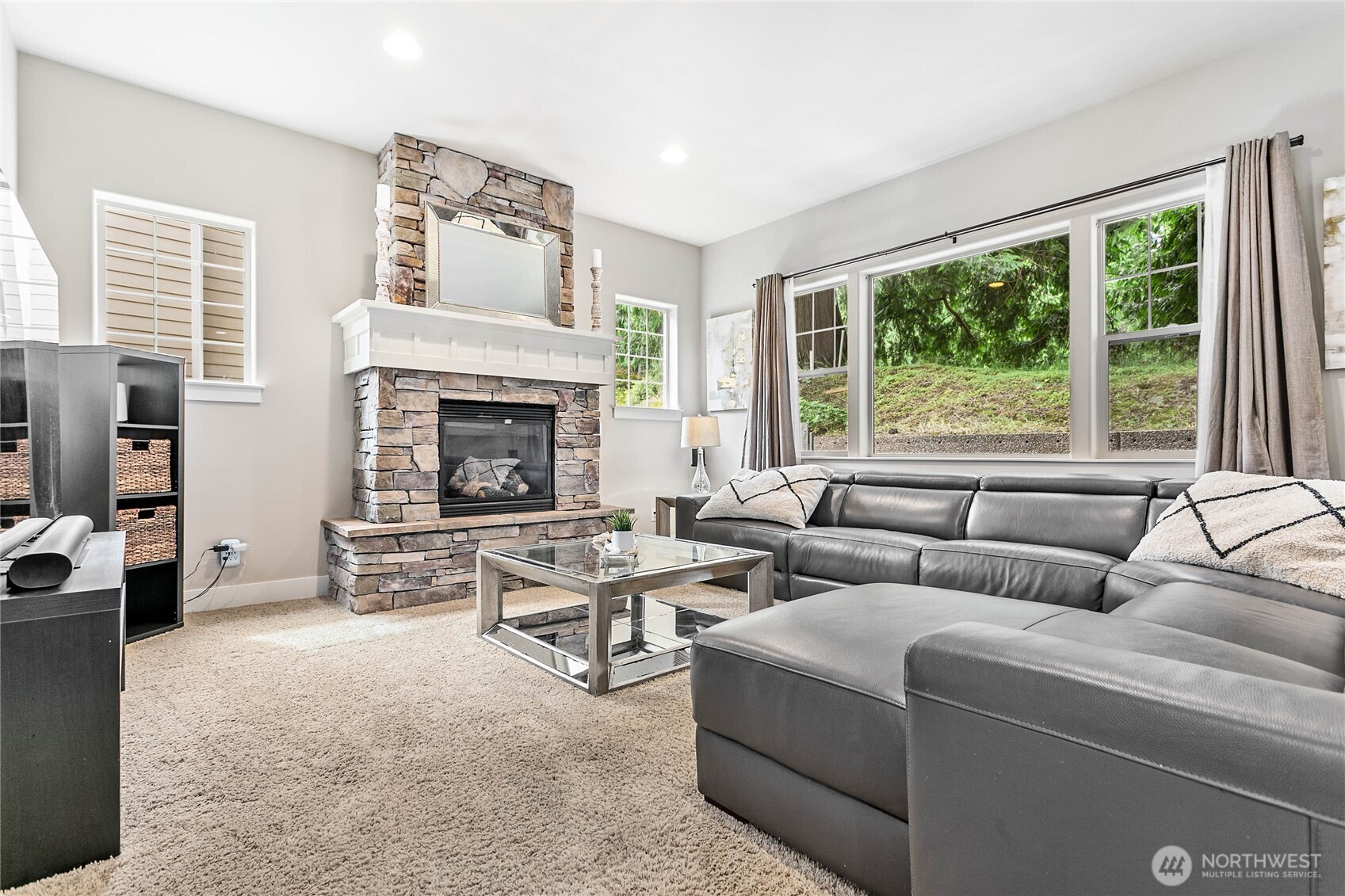 minutes from Bellingham. Built for flexibility, this 4 bedroom whose main living area includes a cozy gas fireplace, large, bright office/nursery, dining area and large, open kitchen. Off the kitchen is an outdoor patio overlooking the 13th green, perfect for gatherings and relaxing. The upstairs main bedroom offers a big bathroom with a large soaking tub, dual vanity, an artfully designed walk-in shower with two faucets and separate water-closet. Two bedrooms and a fourth large bedroom/TV room/bonus room are also on the second floor. Garage with car charger. % Mortgage Rate Buy-Down Option! Bring offers as sellers are willing to negotiate on a great offer!